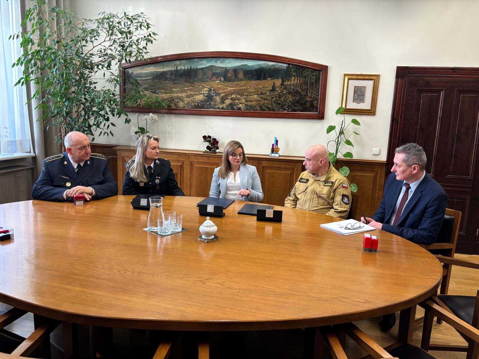 W spotkaniu uczestniczyli: Prezydent Miasta Zabrze Pani Agnieszka Rupniewska, Komendant Miejski Państwowej Straży Pożarnej w Zabrzu st. bryg. Tomasz Bajerczak, Naczelnik Wydziału Zarządzania Kryzysowego i Ochrony Ludności Urzędu Miejskiego w Zabrzu Pan Artur Nowakowski oraz przedstawiciele jednostek OSP z terenu miasta Zabrze.