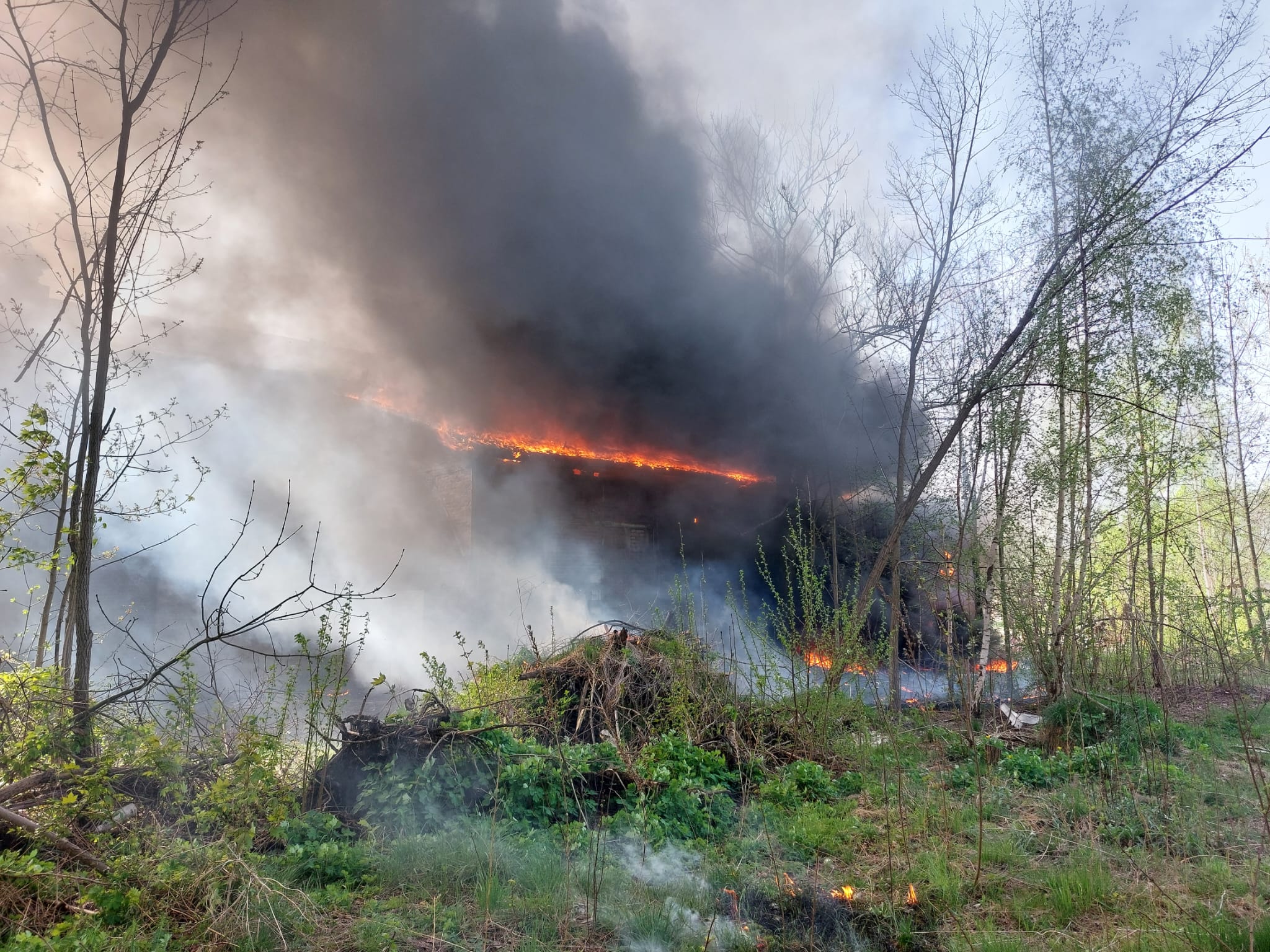 W wyniku zdarzenia spaliło się ok. 120 m2 dachu budynku.