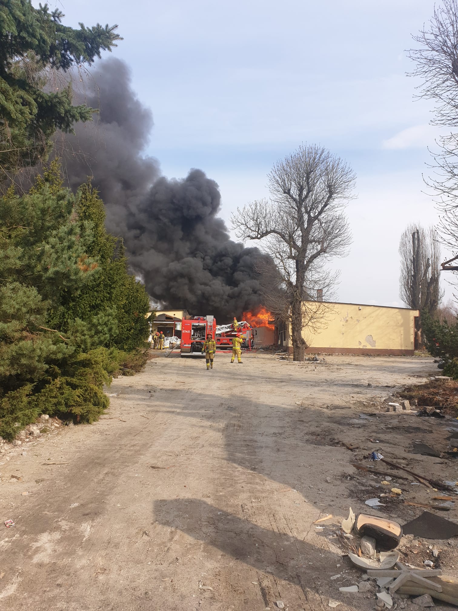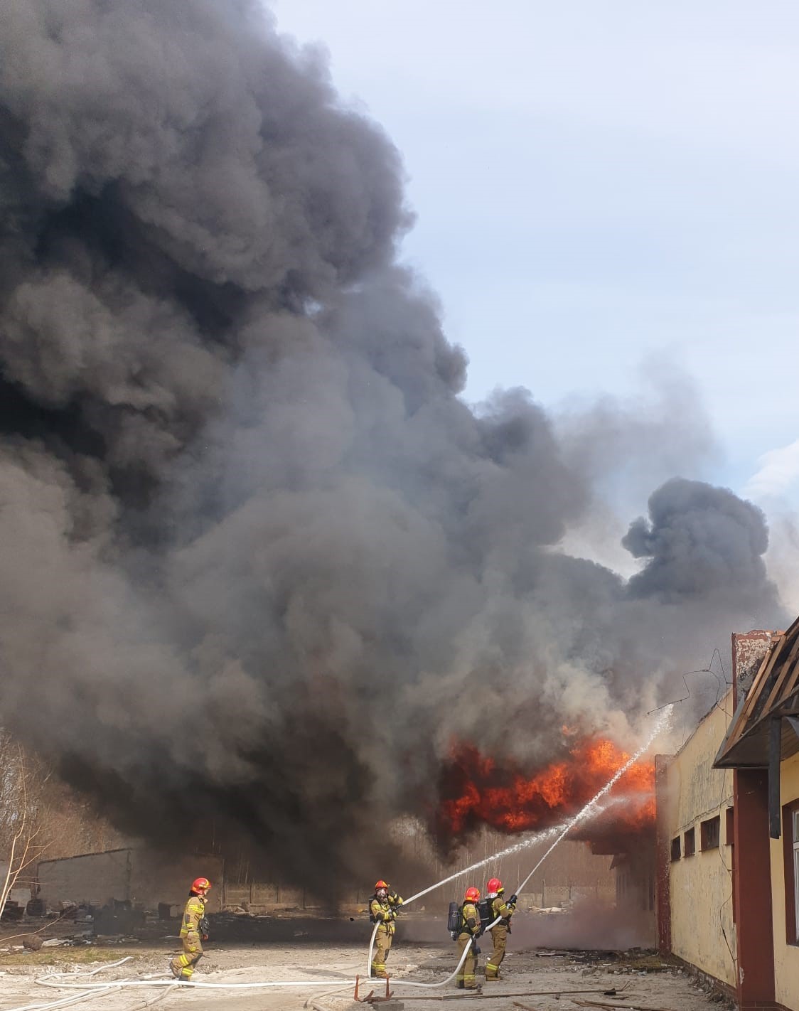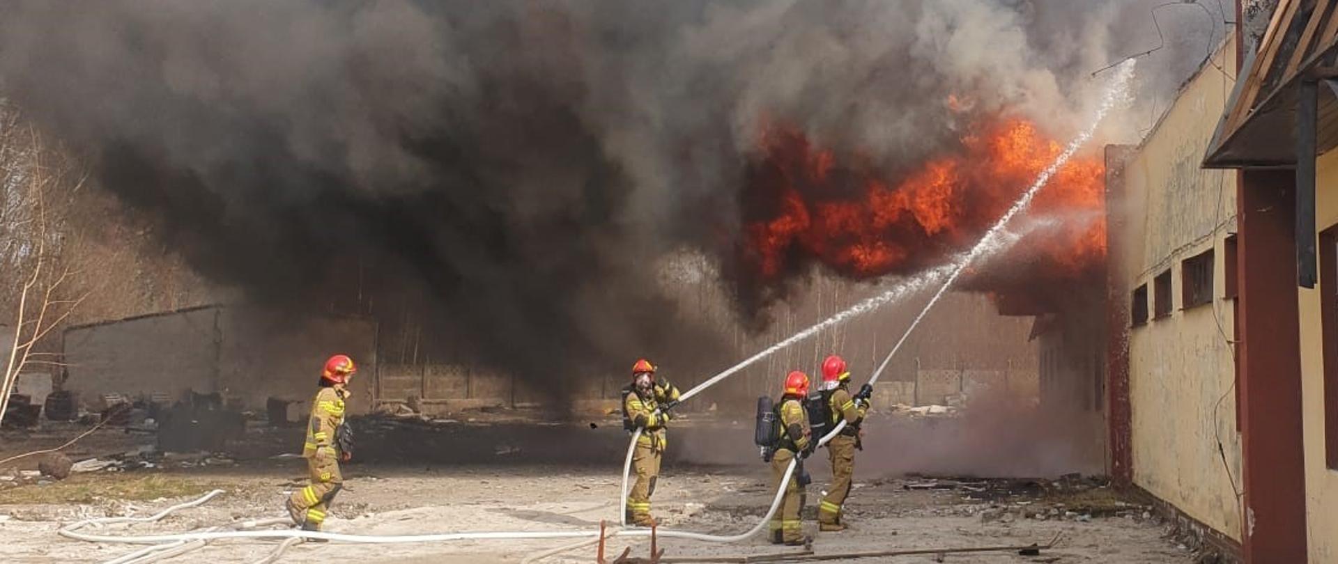 Strażacy natychmiast przystąpili do gaszenia ognia w celu nierozprzestrzenienia się pożaru na dalszą część hali.