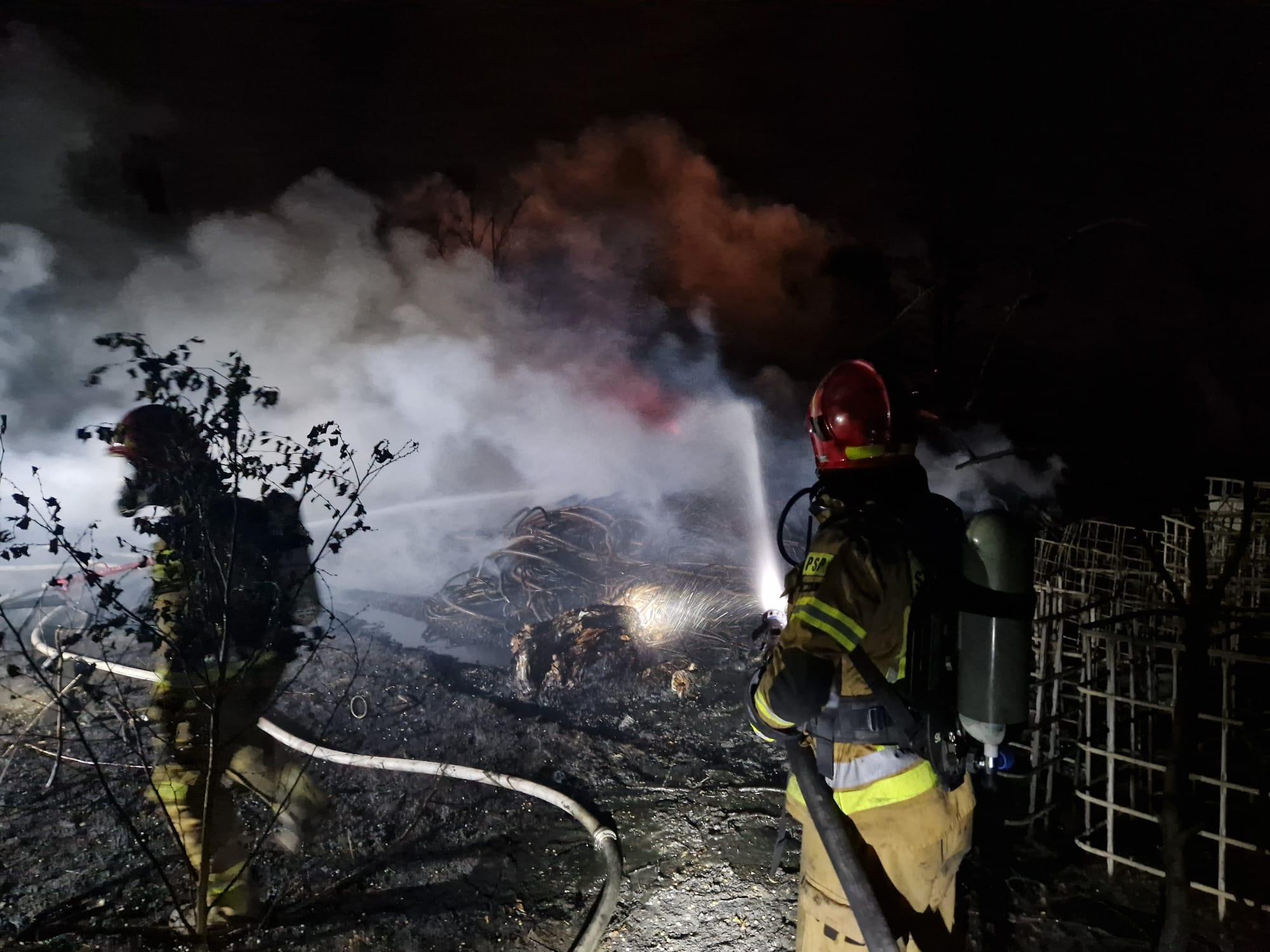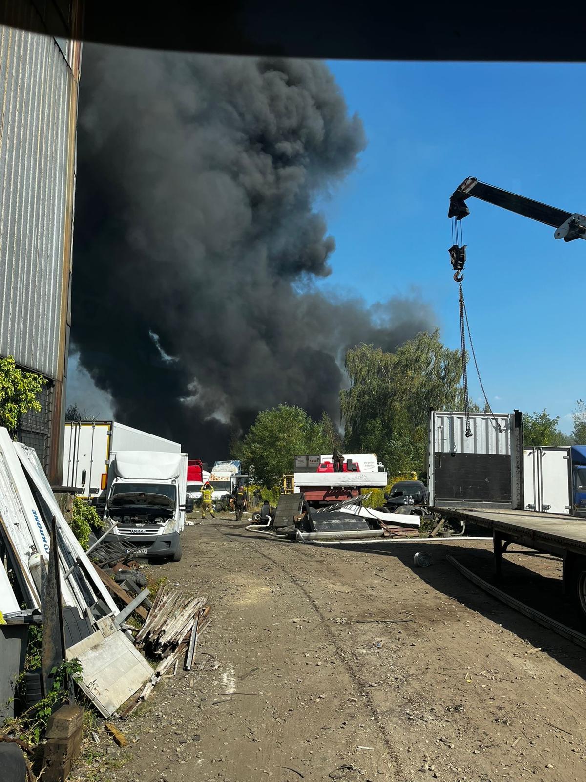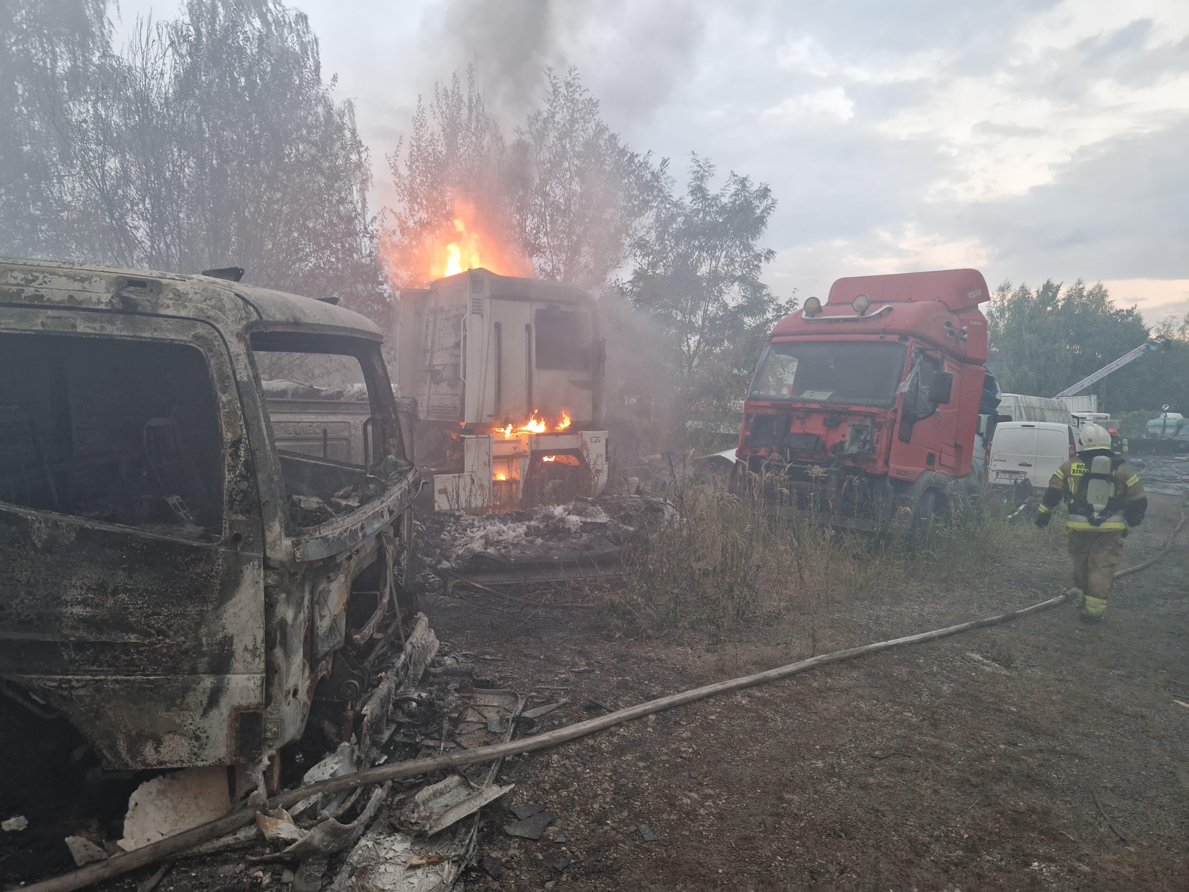 Ze względu na szybkie rozprzestrzenianie się ognia, dysponowane były kolejne siły i środki. W wyniku niekorzystnych warunków atmosferycznych (wiatr oraz wysoka temperatura), pożar rozprzestrzenił się na sąsiednie działki, na których znajdowało się składowisko odpadów oraz warsztat obok którego zaparkowane były samochody ciężarowe.