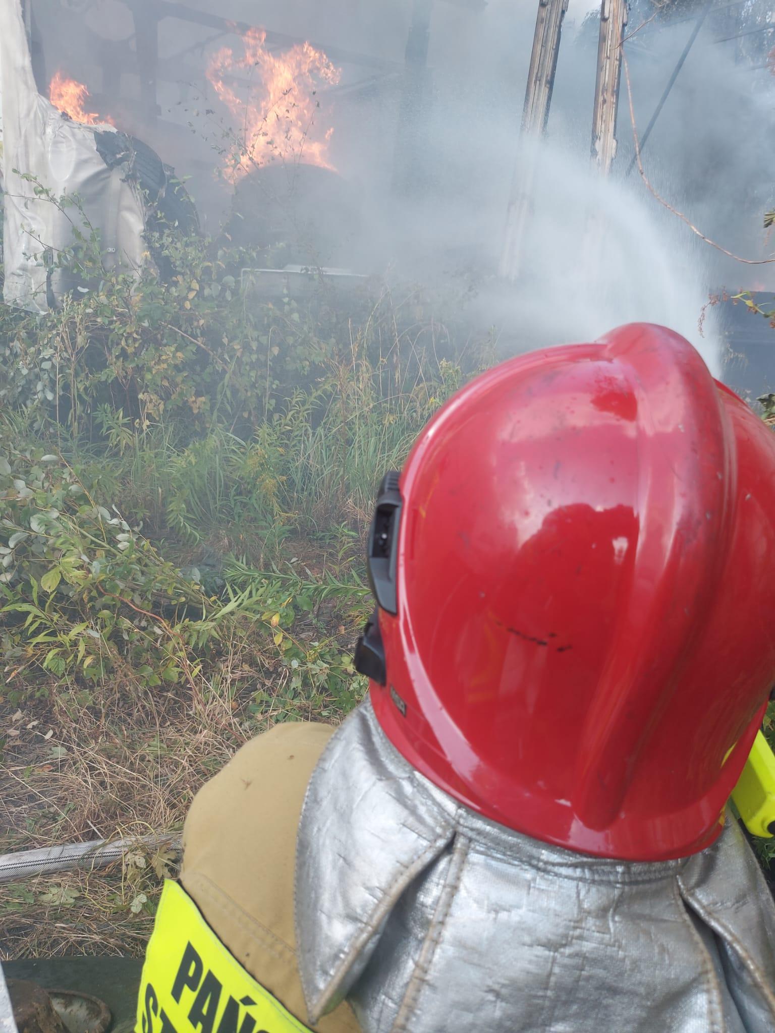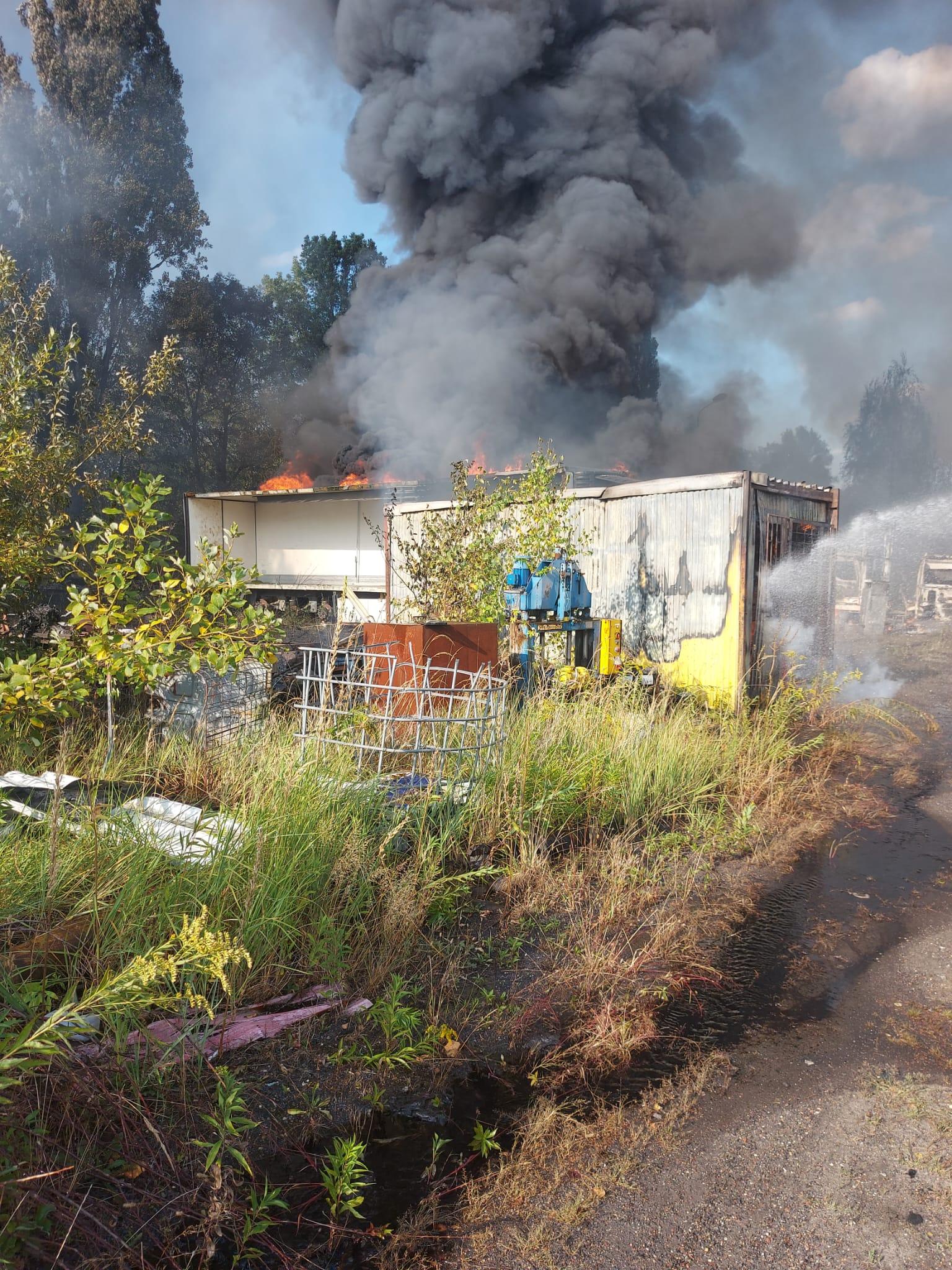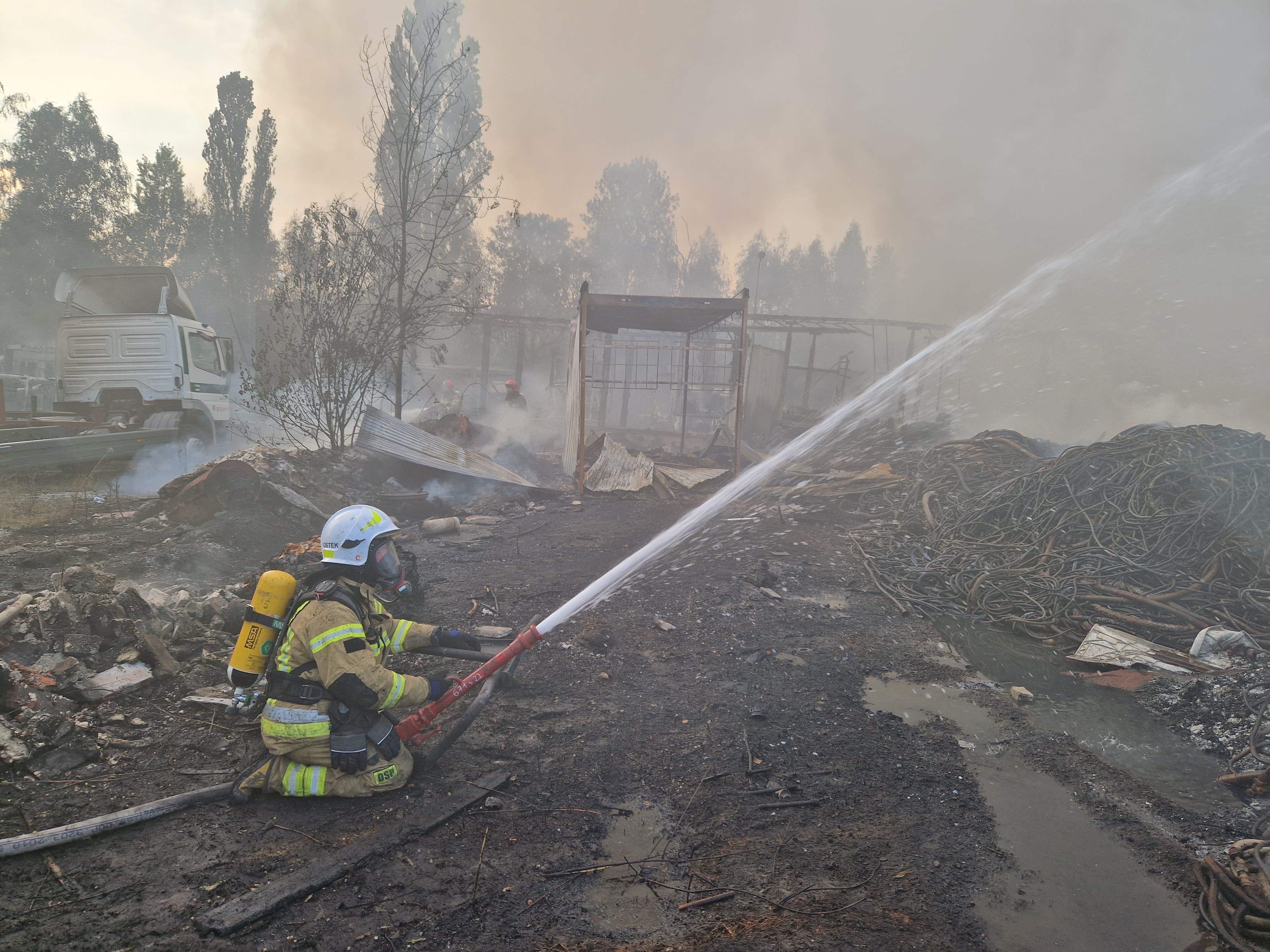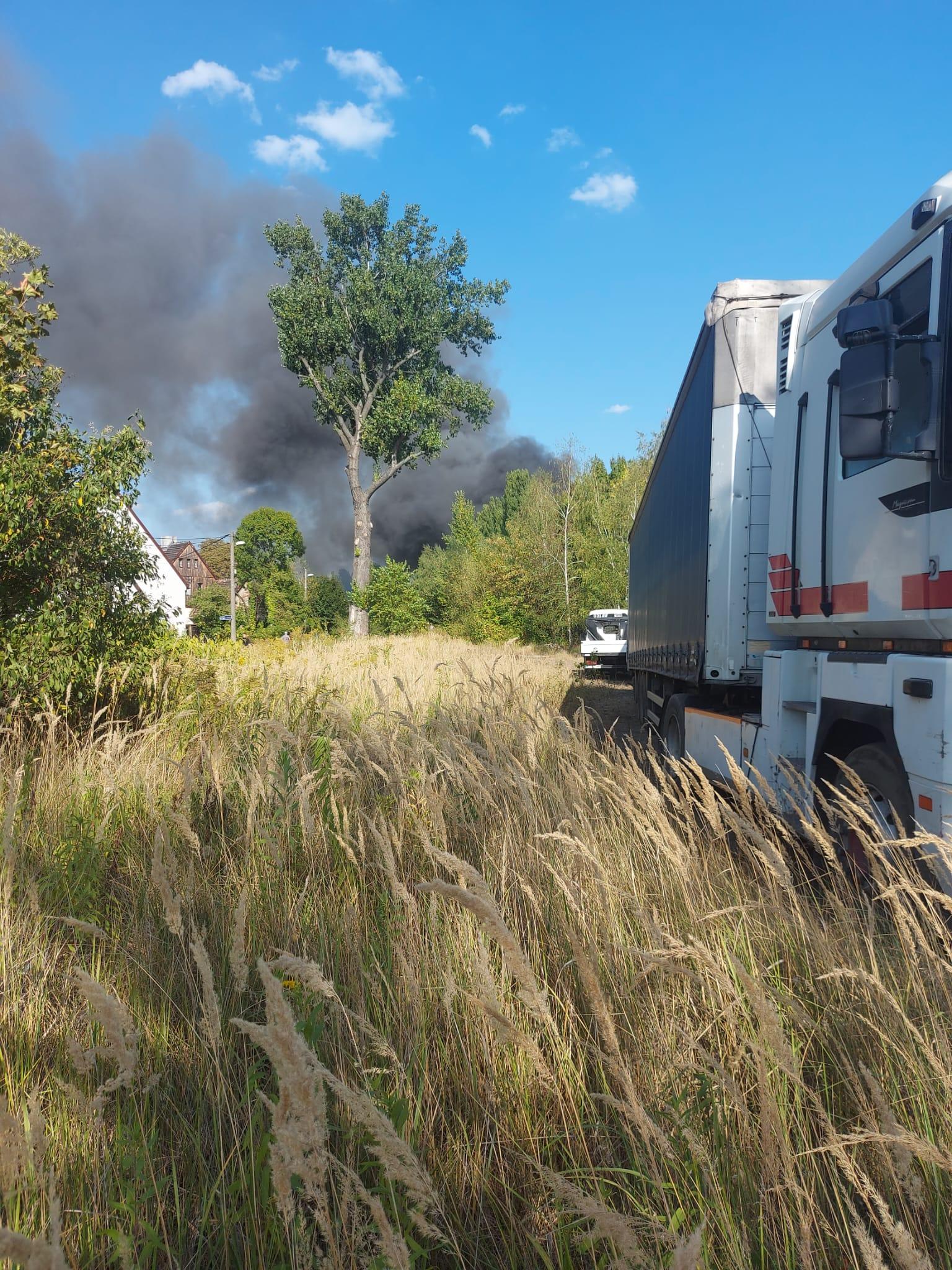 Ze względu na szybkie rozprzestrzenianie się ognia, dysponowane były kolejne siły i środki. W wyniku niekorzystnych warunków atmosferycznych (wiatr oraz wysoka temperatura), pożar rozprzestrzenił się na sąsiednie działki, na których znajdowało się składowisko odpadów oraz warsztat obok którego zaparkowane były samochody ciężarowe.