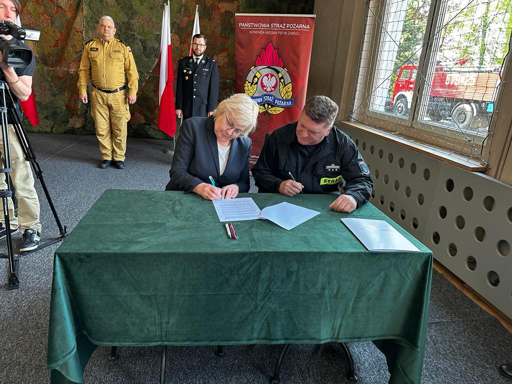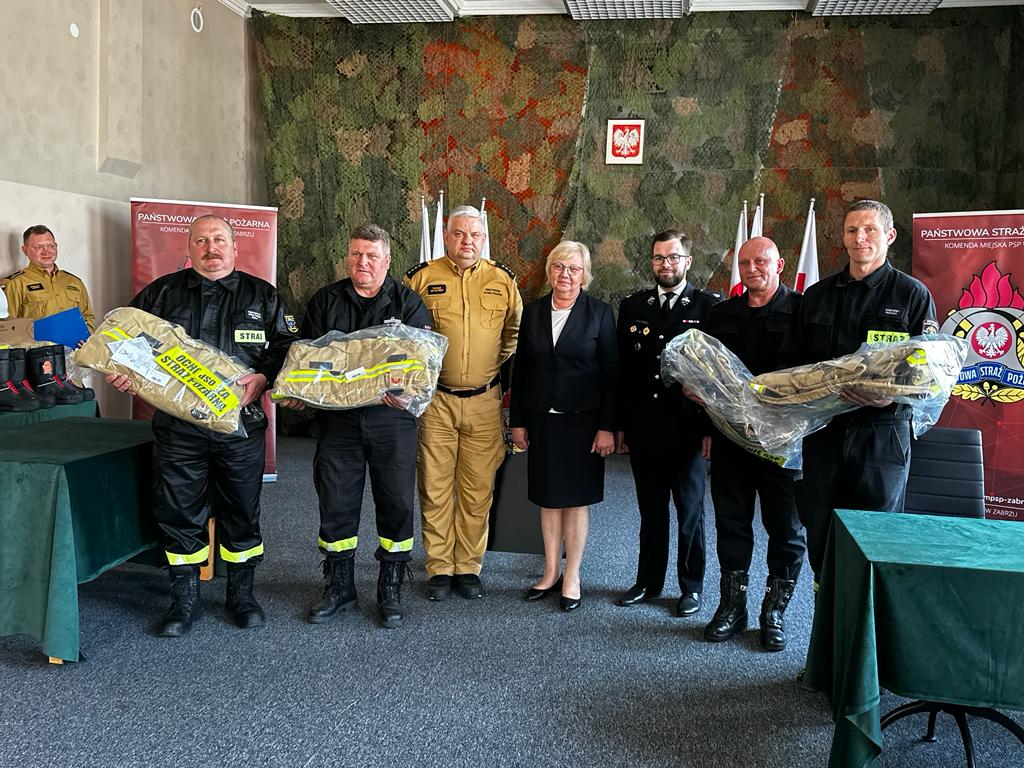 5 maja 2023 r. w Komendzie Miejskiej Państwowej Straży Pożarnej w Zabrzu odbyło się spotkanie, podczas którego przekazano nowe umundurowanie specjalne (m.in. hełmy, ubrania specjalne, buty, rękawice) przedstawicielom jednostek Ochotniczych Straży Pożarnych z terenu miasta Zabrze.