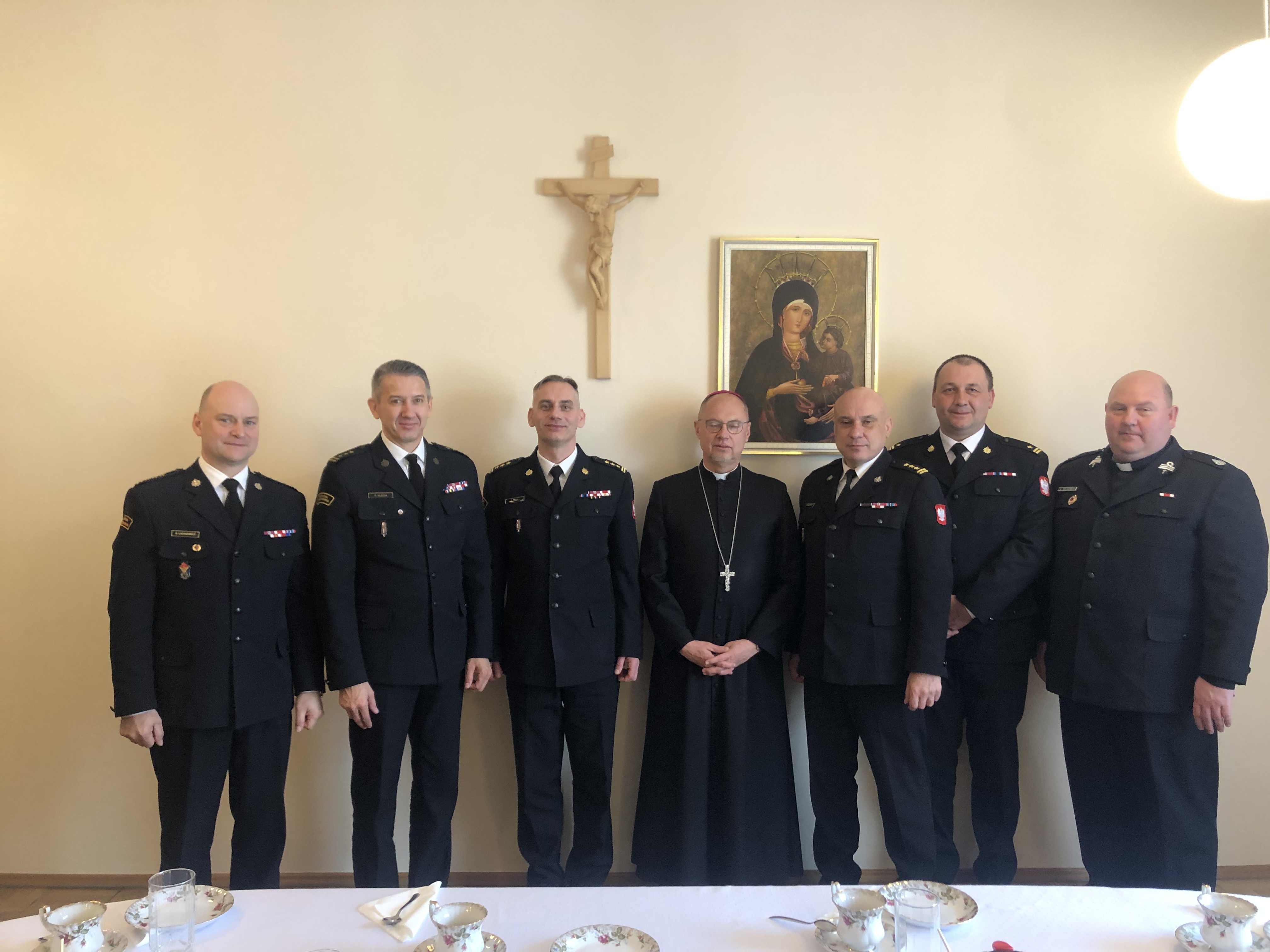 Podczas spotkania złożono gratulacje Księdzu Biskupowi Sławomirowi Oderowi z okazji objęcia urzędu Biskupa Gliwickiego oraz wręczono pamiątkową statuetkę św. Floriana. W trakcie spotkania omówione zostały sprawy współpracy Państwowej Straży Pożarnej z Ochotniczymi Strażami Pożarnymi oraz kwestie współpracy duszpasterstwa ze strażakami Diecezji Gliwickiej.