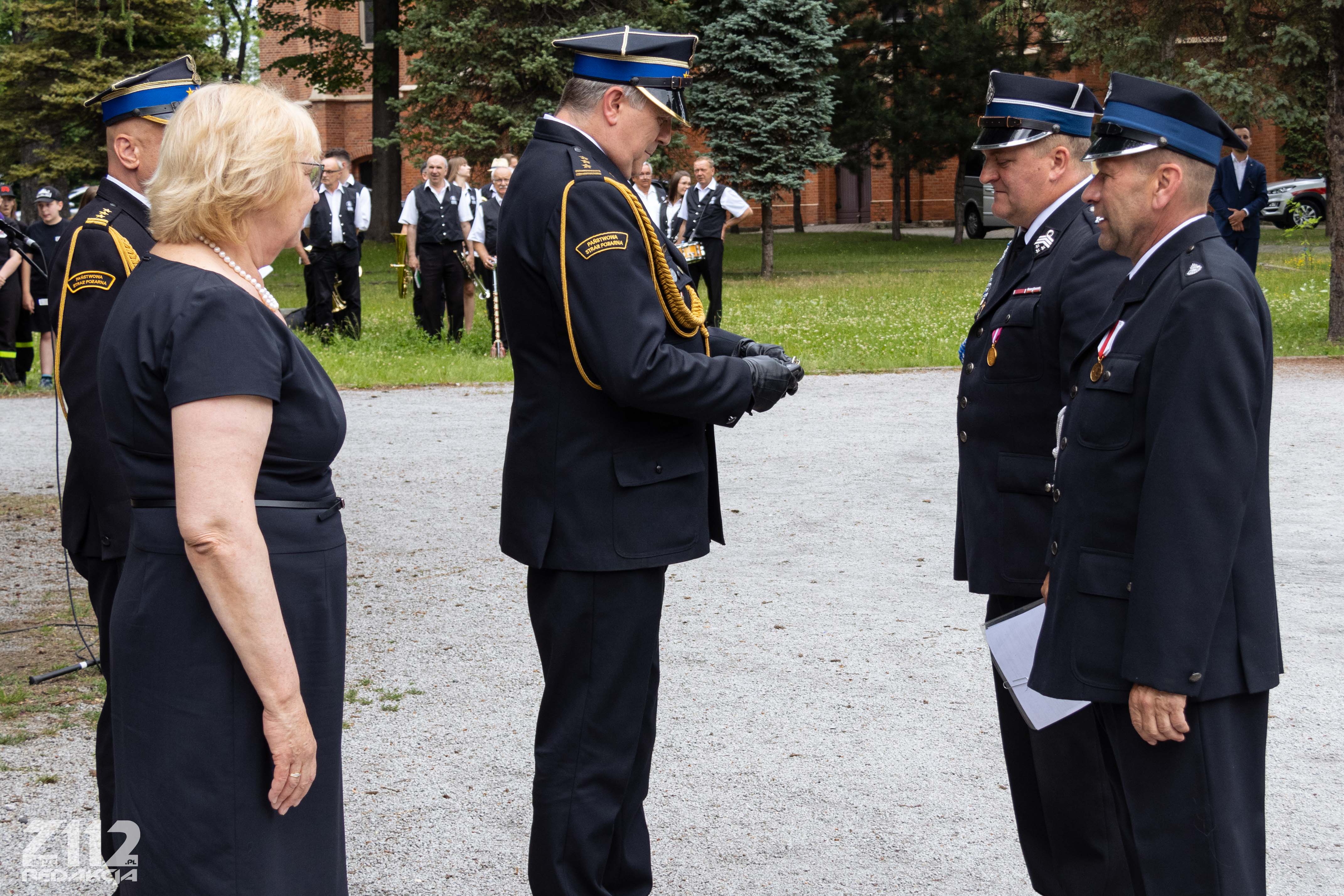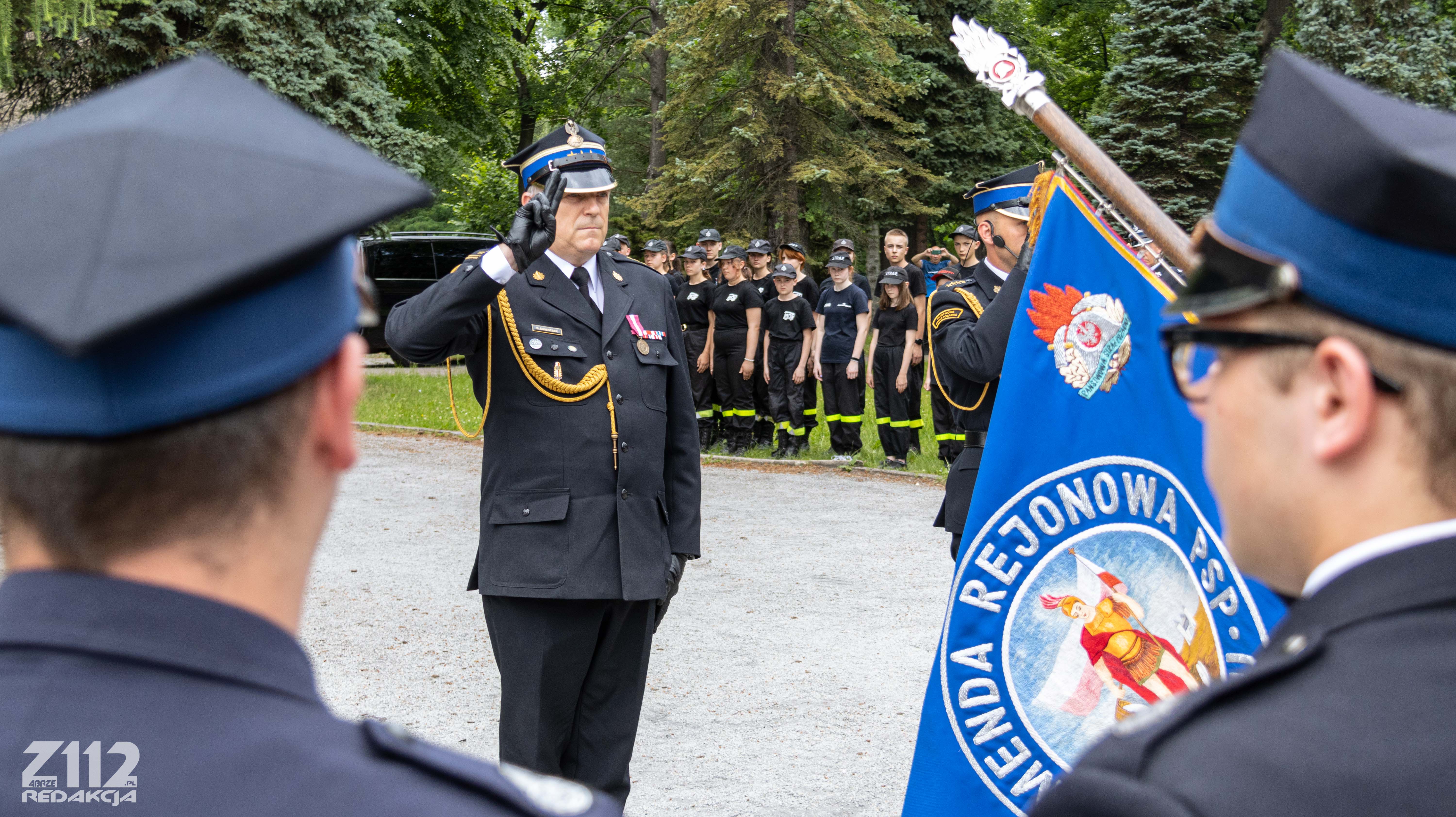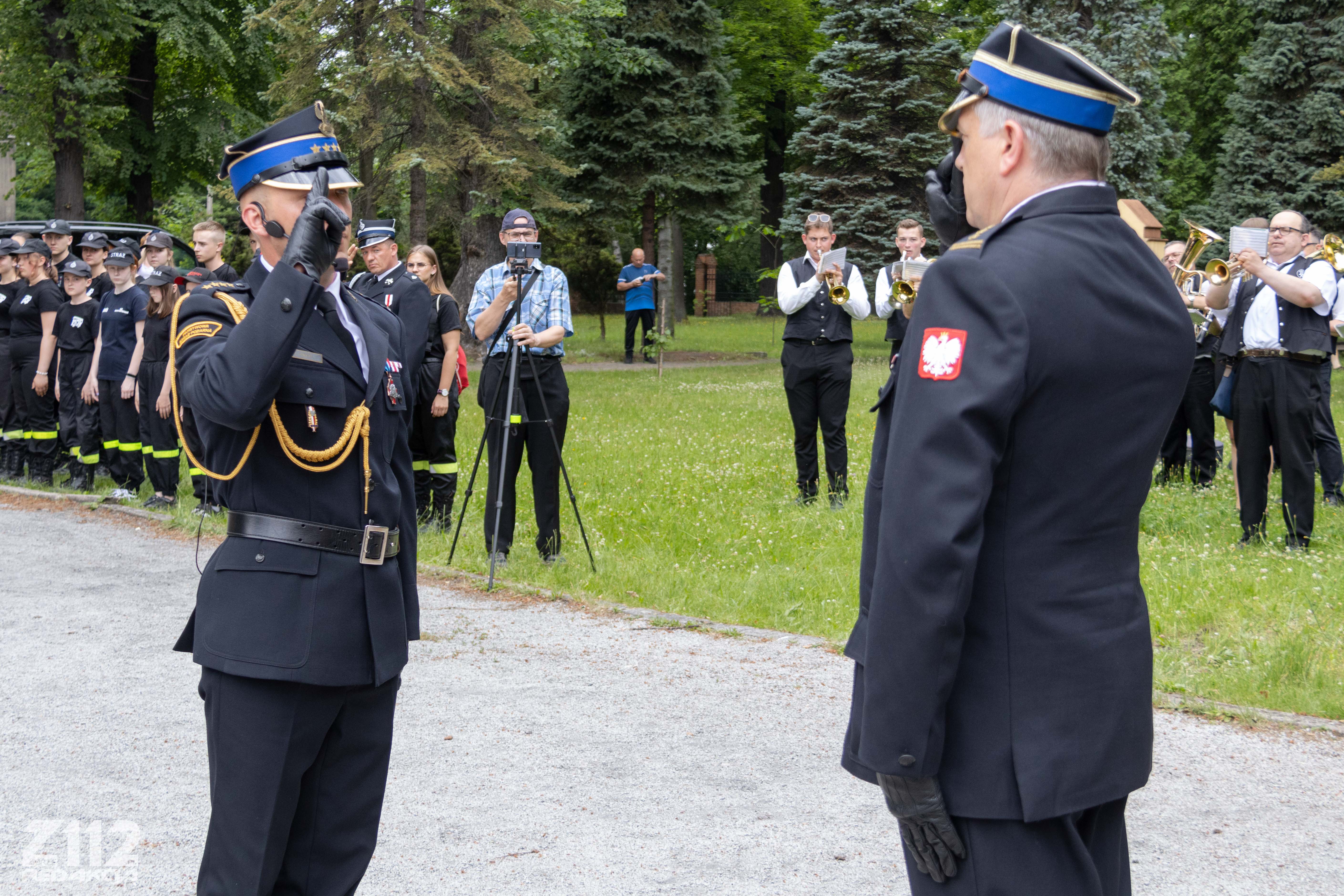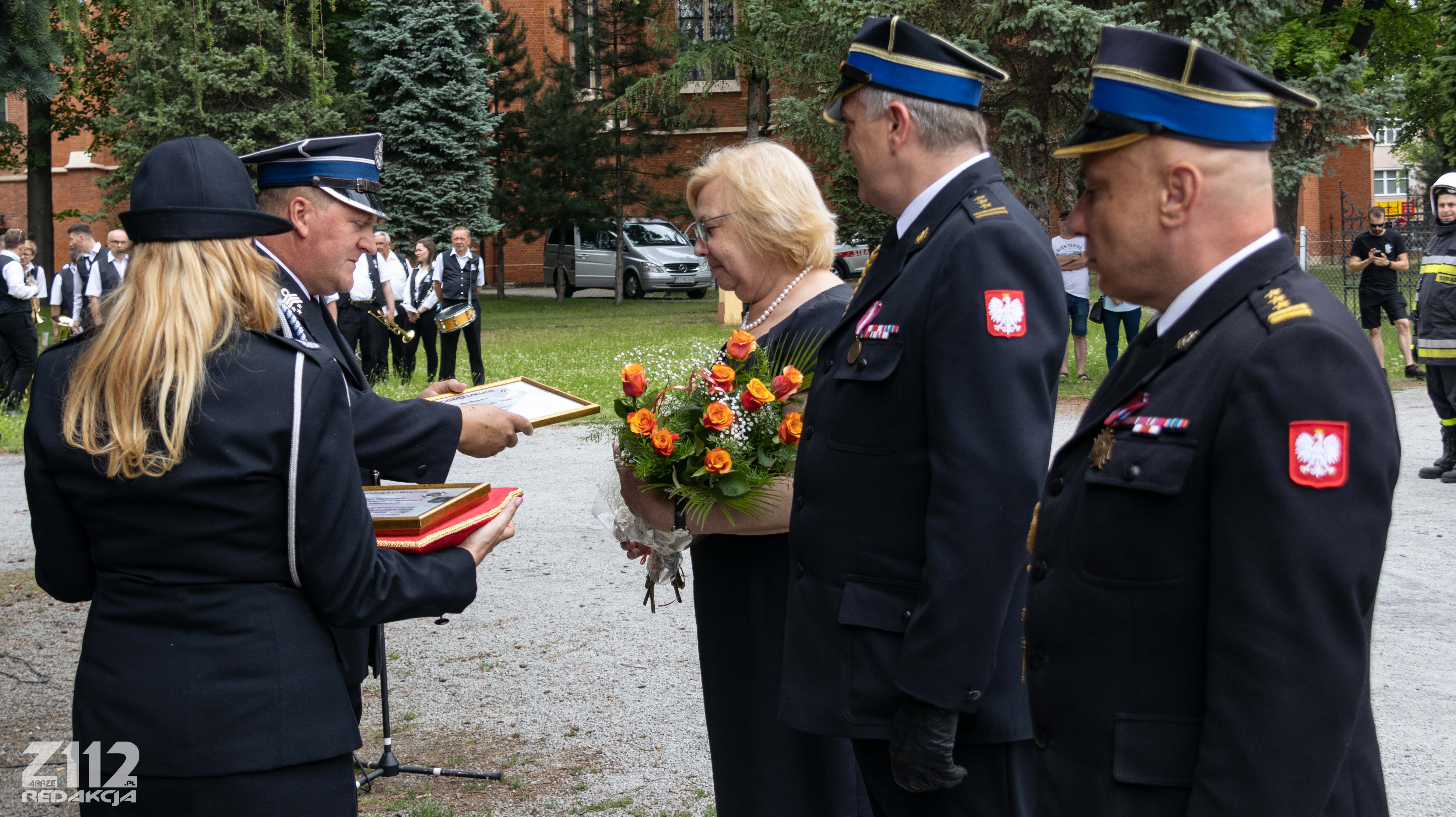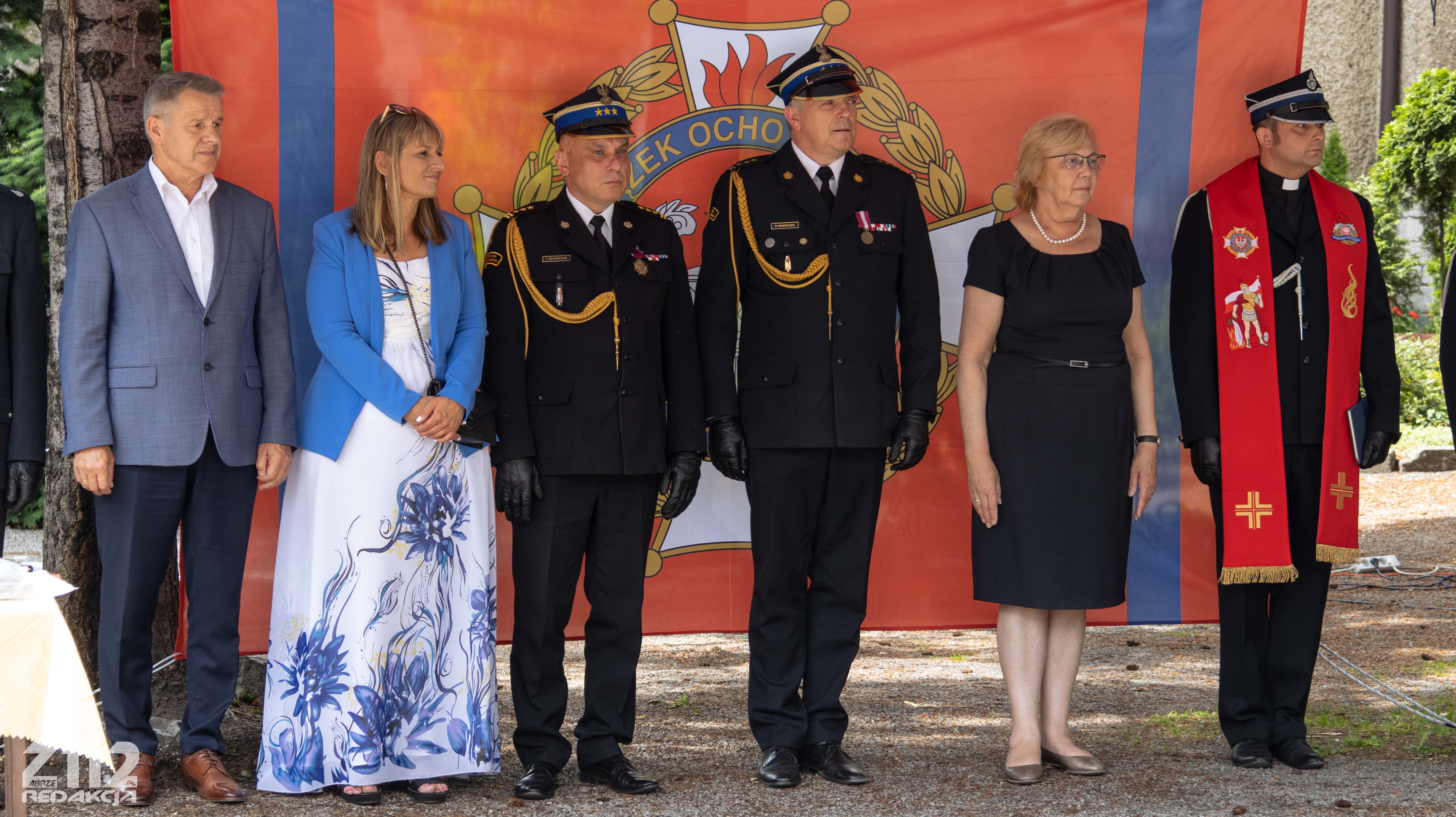 Uroczystość uświetnili: Poczet Sztandarowy Komendy Miejskiej PSP w Zabrzu, Poczet Sztandarowy OSP Mikulczyce oraz Dęta Orkiestra Muzeum Górnictwa Węglowego w Zabrzu.