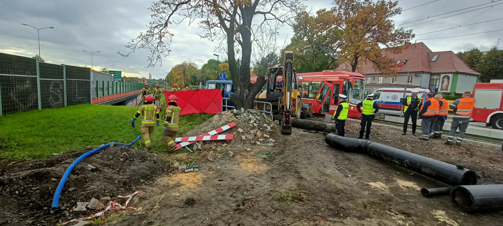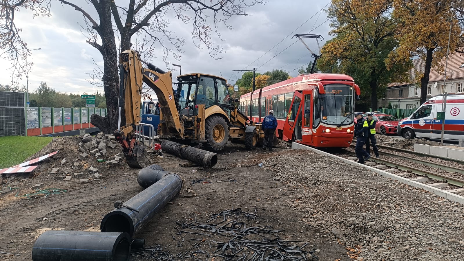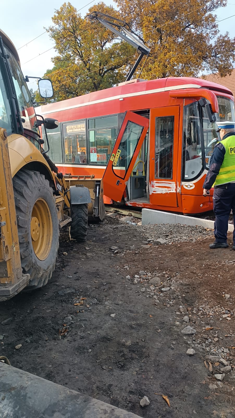 Wypadek z udziałem tramwaju i koparki