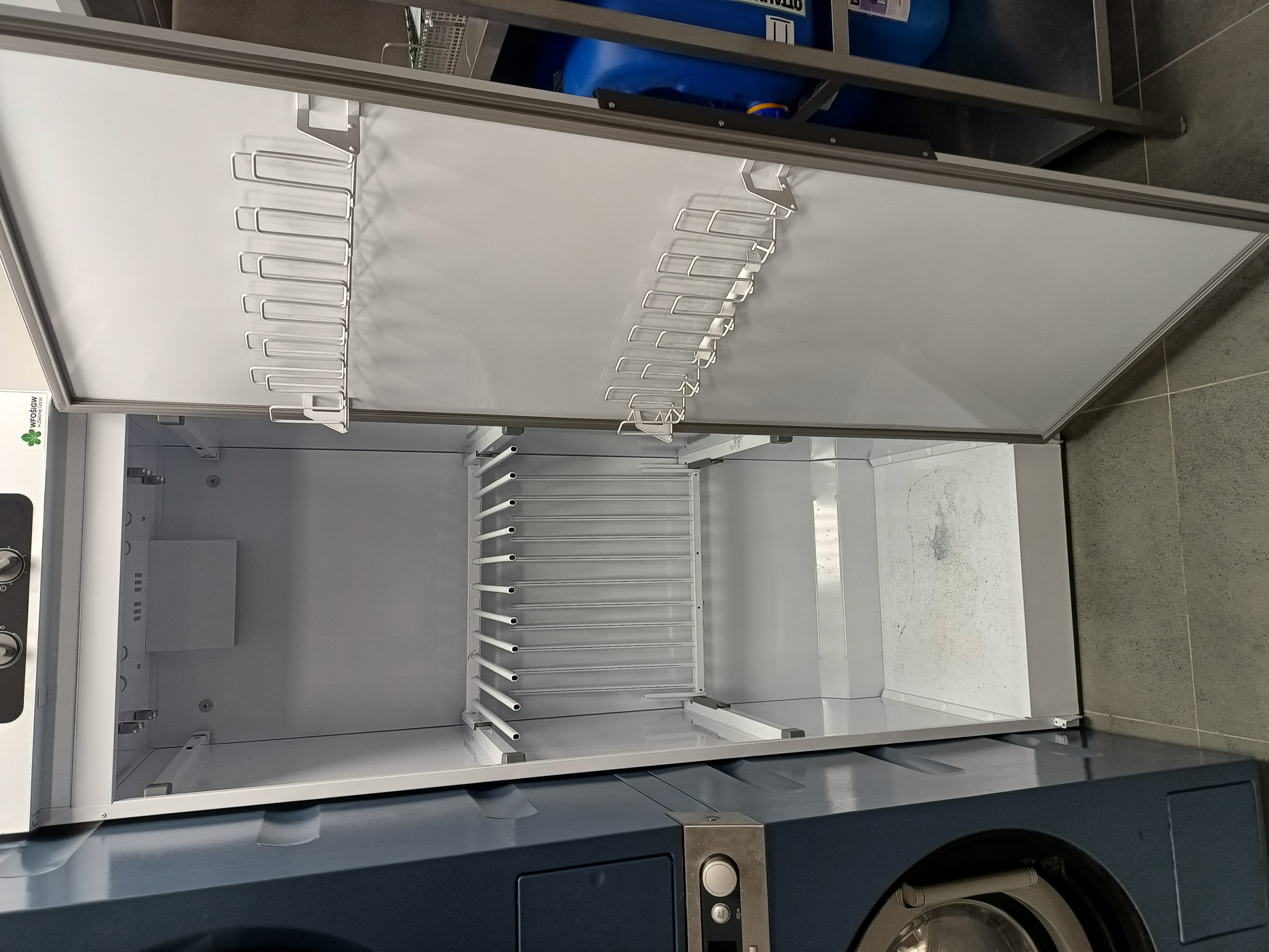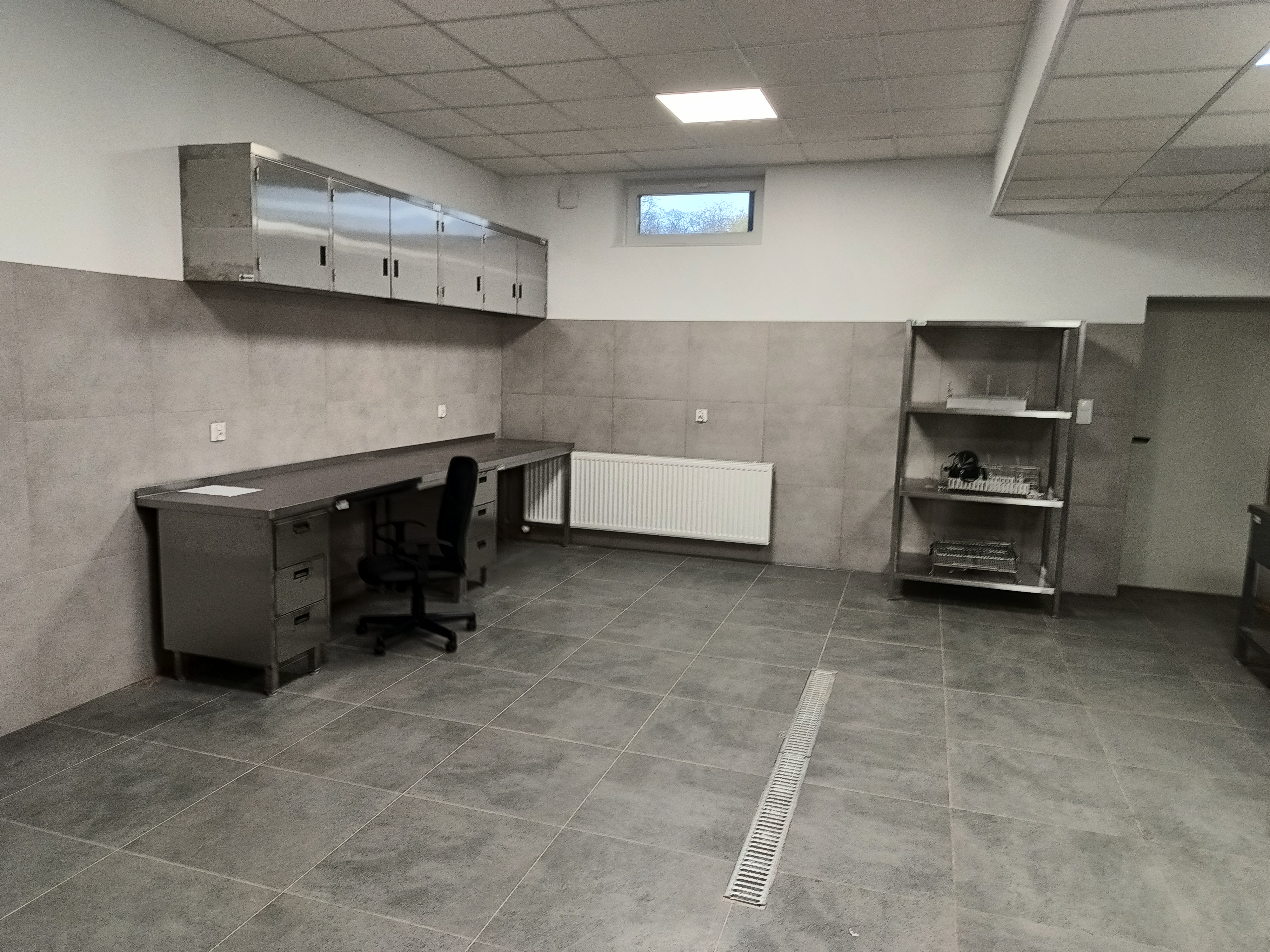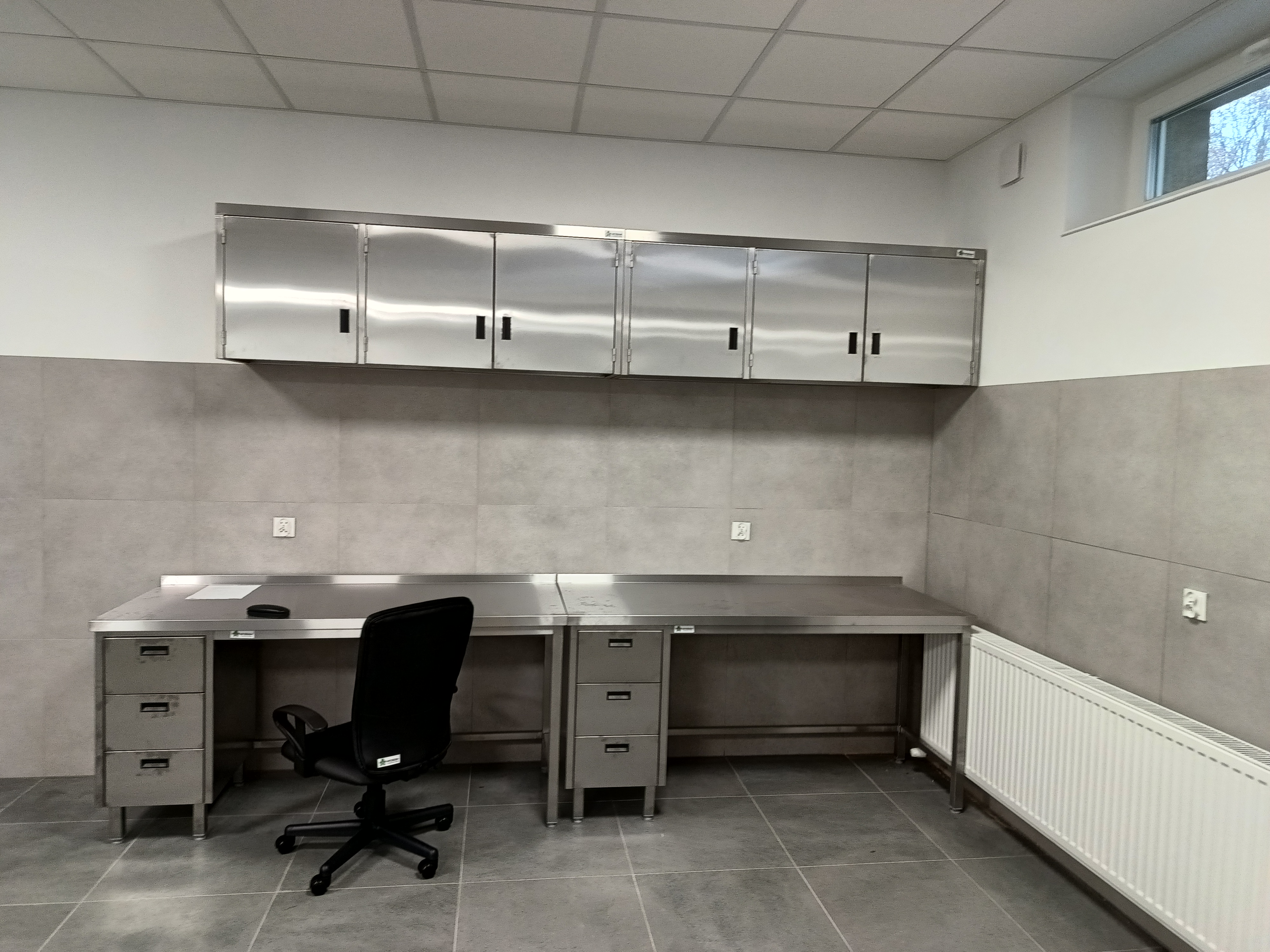 z występowaniem środowiska szkodliwego, aktywnego chemicznie. Pomieszczenie zostało przystosowane pod względem technicznym do korzystania z pralnico-suszarki ubrań specjalnych, myjki masek i suszarni obuwia. Do prowadzenia dekontaminacji ubrań gazoszczelnych zakupiono stoły ze stali nierdzewnej, które ułatwią prowadzenie czynności dezynfekujących. Ponadto zamontowano regały, szafki i półki również ze stali nierdzewnej. Do celów pomiarowych wyposażono stanowisko w mierniki wielogazowe.
