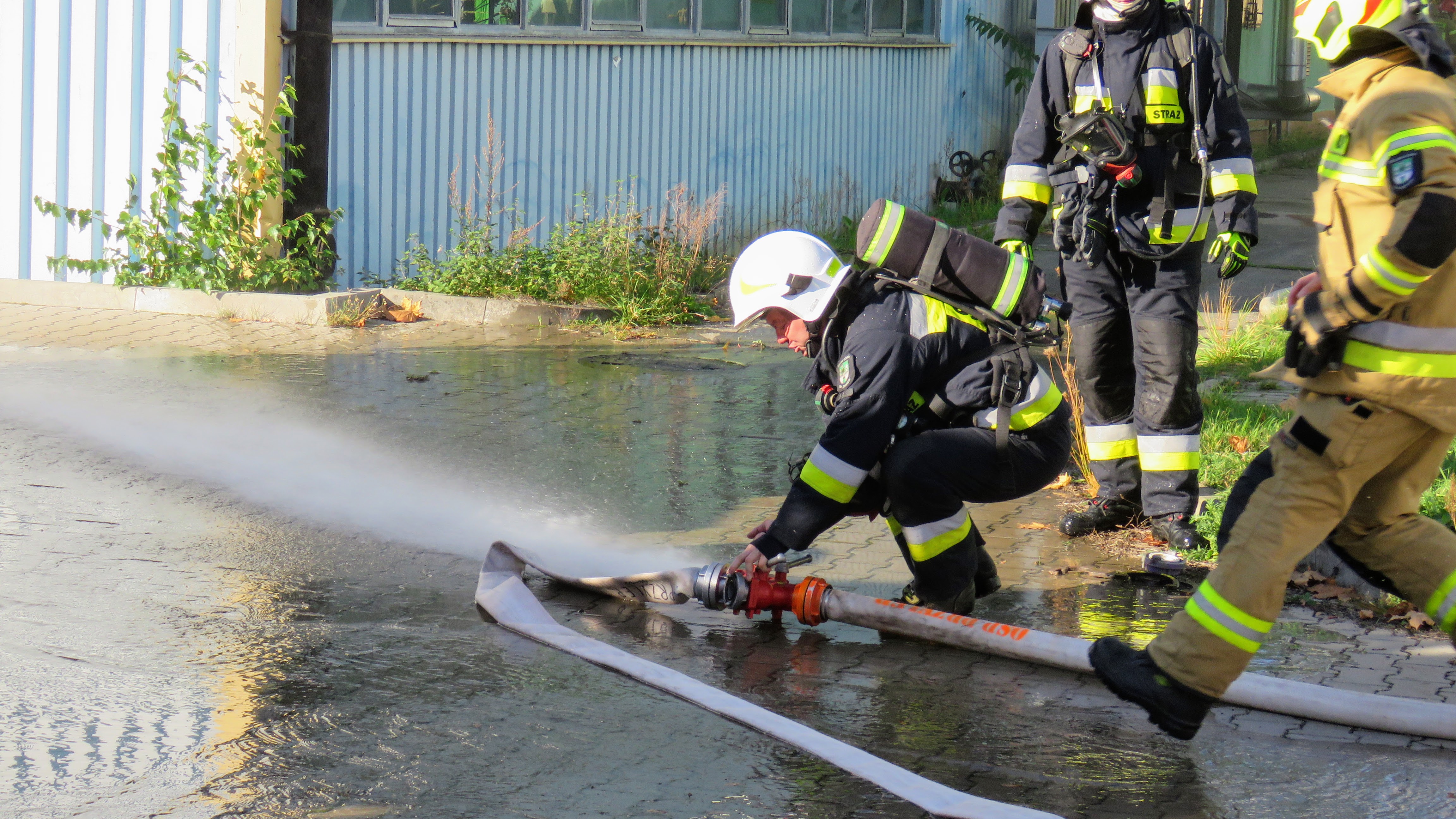 Dodatkowe niebezpieczeństwo stanowiły zbiorniki z substancją niebezpieczną składowane przy płonącym budynku które należało szybko przetransportować w miejsce bezpieczne.