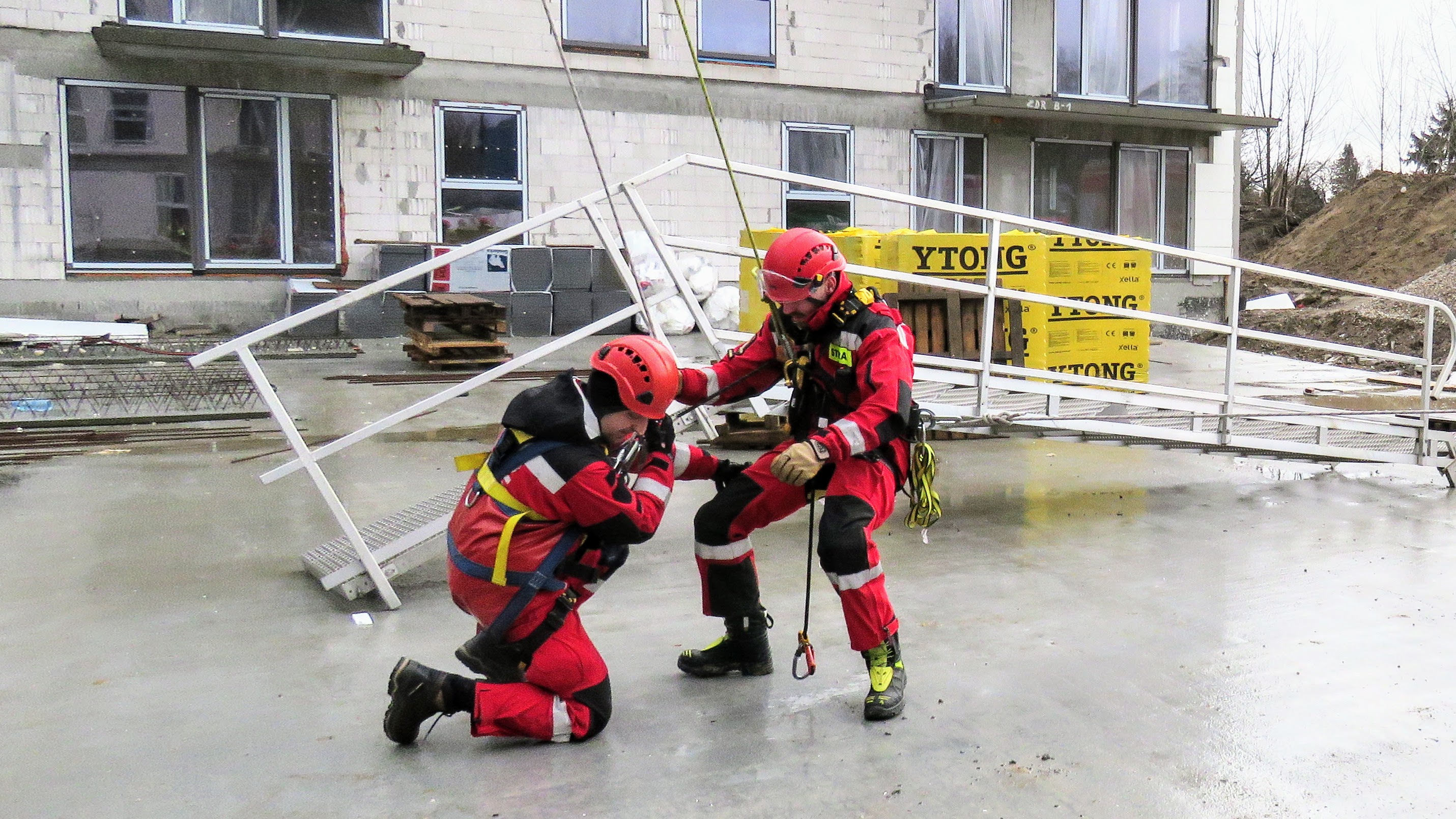 Niska temperatura, wysoka wilgotność oraz konstrukcja dźwigu sprawiały dodatkowe utrudnienie z jakim musieli się zmierzyć ratownicy. Wykorzystując sprzęt alpinistyczny oraz techniki linowe udało się szybko i sprawnie sprowadzić przytomnego operatora na powierzchnię, wcześniej udzielając mu pierwszej pomocy.