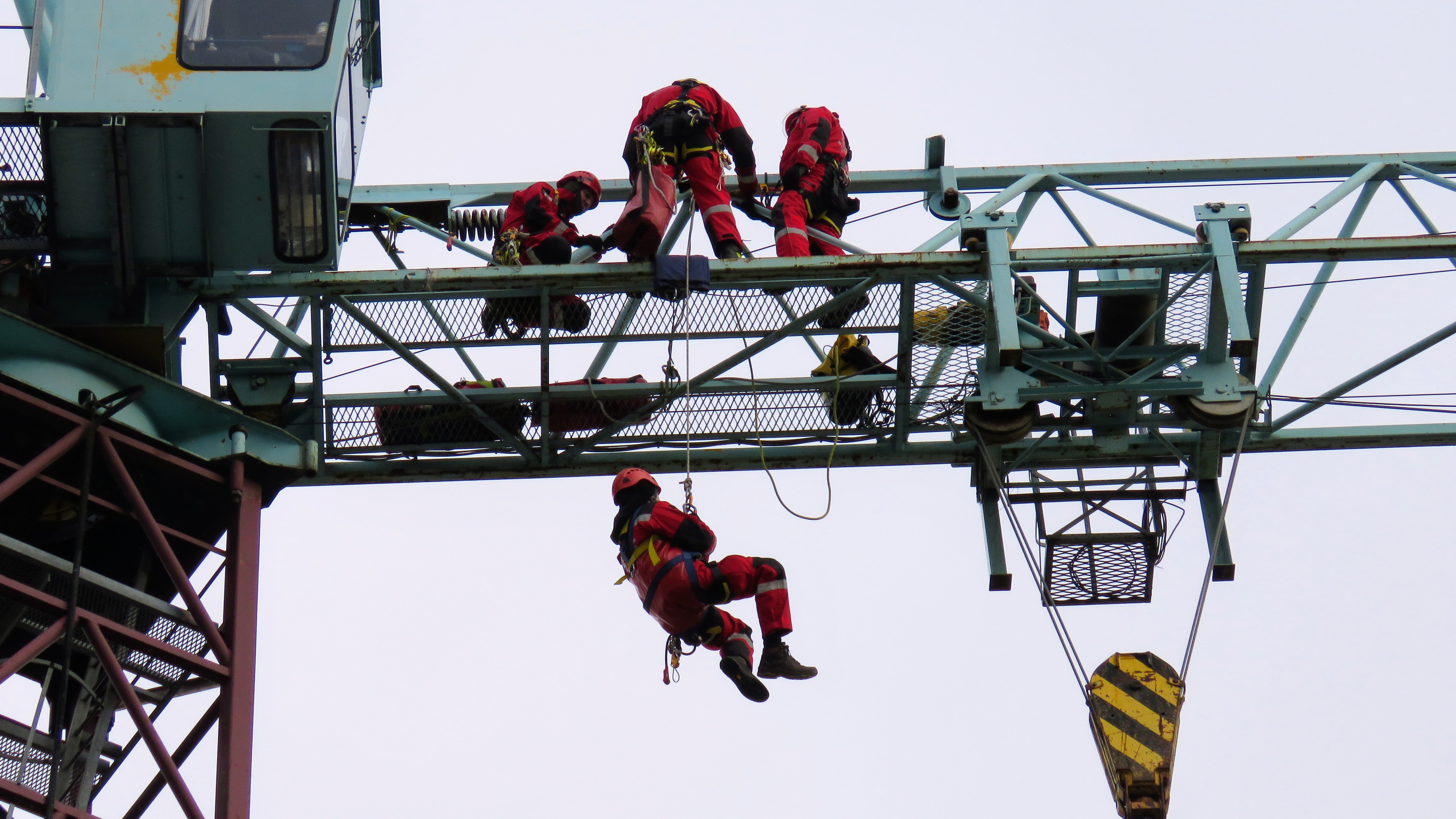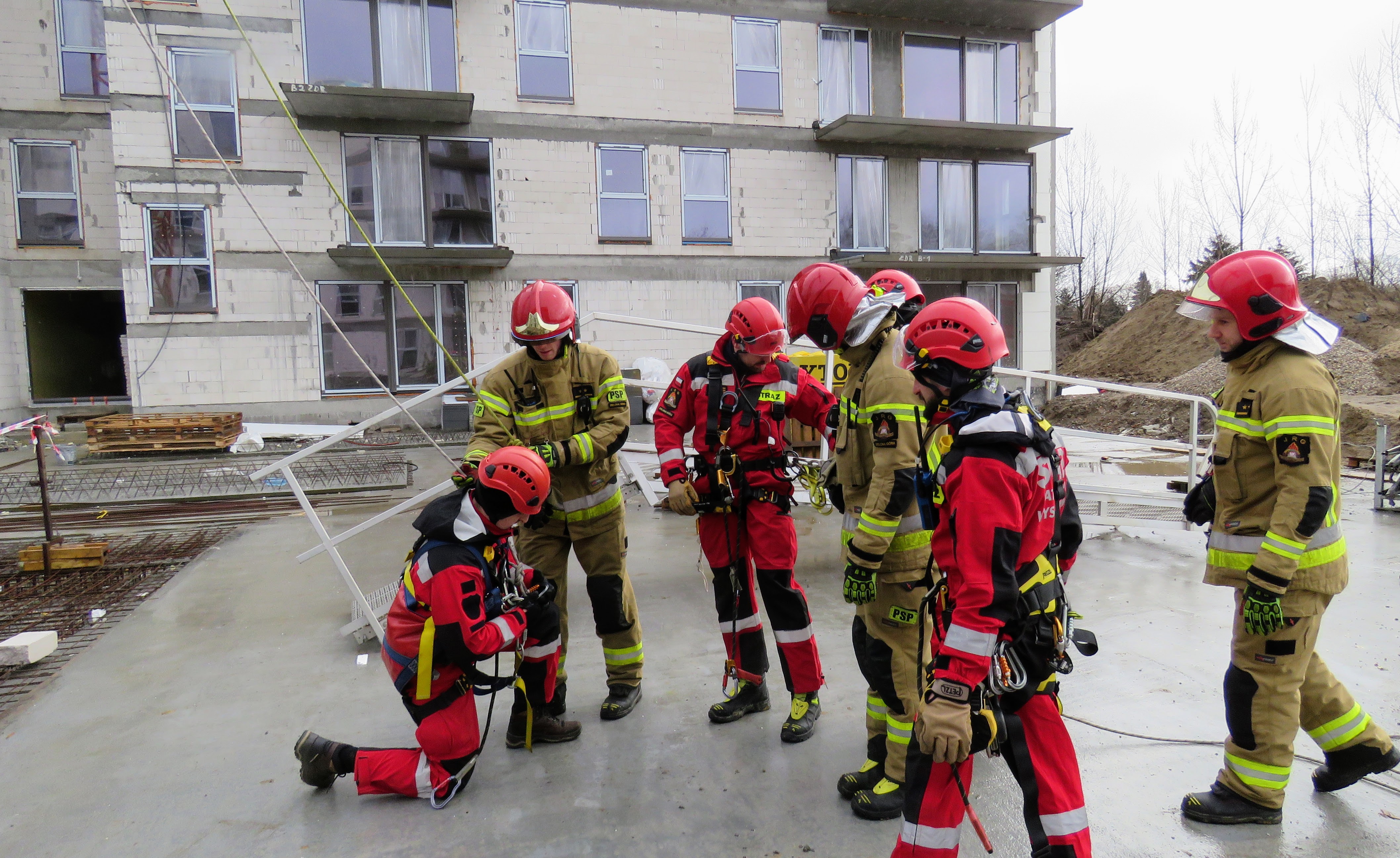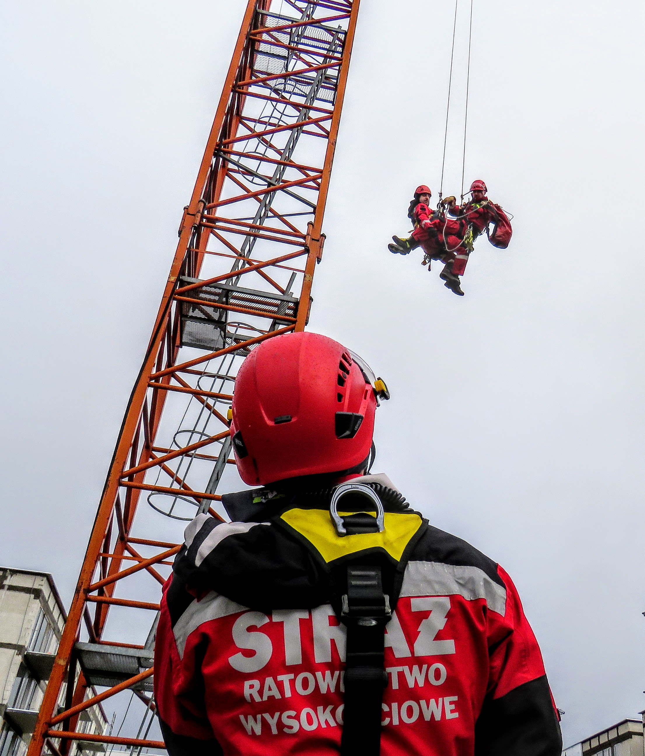 Specjalistyczna Grupa Ratownictwa Wysokościowego nieustannie doskonali umiejętności niesienia pomocy w trudnym obszarze jakim są m.in. wysokie konstrukcje czy budynki wysokościowe. Tym razem scenariusz ćwiczeń zakładał działania ratownicze operatora żurawia wieżowego z którym obsługa naziemna straciła kontakt.