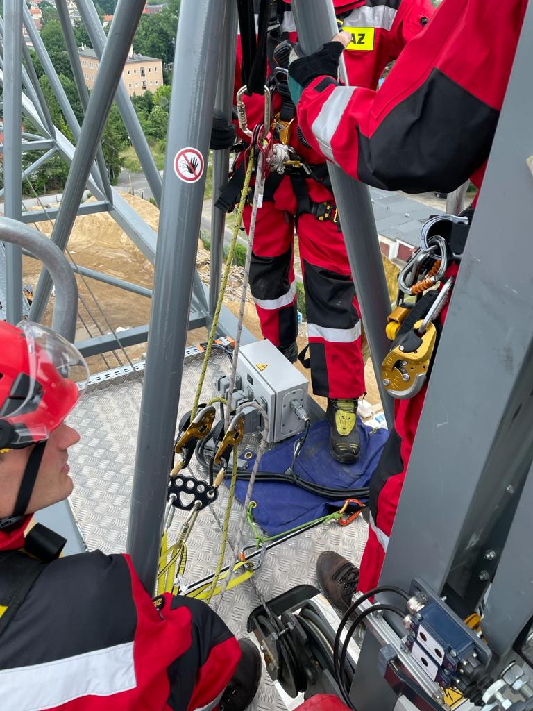 Specjalistyczna Grupa Ratownictwa Wysokościowego JRG1 Zielona Góra przeprowadziła cykl ćwiczeń z zakresu wykorzystania technik alpinistycznych w działaniach ratowniczych na dużej wysokości.