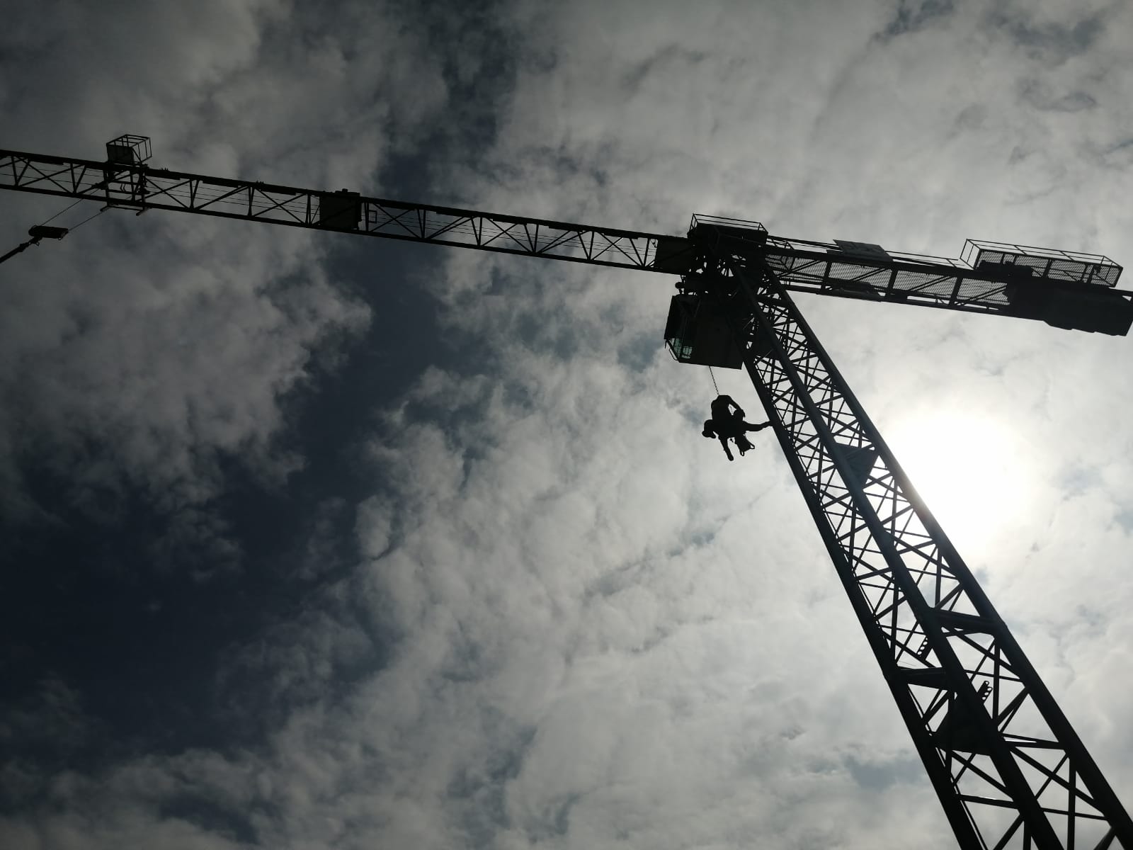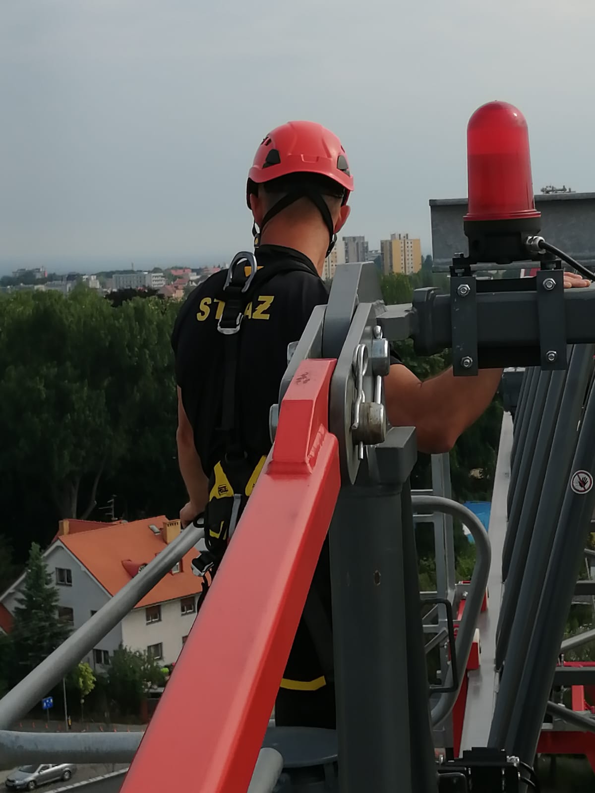 Scenariusz działań zakładał ewakuację operatora żurawia wieżowego, który ze względów zdrowotnych nie jest w stanie sam opuścić stanowiska pracy.