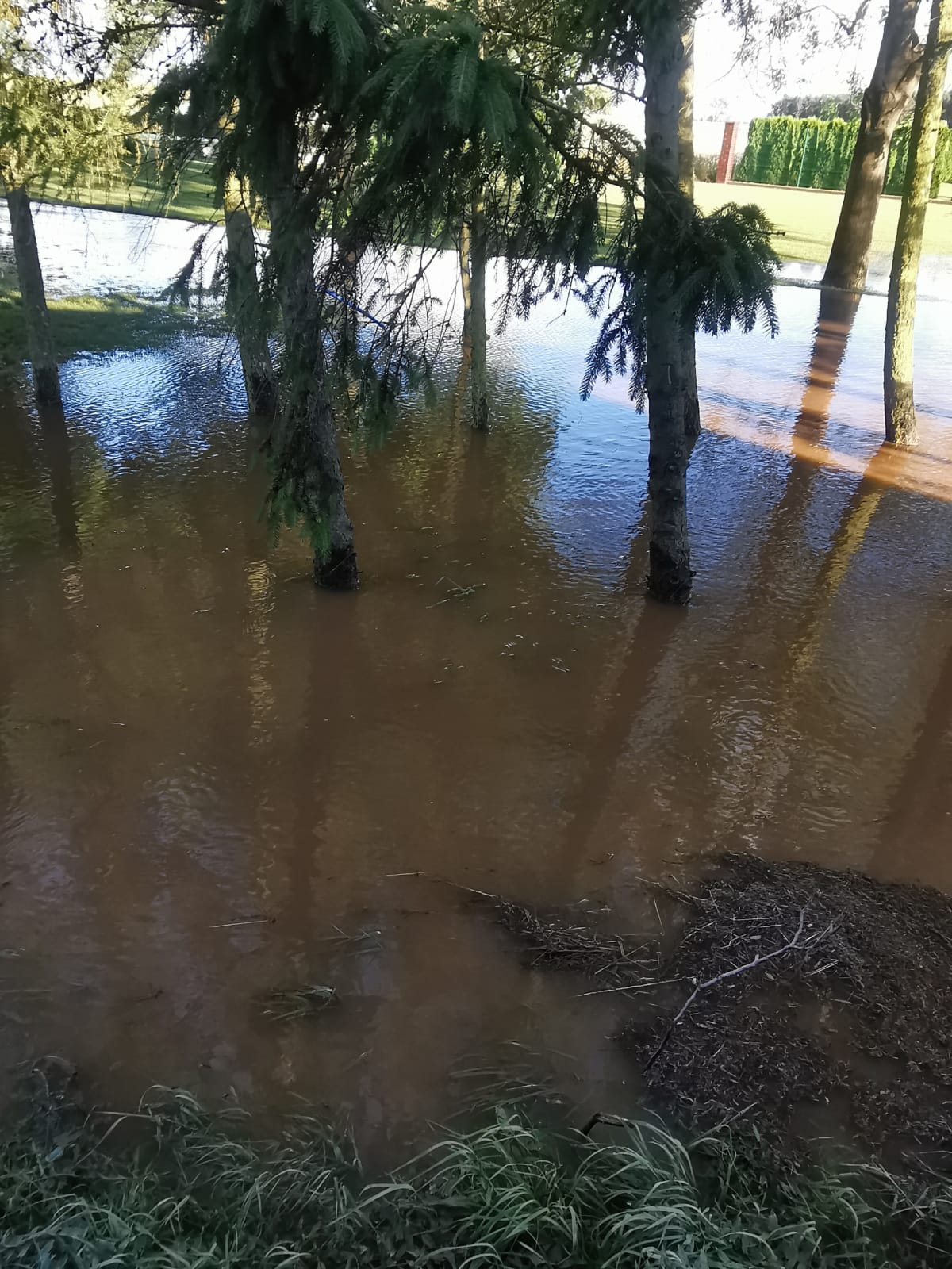 Po godzinie 12.00 fala opadów dotarła w rejony północno-wschodnie powiatu zielonogórskiego generując kolejne zgłoszenia podtopień z okolic Sulechowa i Babimostu.