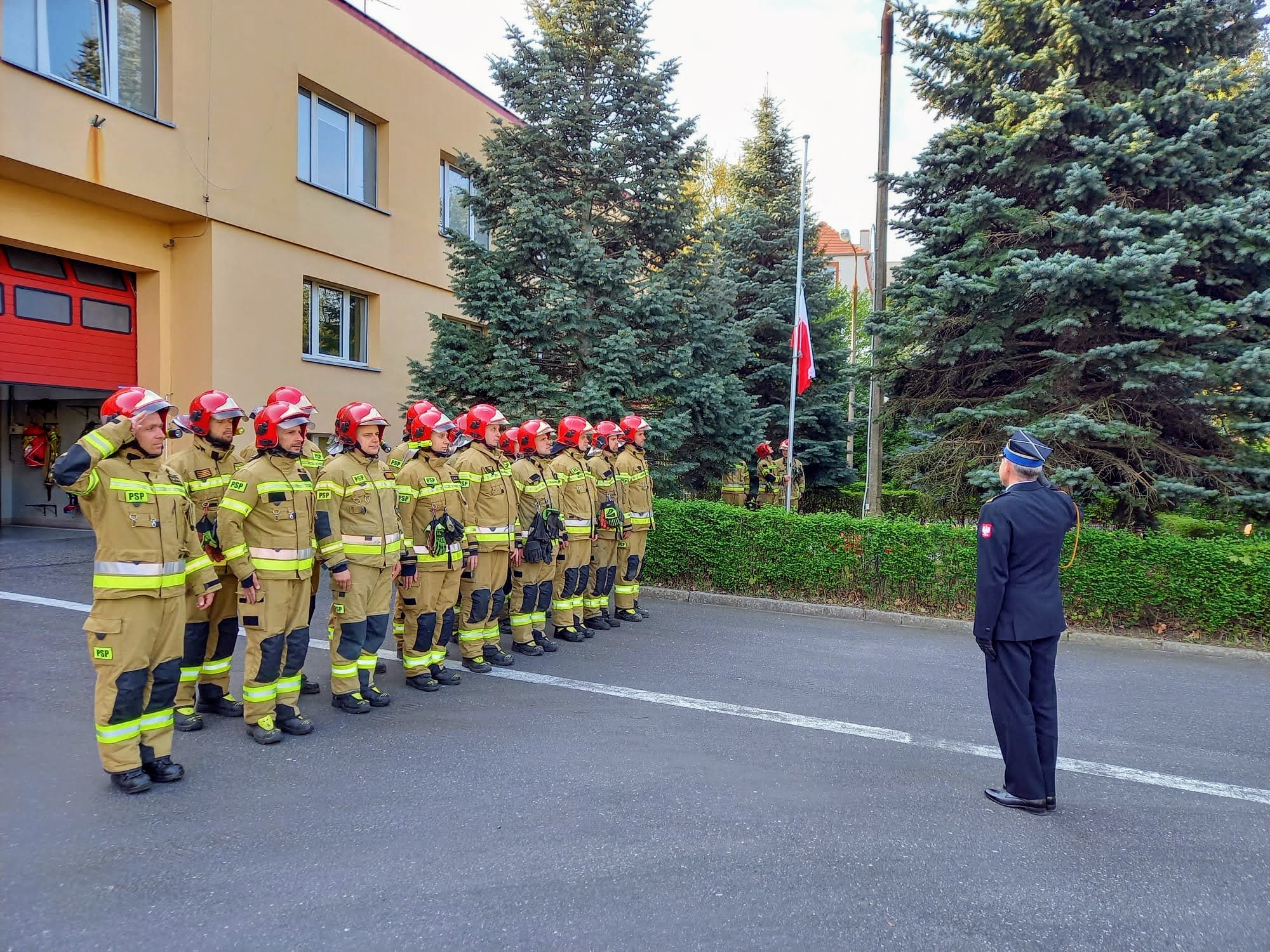 W dniu 2 maja 2022 r., w Jednostkach Ratowniczo – Gaśniczych Komendy Miejskiej Państwowej Straży Pożarnej w Zielonej Górze odbyły się uroczyste zmiany służby z okazji Dnia Flagi Rzeczypospolitej Polskiej.