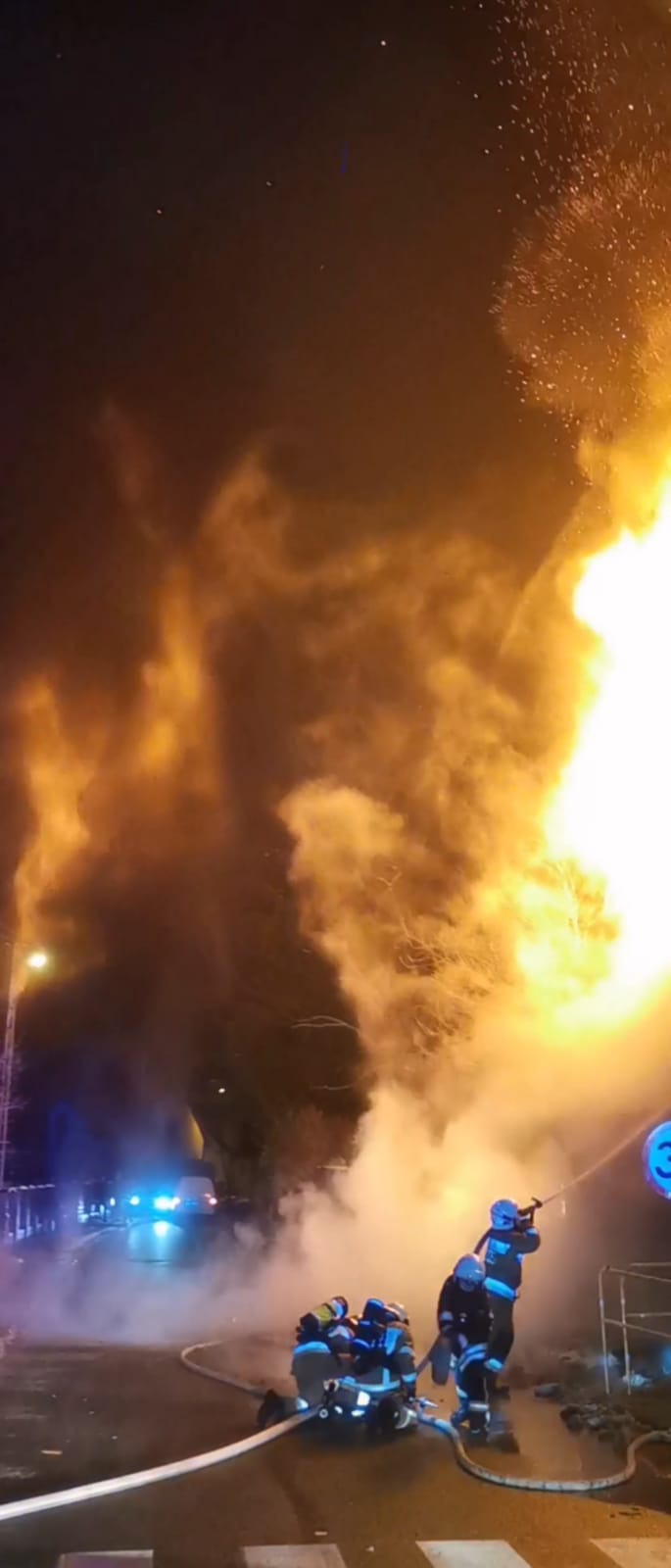 Pierwsze działania strażaków skoncentrowane były na gaszeniu dachu nad częścią mieszkalną budynku i obroną budynku bliźniaczego. Ponadto strażacy wyposażeni w izolujące aparaty powietrzne podjęli również działania wewnątrz budynku. Po dojeździe kolejnych jednostek straży pożarnej uzbrojonych w ciężkie samochody gaśnicze i drabinę pożarniczą, pożar ugaszono. W akcji wykorzystano specjalny samochód wyposażony w agregat do napełniania butli powietrznych. Łącznie w gaszeniu pożaru wzięło udział 15 zastępów straży pożarnych.