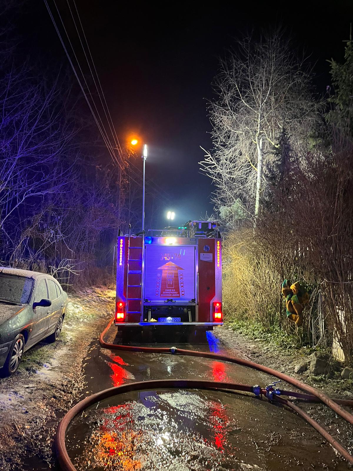 jednorodzinnego. Pożar objął również jedno z pomieszczeń na parterze. Mieszkańcy bez obrażeń, zdążyli samodzielnie opuścić budynek przed przybyciem strażaków.