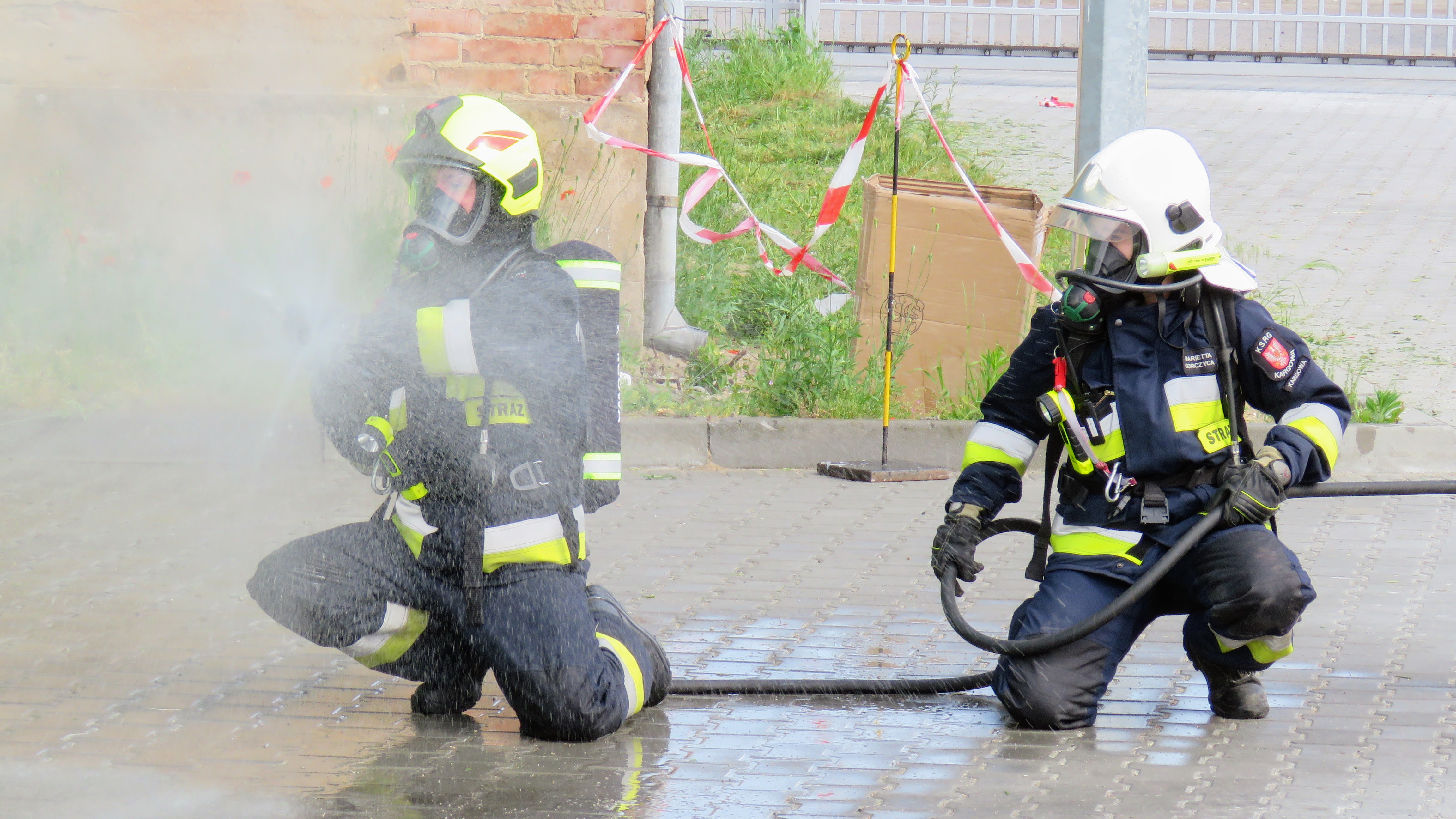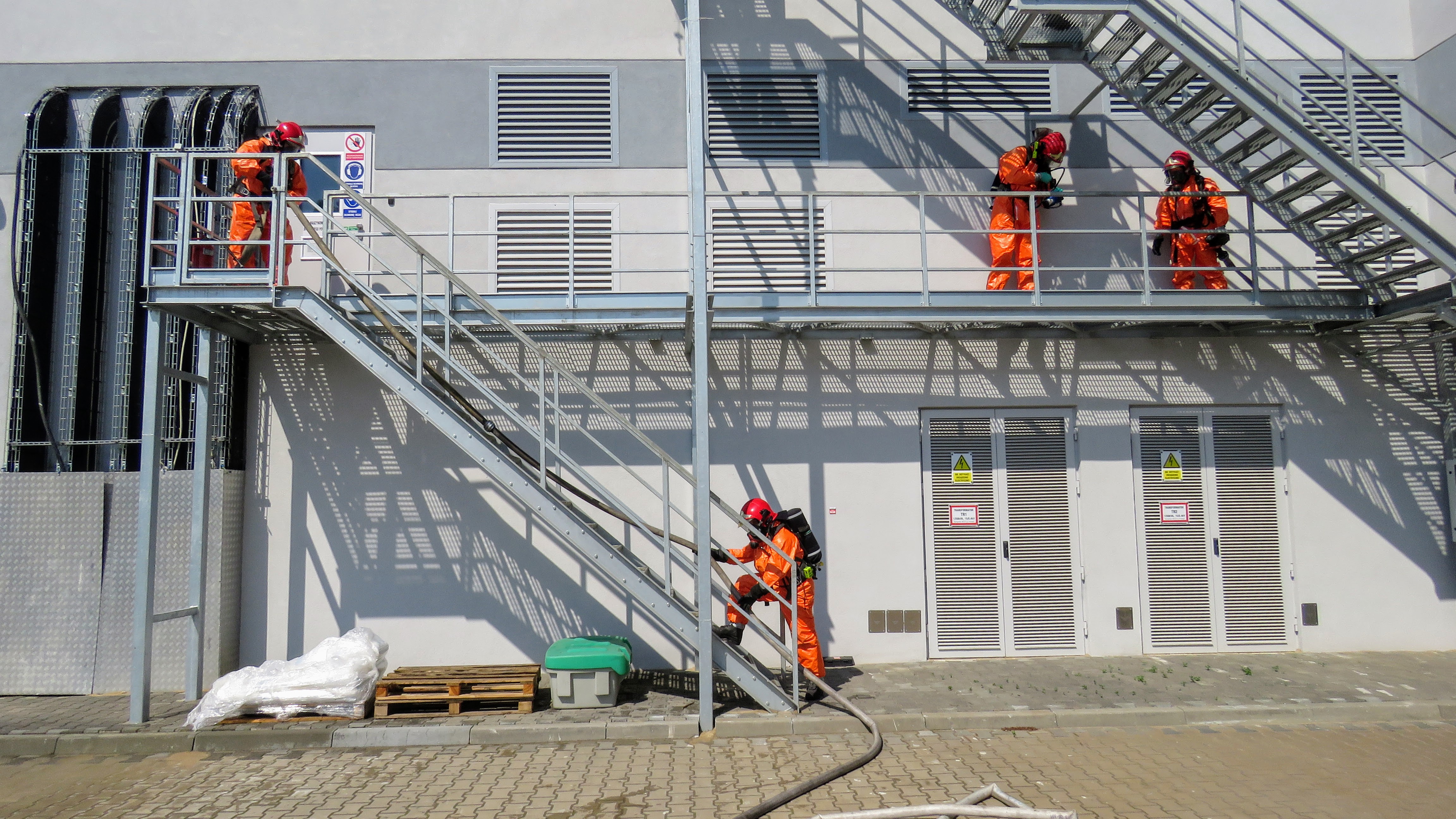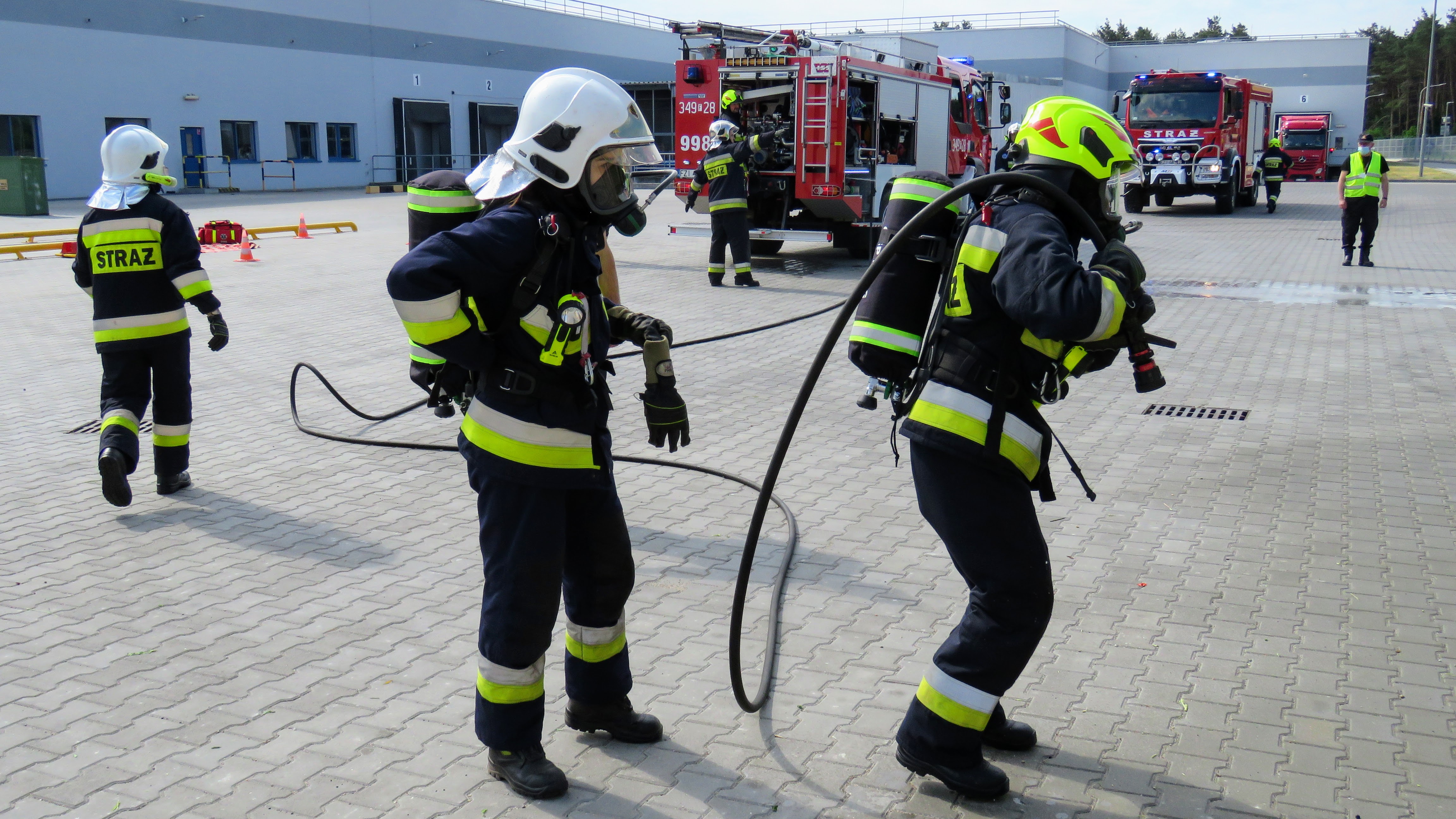 Pierwszy epizod ćwiczeń zakładał uderzenie z niewiadomych przyczyn samochodu ciężarowego w jeden z budynków na terenie firmy Nestle. Kierowca wypadł z pojazdu i został przygnieciony, samochód zapalił się a po chwili pożar rozprzestrzenił się na pobliski budynek. Strażacy podjęli działania gaśnicze oraz użyli poduszek pneumatycznych do uwolnienia osoby poszkodowanej a następnie udzielili KPP.