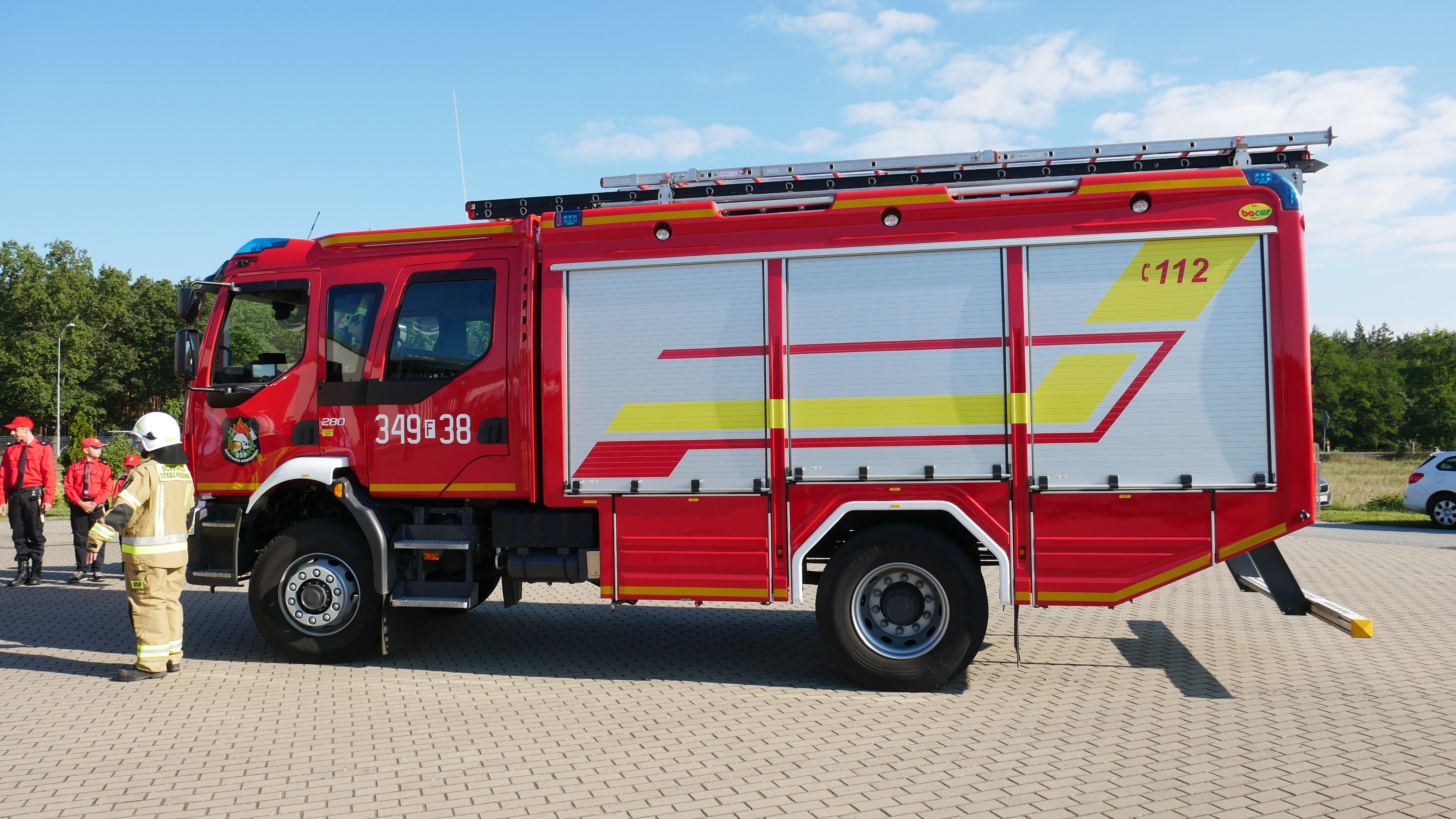 Na placu przed remizą OSP Nowogród Bobrzański, Lubuski Komendant Wojewódzki PSP nadbryg. Patryk Maruszak wraz z Doradcą Wojewody Lubuskiego ds. Współpracy z Jednostkami Samorządu Terytorialnego Województwa Lubuskiego Grzegorzem Maćkowiakiem oraz Burmistrzem Nowogrodu Bobrzańskiego Pawłem Mierzwiakiem, wręczył akt przekazania pojazdu Naczelnikowi OSP Nowogród Bobrzański dh Arturowi Fabisiakowi.