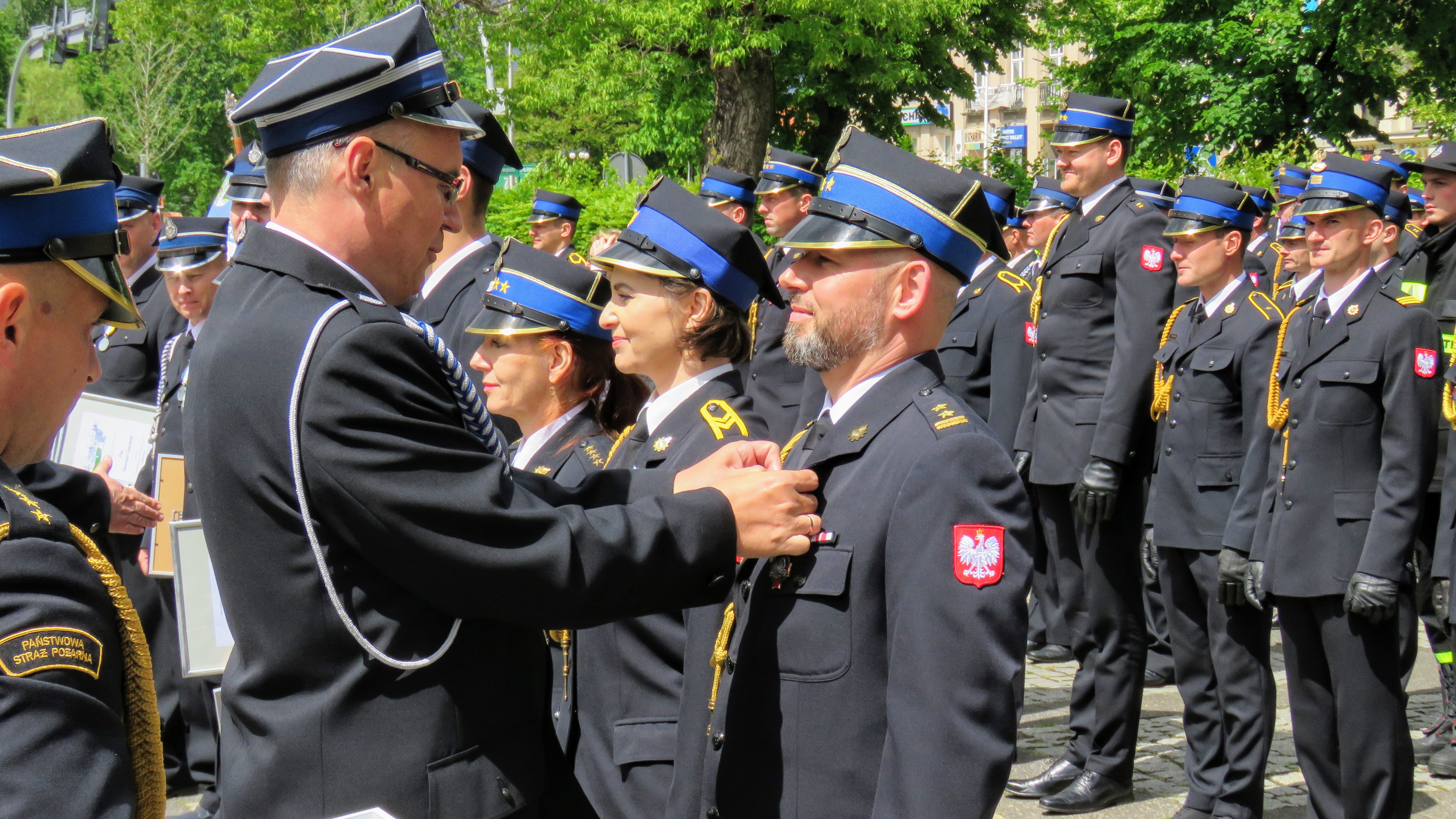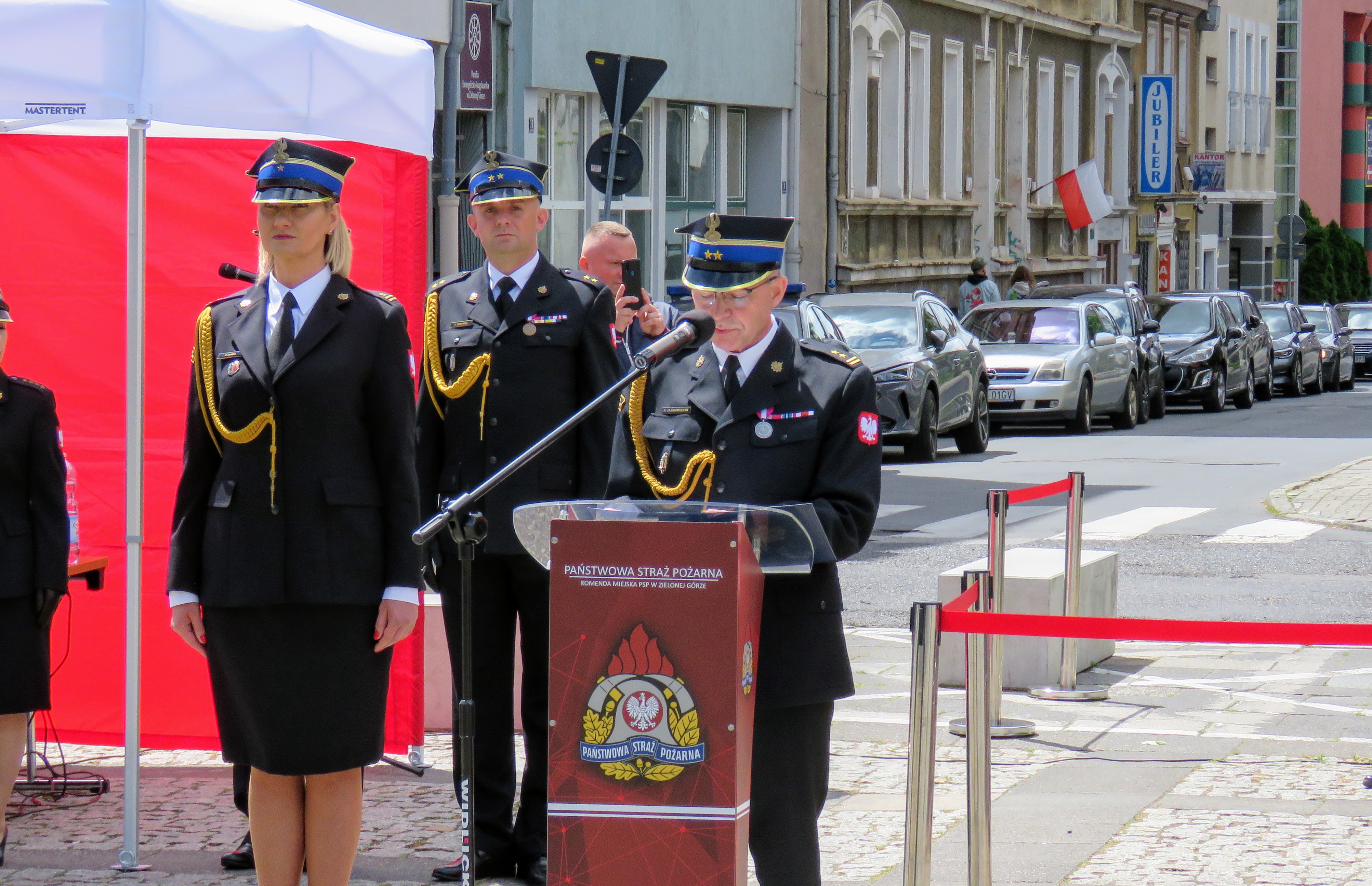 W kolejnym punkcie uroczystości wręczono odznaczenia i medale, akty nadania wyższych stopni służbowych dla funkcjonariuszy Komendy Miejskiej PSP w Zielonej Górze oraz druhów OSP.