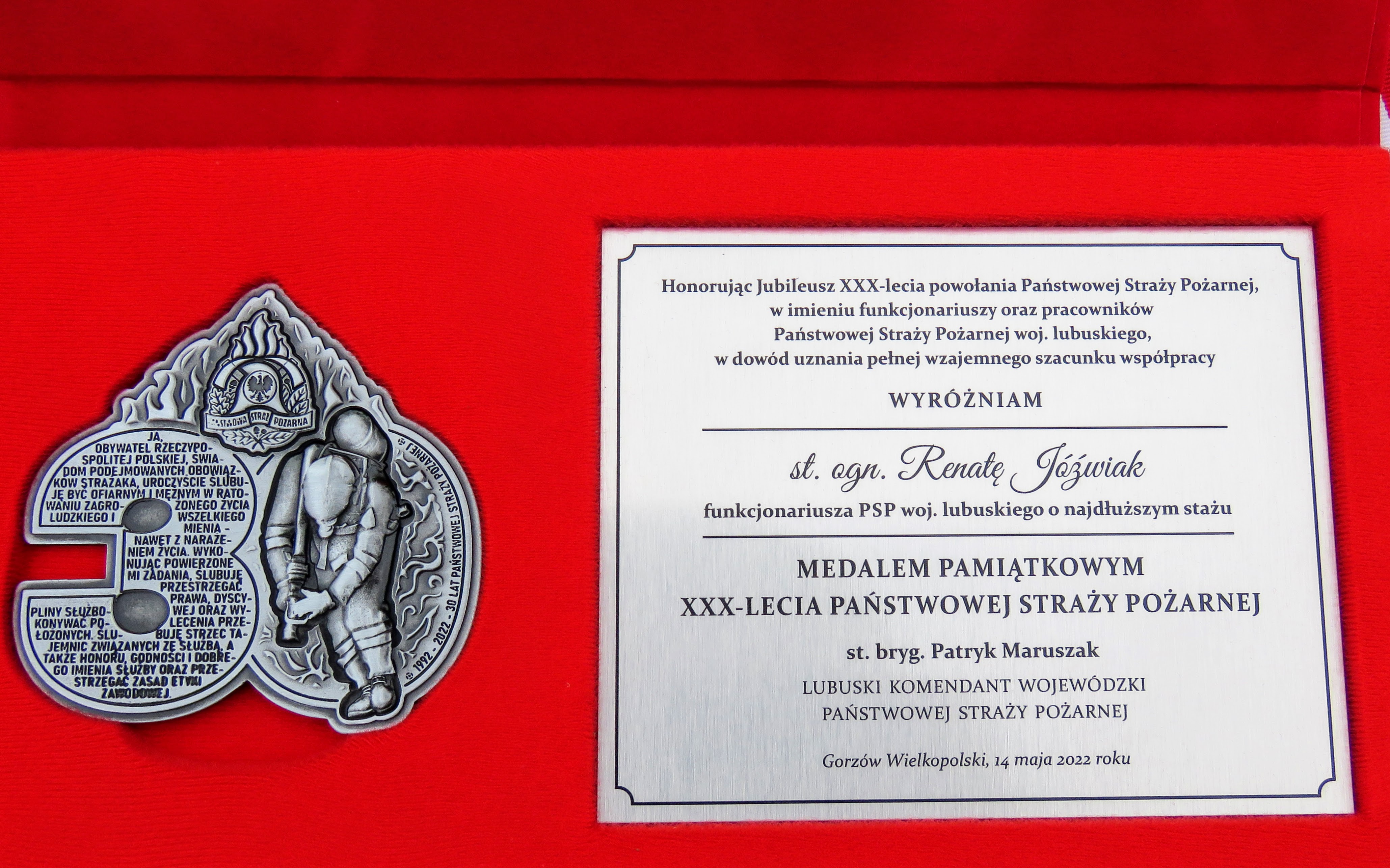 W związku z przypadającym w tym roku jubileuszem 30-lecia powołania Państwowej Straży Pożarnej, Lubuski Komendant Wojewódzki PSP przyznał 30 symbolicznych pamiątkowych medali osobom i instytucjom, które w szczególny sposób wyróżniły się współpracą na rzecz rozwoju Państwowej Straży Pożarnej.