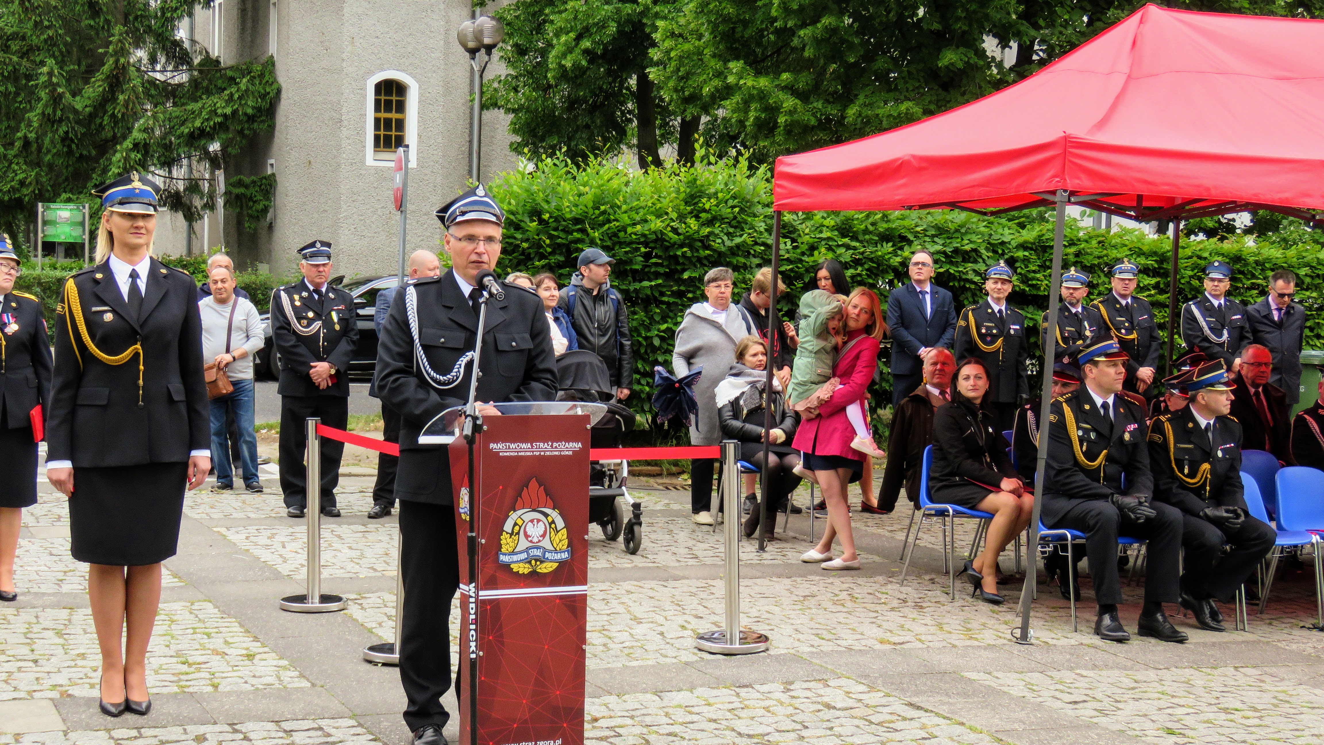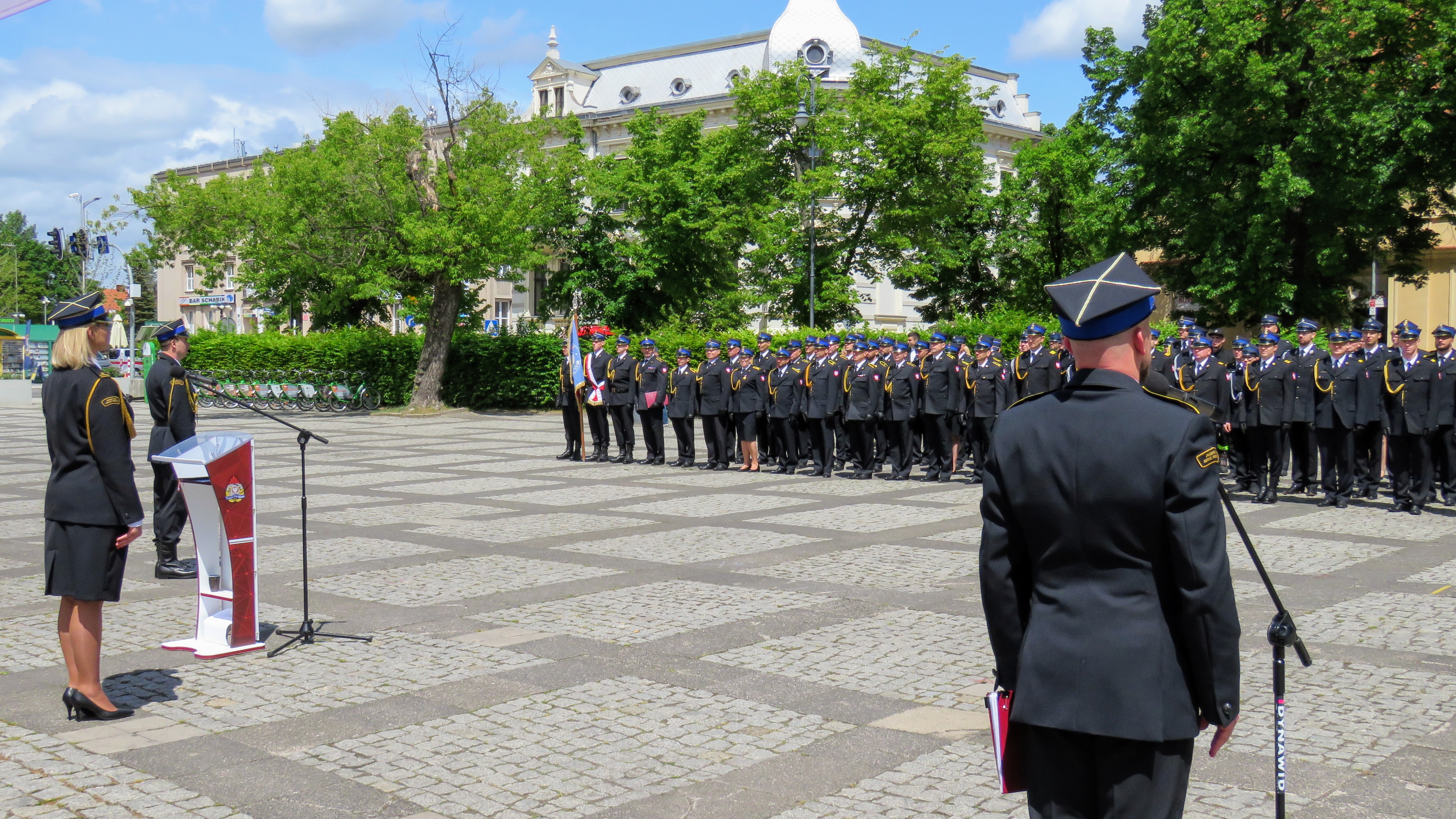 Apel rozpoczął się od złożenia meldunku Lubuskiemu Komendantowi Wojewódzkiemu st. bryg. Patrykowi Maruszakowi przez dowódcę uroczystości kpt. Łukasza Łyko. Następnie przy dźwiękach hymnu państwowego dokonano podniesienia flagi państwowej.