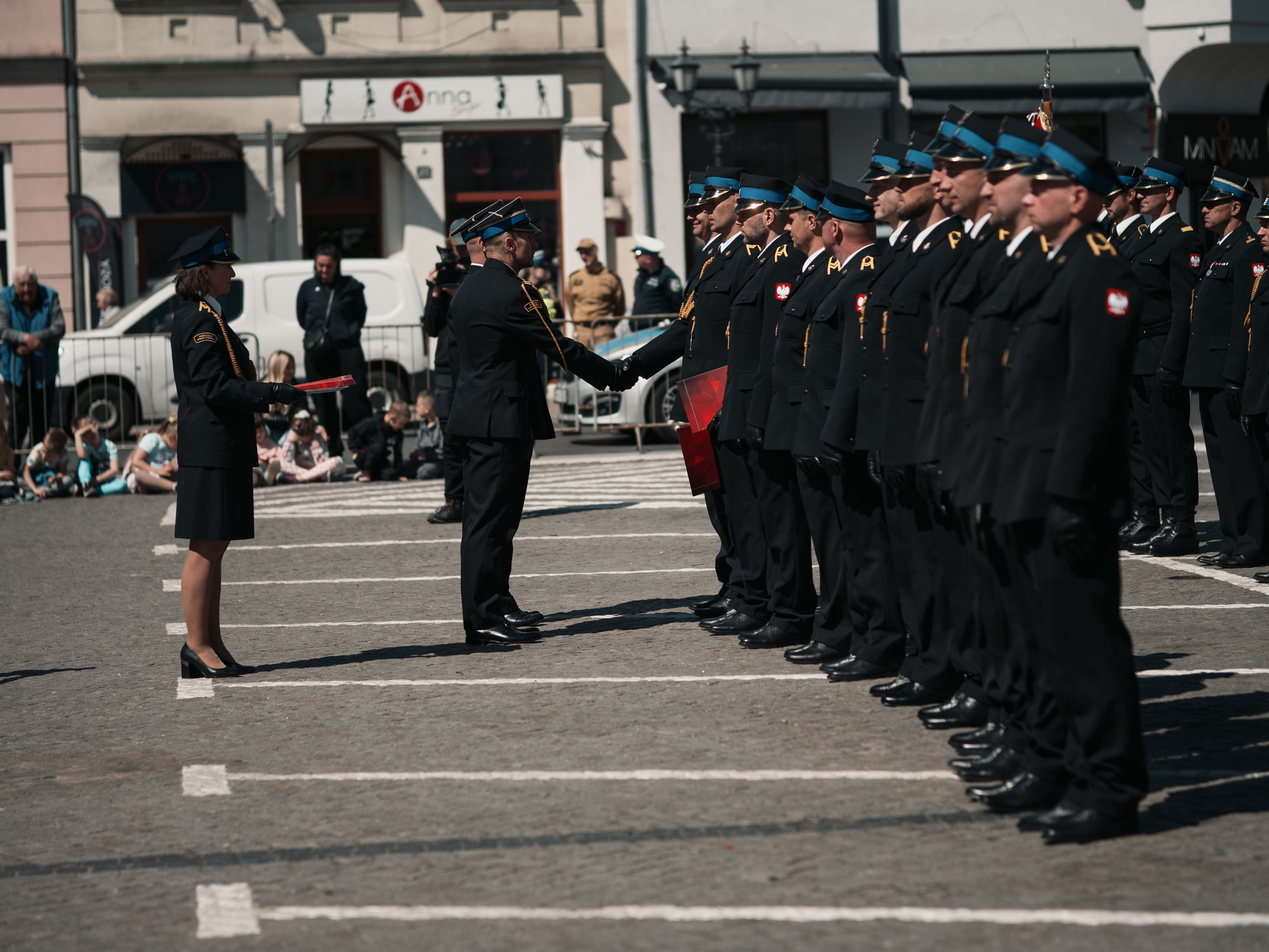 Jednym z najważniejszych momentów uroczystości było wręczenie awansów na wyższe stopnie służbowe oraz odznaczeń i wyróżnień. Przyznano m.in. odznaki „Zasłużony dla Ochrony Przeciwpożarowej”, medale „Za Zasługi dla Pożarnictwa”, a także odznaki Świętego Floriana. Szczególne emocje towarzyszyły również wręczeniu pamiątkowych dyplomów z okazji 30-lecia Krajowego Systemu Ratowniczo-Gaśniczego – wyróżnienia te trafiły do jednostek PSP, OSP oraz Wojskowej Straży Pożarnej, doceniając ich wieloletnią służbę i wkład w system ratowniczy.