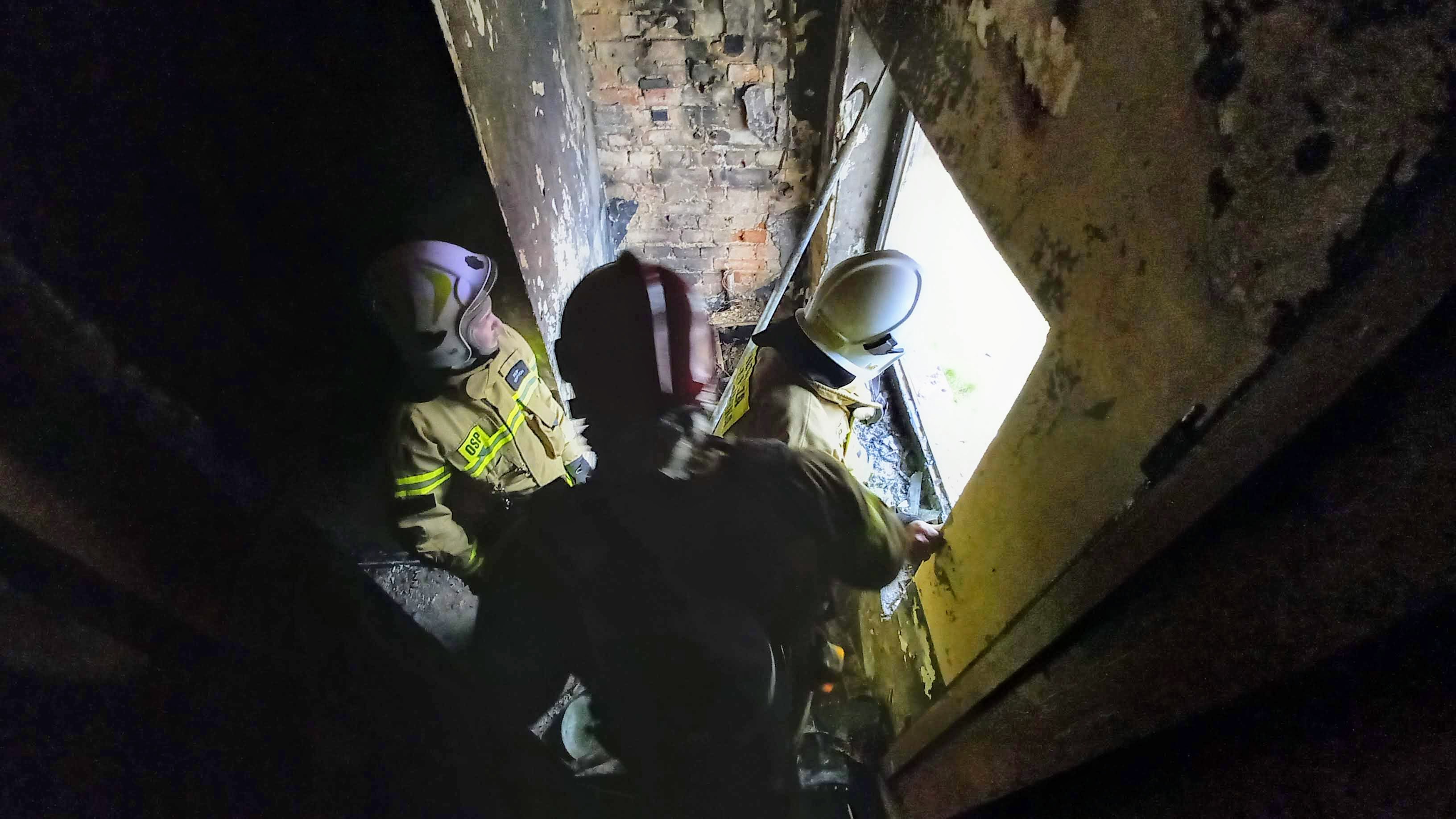 Przybyli na miejsce zdarzenia strażacy, podjęli walkę z rozwiniętym już pożarem dwóch kondygnacji budynku mieszkalnego. Po niespełna 30 minutach udało się ugasić ogień, zapobiegając przedostaniu się płomieni na konstrukcję dachu oraz pobliskie zabudowania.