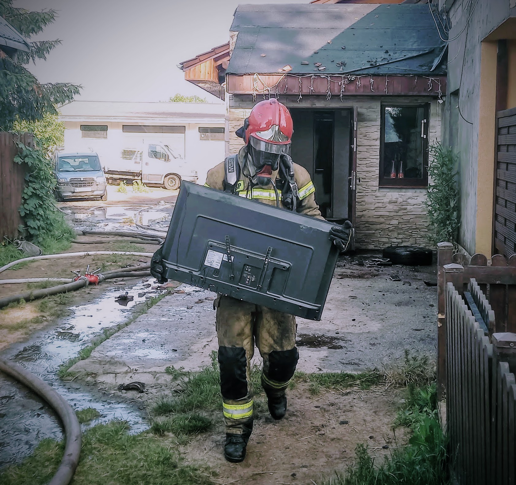 Nad ranem, jeden z mieszkańców zauważył ogień wydobywający się z kotłowni oraz budynku gospodarczego, przyległego do wielopoziomowego domu.