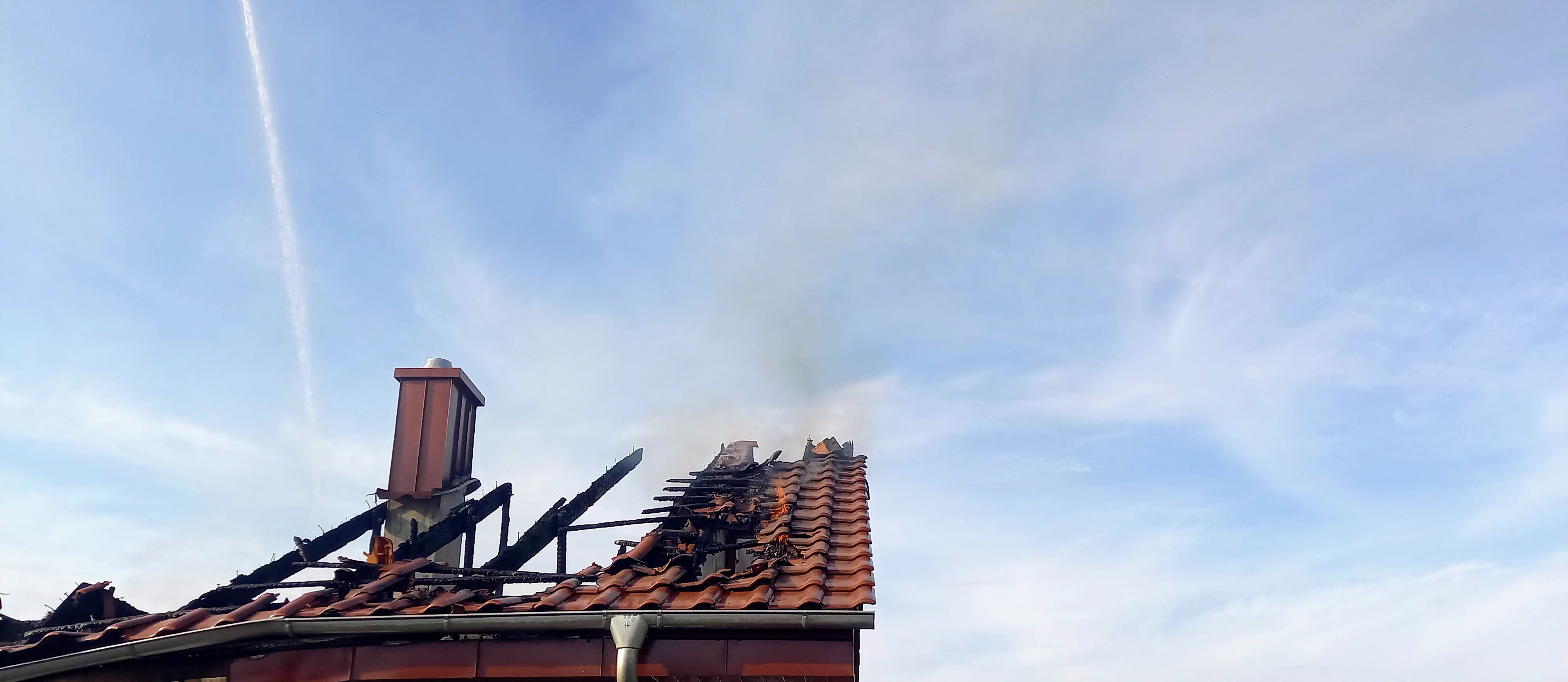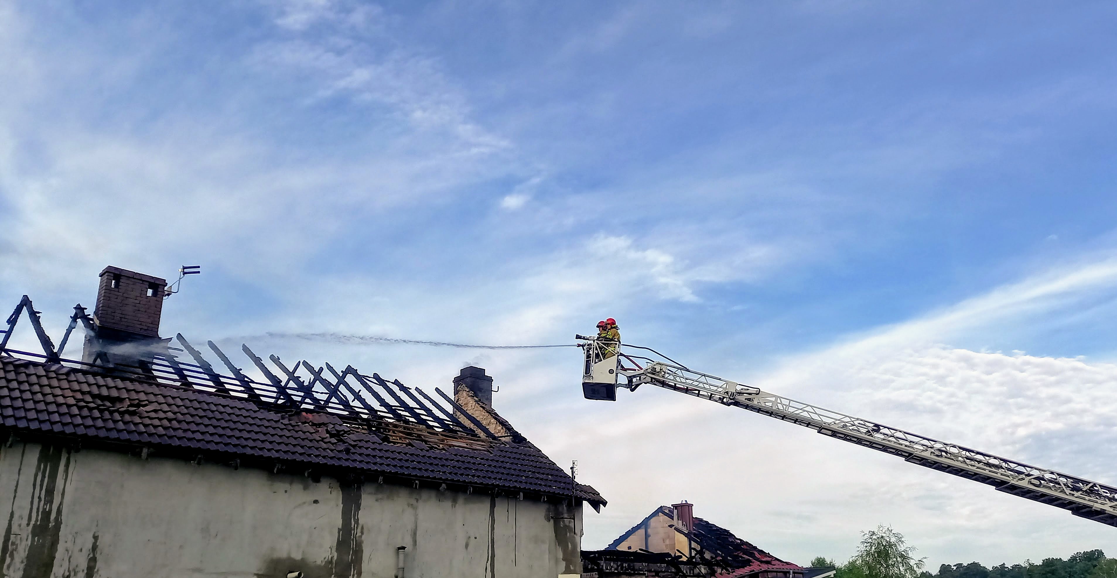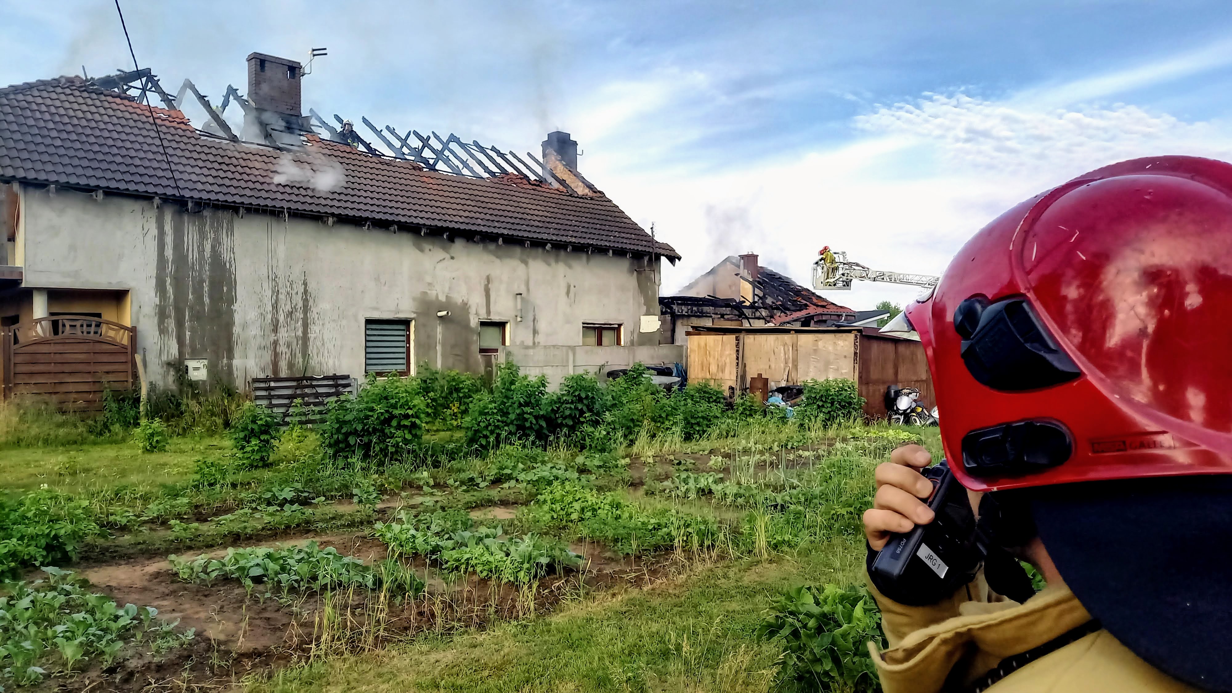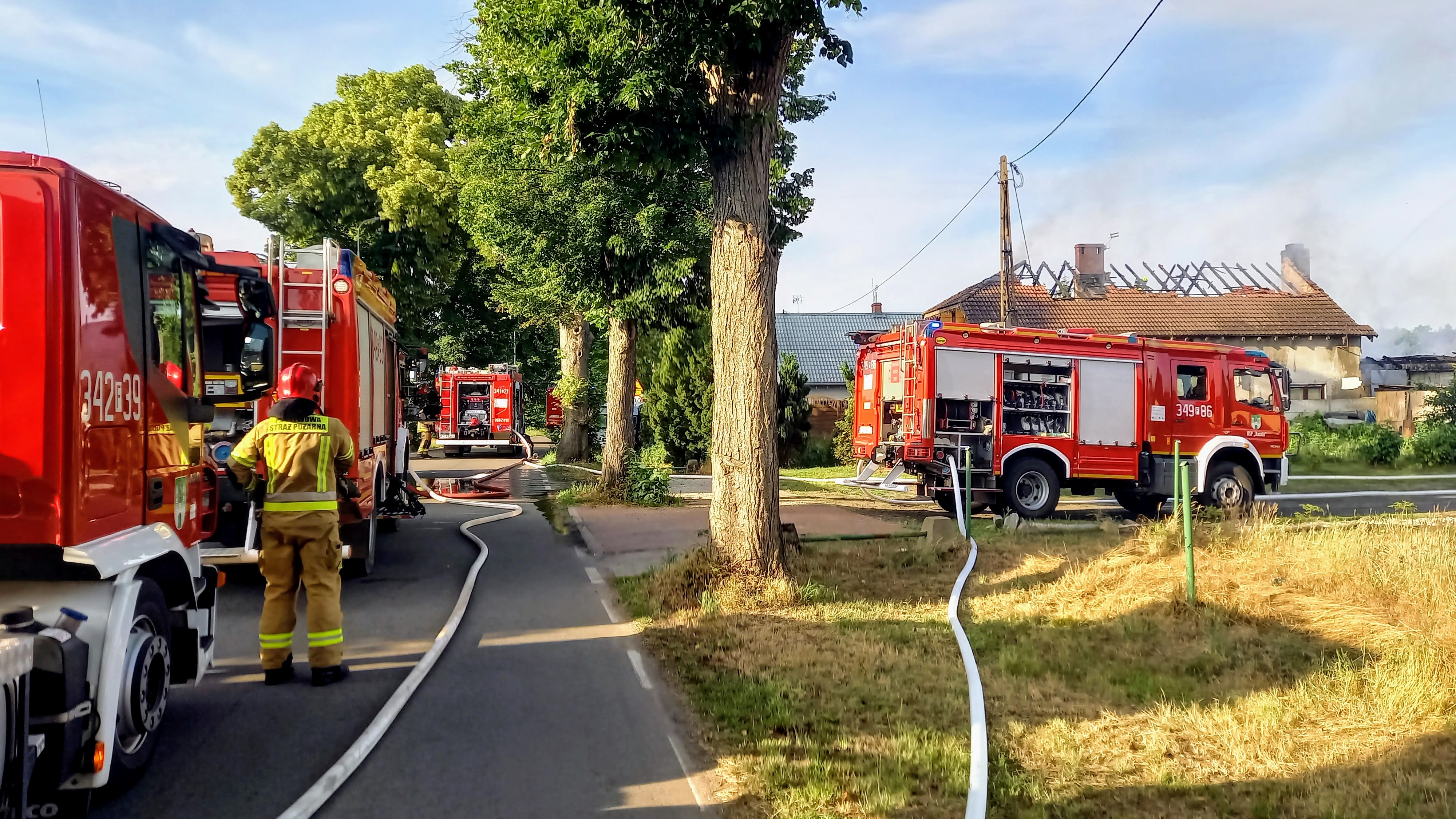 Pierwsi strażacy przybyli na miejsce zastali w pełni rozwinięty pożar którym objęty był budynek gospodarczy oraz zadaszenie domu mieszkalnego.