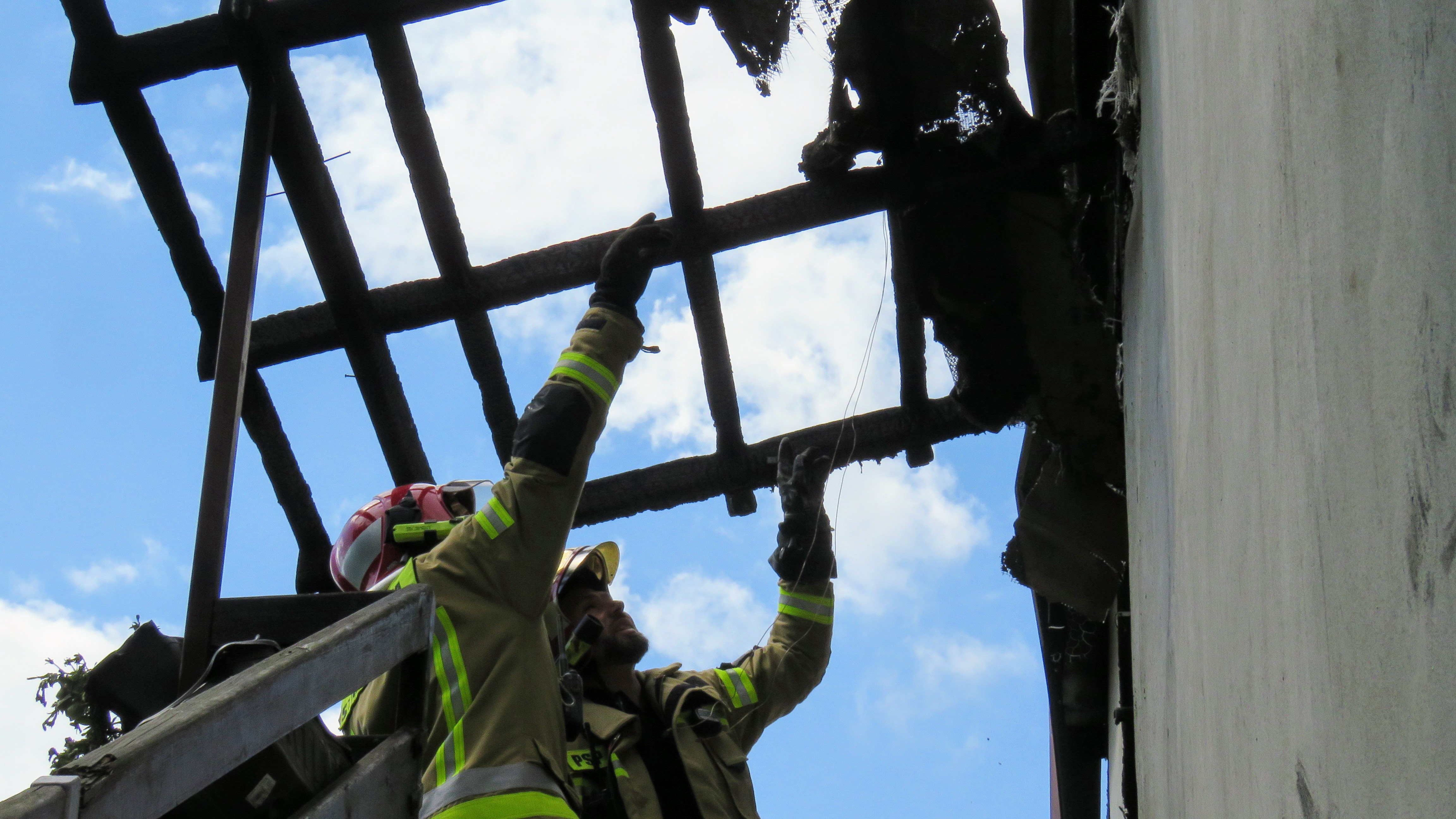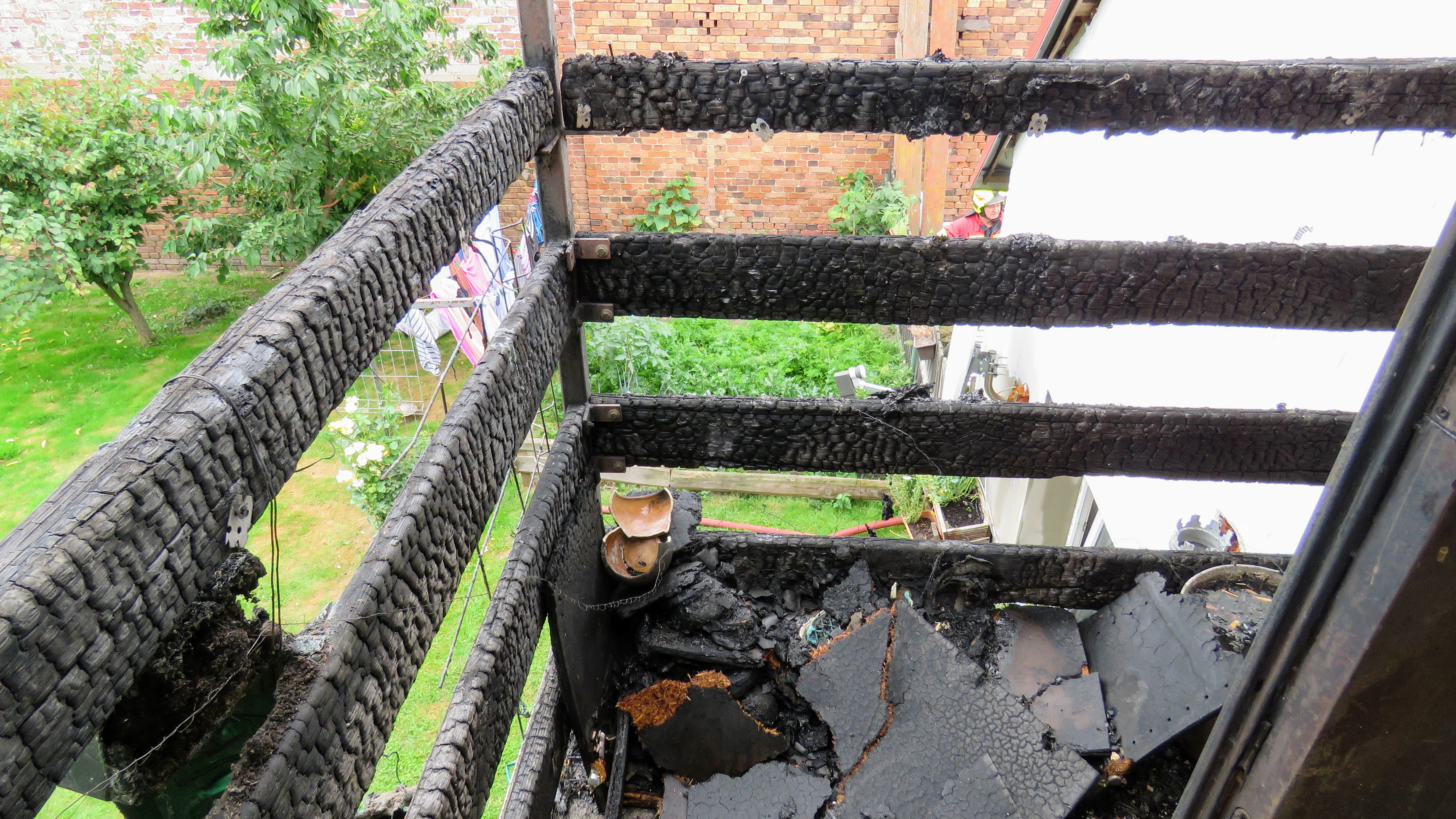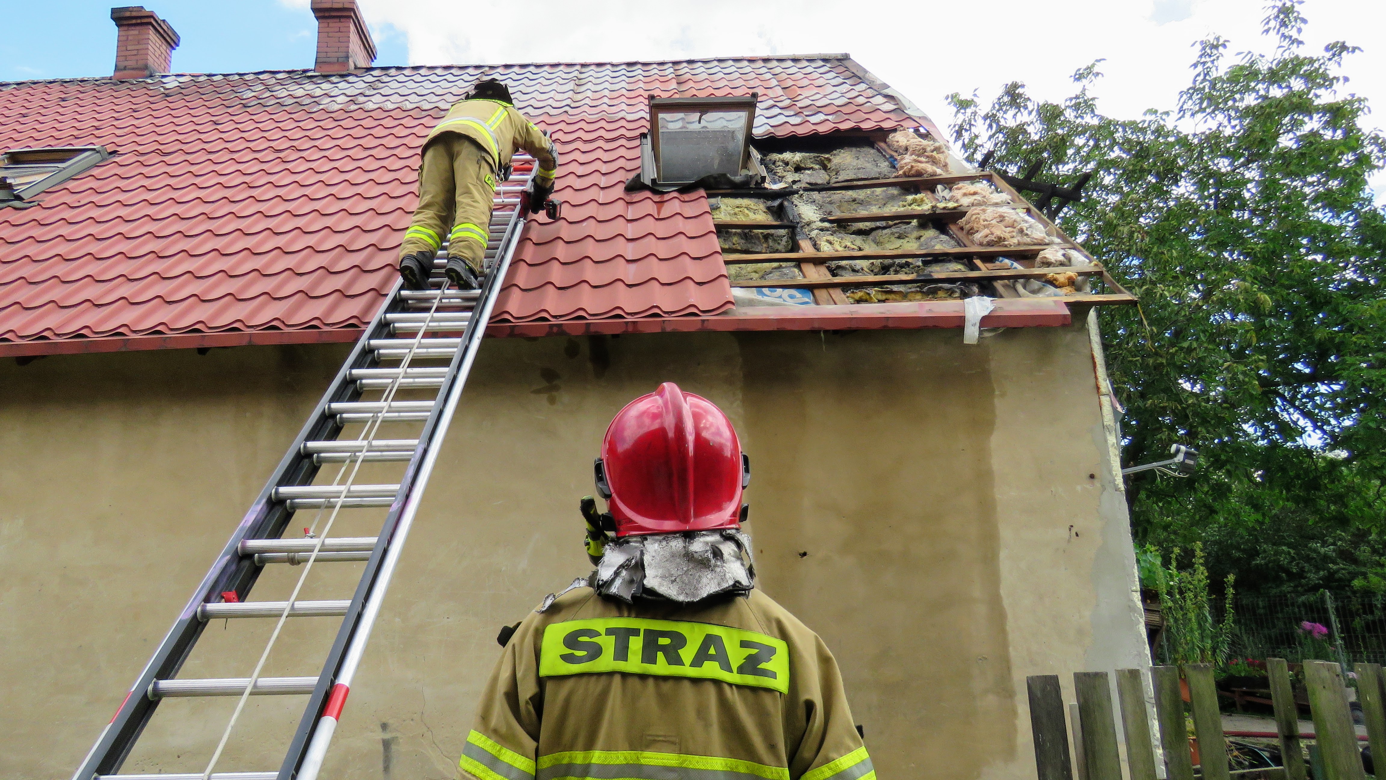 Ogniem objęty był dach jednego z domów w zabudowie bliźniaczej. Istniało niebezpieczeństwo przedostania się pożaru na budynek obok, jednak strażacy szybko ugasili ogień który strawił poddasze nieużytkowe oraz werandę wejściową na piętrze płonącego budynku. Znacznym uszkodzeniom uległa również konstrukcja dachu.