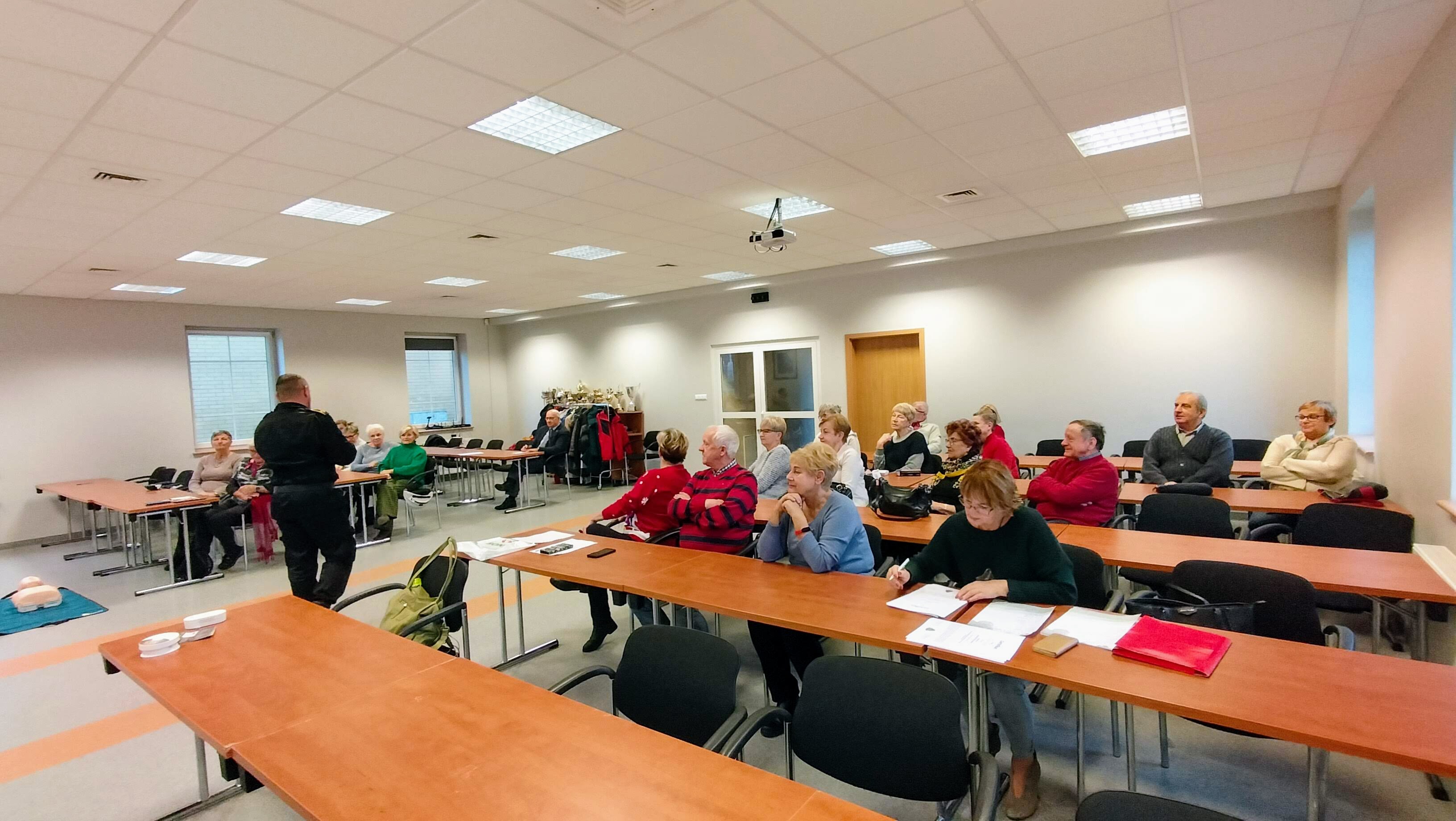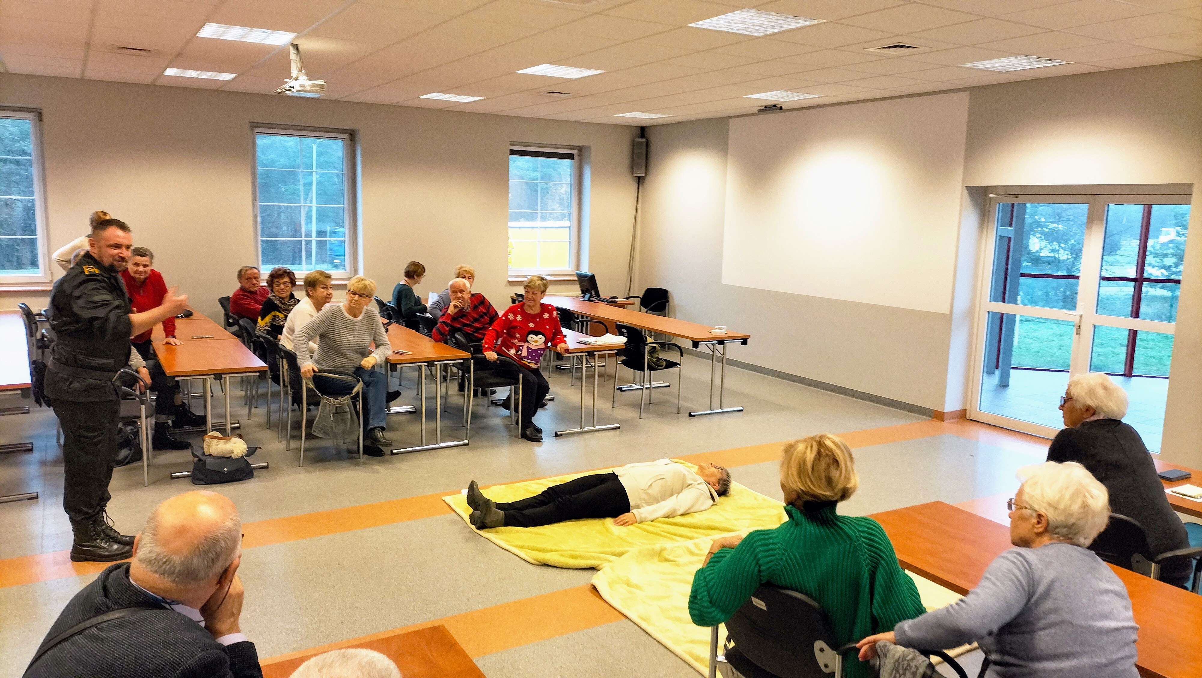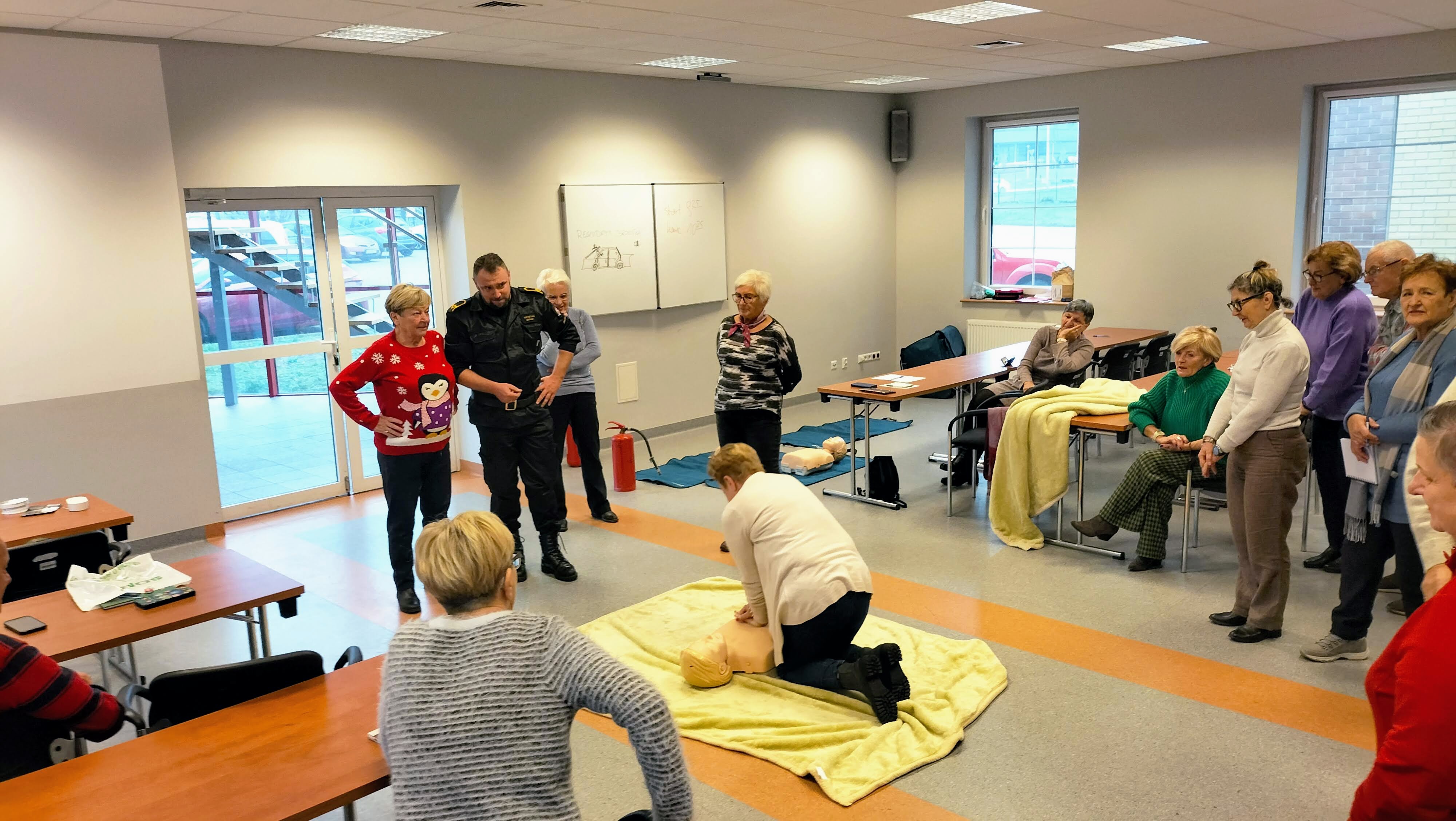 Podczas zajęć słuchacze dowiedzieli się czym są czujniki tlenku węgla, dymu i gazu, jak działają i w jaki sposób z nich korzystać. Prowadzący omówili bezpieczne zachowanie podczas pożaru mieszkania oraz działania zapobiegawcze. Opisane zostały niebezpieczeństwa i sposoby postępowania podczas użytkowania urządzeń elektrycznych. Seniorzy dowiedzieli się również jak prawidłowo przygotować się do sezonu grzewczego oraz jak dbać o systemy grzewcze. Nie zabrakło również zajęć praktycznych z zakresu pierwszej pomocy przedmedycznej i umiejętności stosowania półautomatycznego defibrylatora zewnętrznego (tzw. AED).