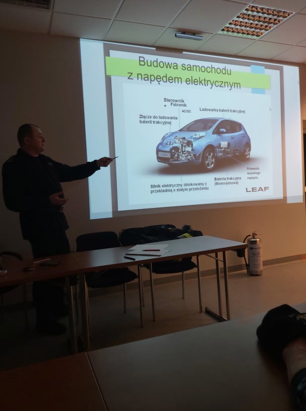 W ubiegłym tygodniu zakończony został trwający dwa miesiące cykl szkoleń doskonalących o tematyce zagrożeń występujących podczas działań ratowniczo-gaśniczych związanych z prądem elektrycznym w obrębie fotowoltaiki i samochodów elektrycznych.