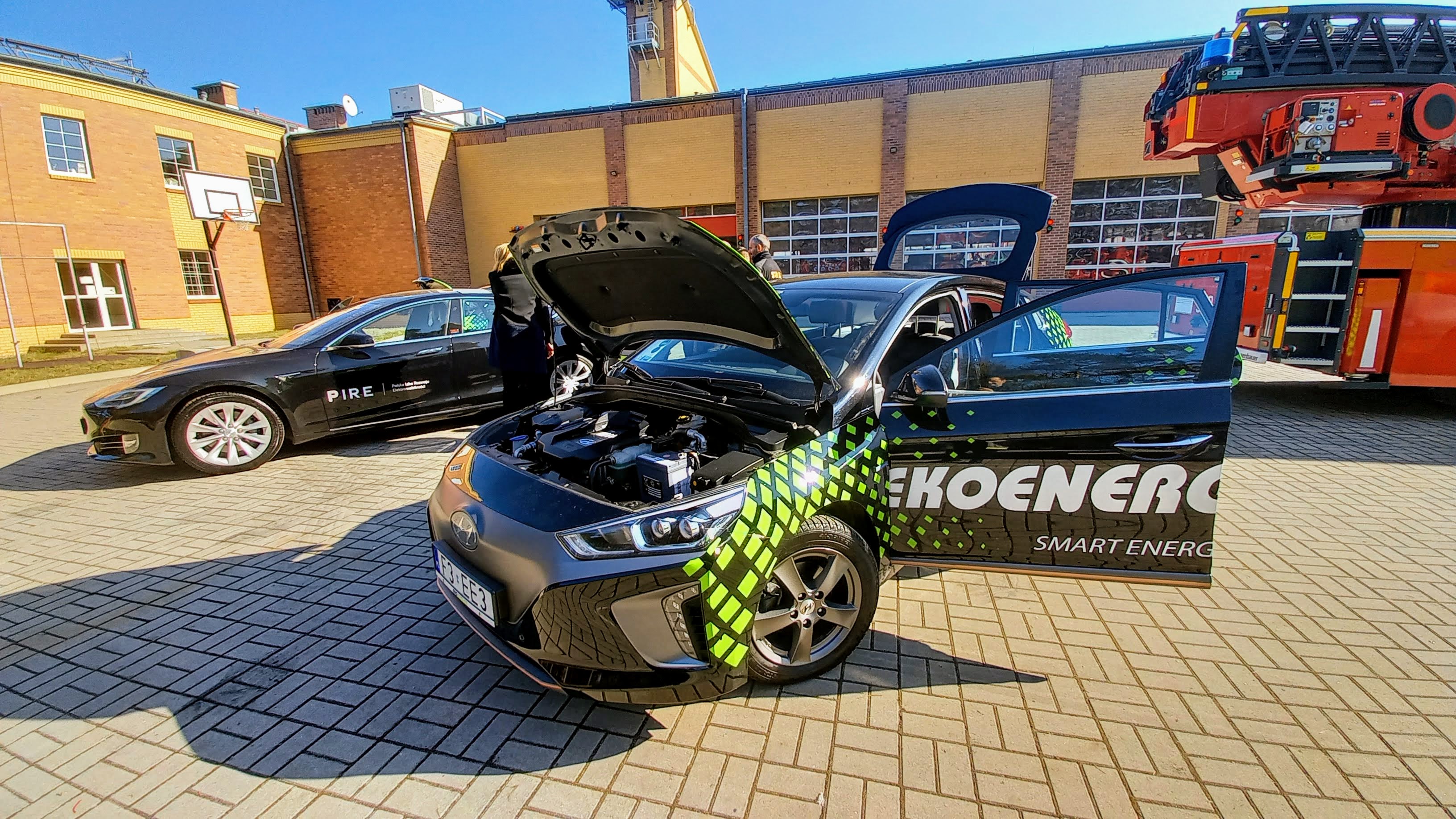 Dzięki uprzejmości przedstawicieli firmy PIRE (Polska Izba Rozwoju Elektromobilności), w ramach seminarium przedstawiona została informacja dotycząca specyfiki pojazdów o napędzie elektrycznym. Zaprezentowano najbardziej popularne, będące już w eksploatacji, modele pojazdów elektrycznych. Szczególną uwagę zwrócono na zastosowane rozwiązania techniczne oraz względy bezpieczeństwa dotyczące sytuacji awaryjnych (zasady dezaktywacji układów wysokonapięciowych, postępowanie w trakcie pożaru lub kolizji drogowej). Strażacy mieli także możliwość sprawdzenia omawianych rozwiązań na przykładzie trzech modeli pojazdów elektrycznych: BMW i3, Hyundai Ioniq, Tesla Model S.