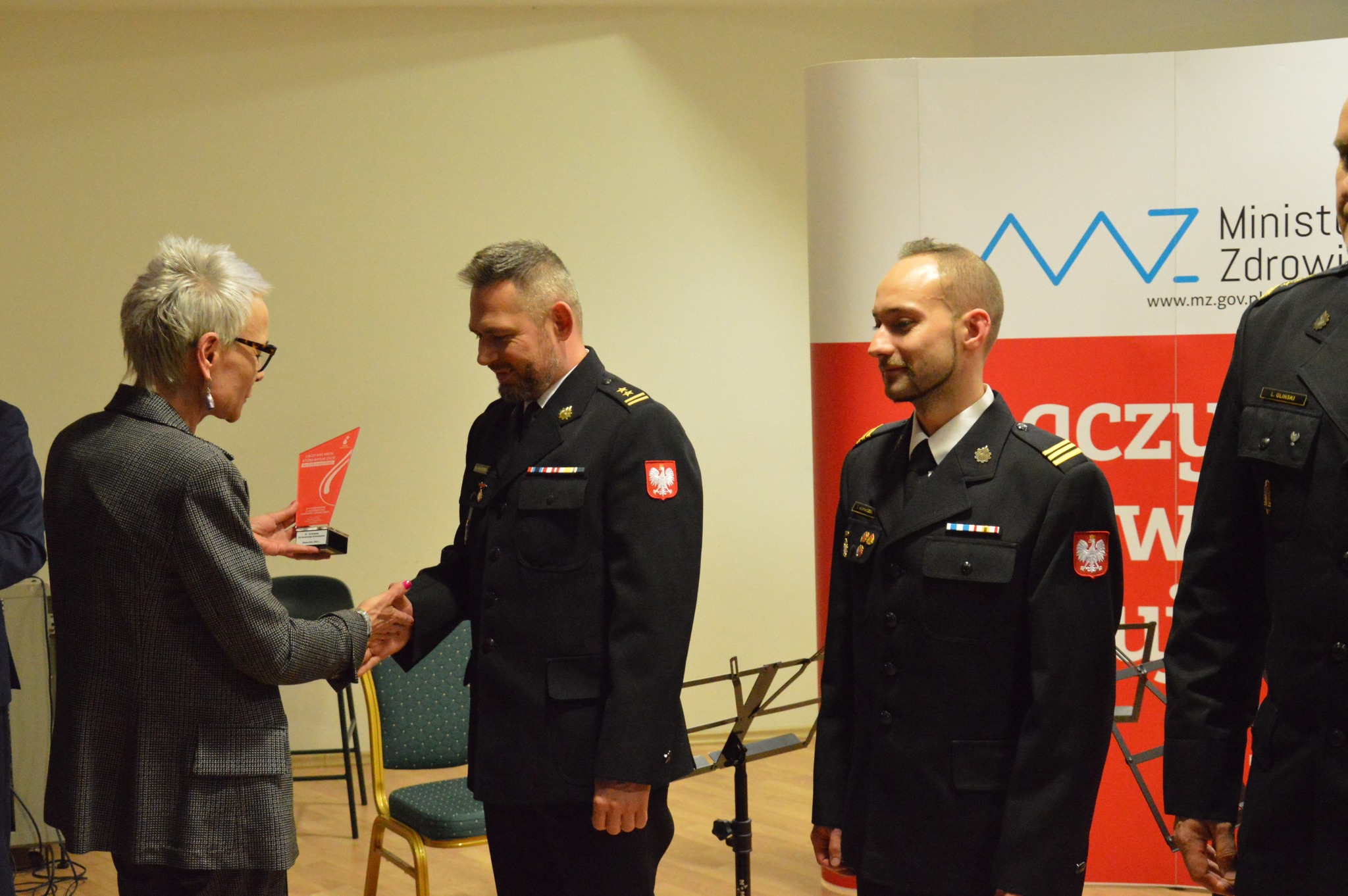 Podczas uroczystości bryg. Rafał Konieczny w imieniu zielonogórskich strażaków odebrał z rąk Dyrektora RCKiK w Zielonej Górze Moniki Fabisz – Kołodzińskiej podziękowania i statuetkę za zaangażowanie w całokształt pracy włożonej w ratowanie ludzkiego życia, a w szczególności za bezcenny dar - oddaną krew.