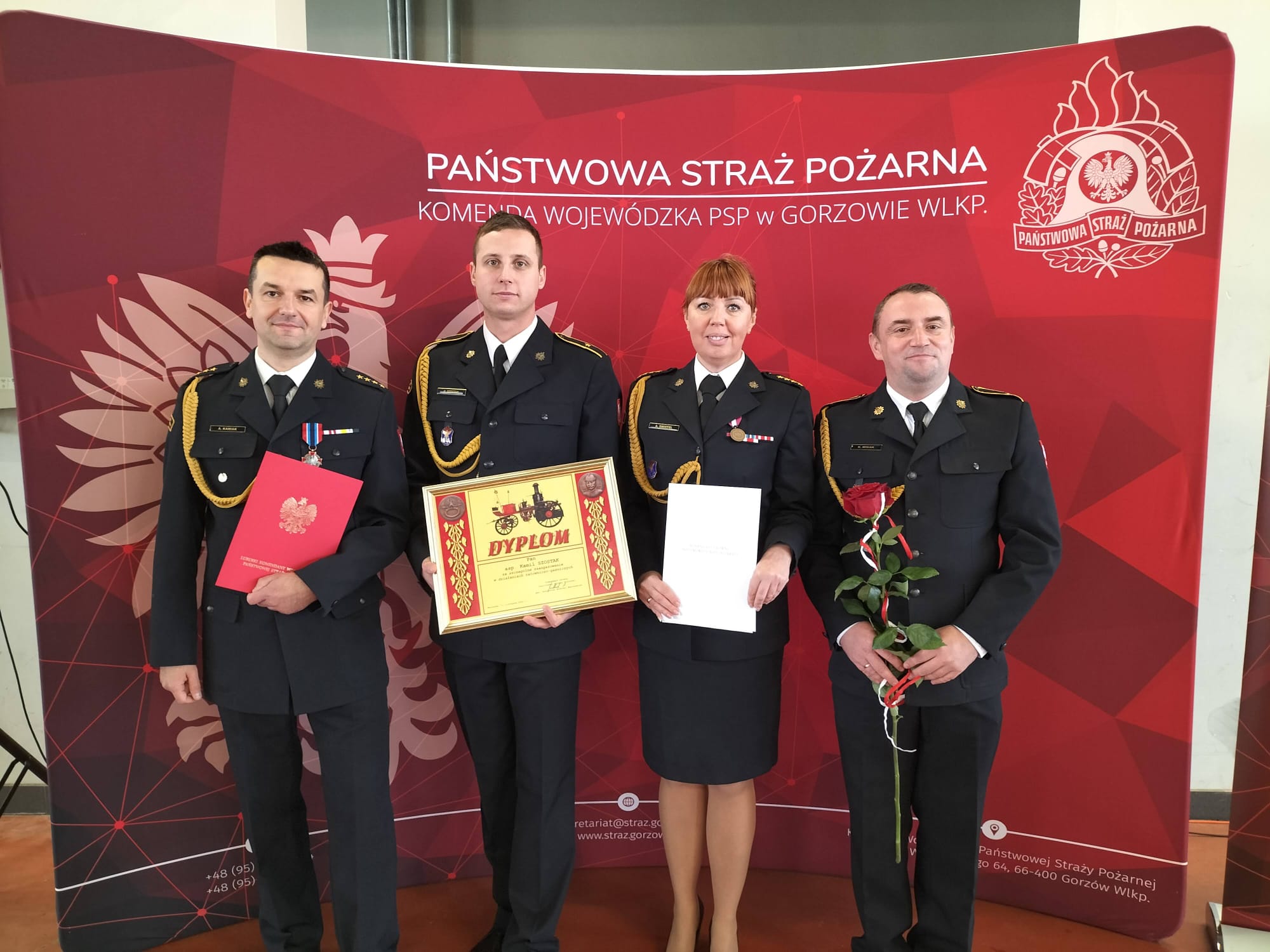 Przedstawiciele Komendy Miejskiej PSP w Zielonej Górze odebrali podziękowania za zaangażowanie w prace na rzecz edukacji dzieci i dorosłych w zakresie bezpieczeństwa, a mł. asp. Krystian Misiak oraz mł. asp. Maciej Solarek odebrali pamiątkowe dyplomy od Komendanta Głównego PSP gen. brygadiera Andrzeja Bartkowiaka za wzorową postawę i osiągnięcia w realizacji zadań służbowych.