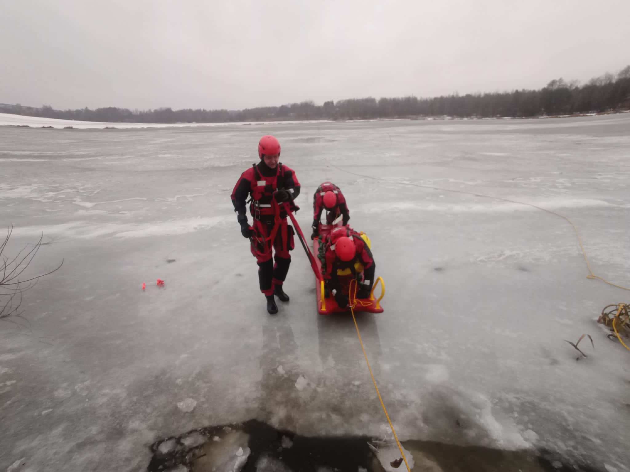 W dniach 25 - 28.01.2022 roku odbyły się coroczne ćwiczenia z zakresu ratownictwa lodowego. W tym roku ćwiczyliśmy na Stawie Papierok przy ulicy Kłokocińskiej. Każdego dnia założeniem było ratowanie osoby pod którą załamał się lód. Strażacy ratownicy z wykorzystaniem deski lodowej musieli podjąć osobę uwięzioną w wodzie oddaloną o kilkanaście metrów od brzegu.