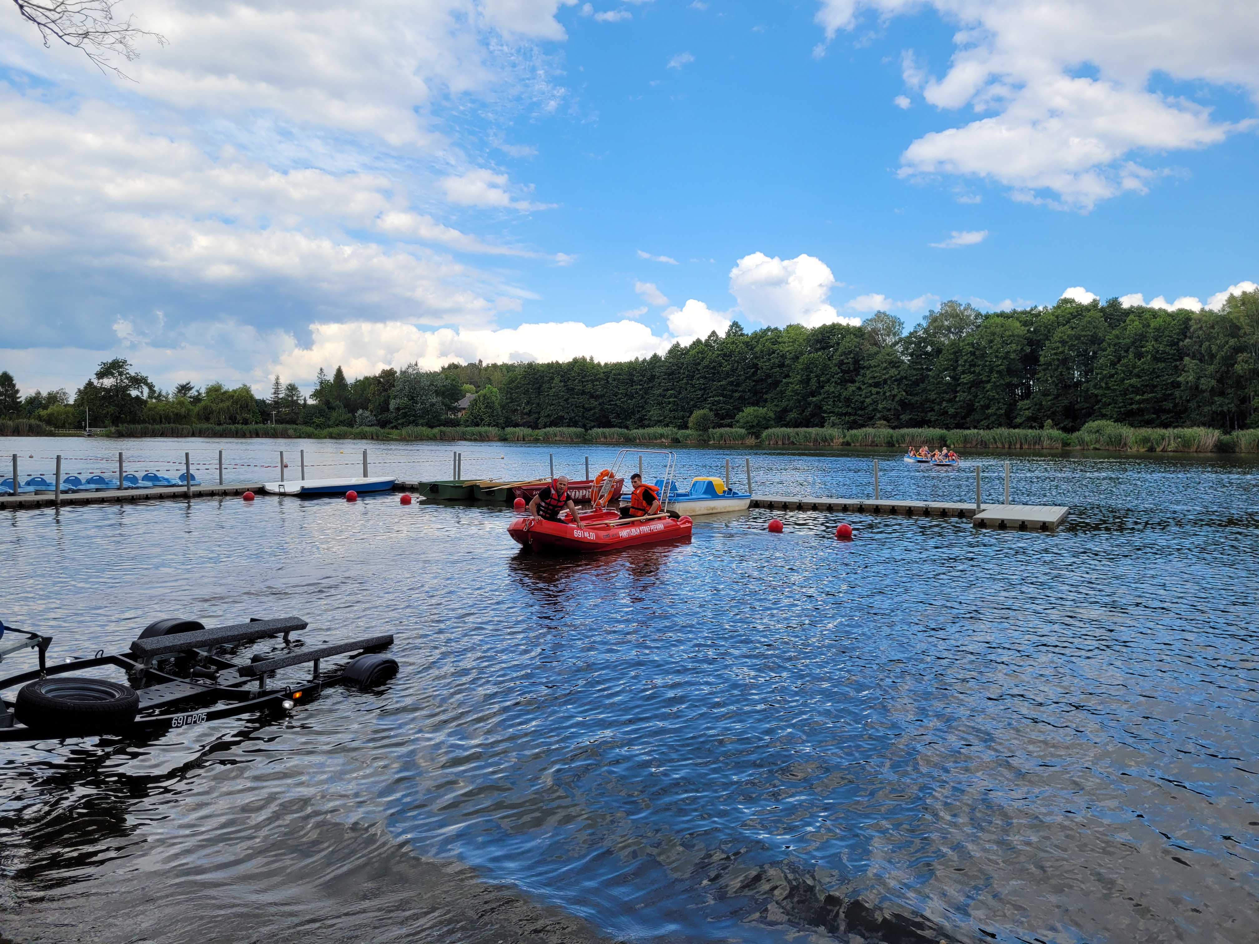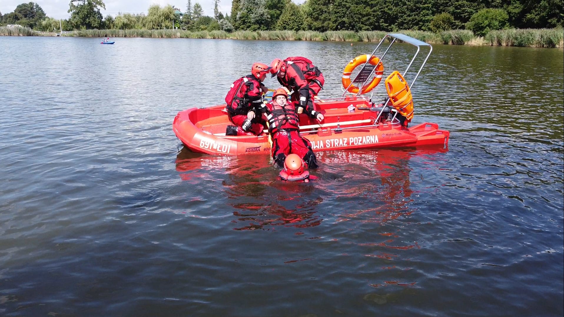 W dniach 11 i 12.08.2022 r. żorscy strażacy na stawie Śmieszek ćwiczyli zagadnienia z zakresu ratownictwa wodego. Ćwiczenia obejmowały doskonalenie techniki operowania łodzią motorową, podejmowanie osoby tonącej na łódkę, udzielenie jej kwalifikowanej pierwszej pomocy. Strażacy ćwiczyli także techniki z wykorzystaniem innego będącego na wyposażeniu jednostki sprzętu do ratownictwa wodnego.