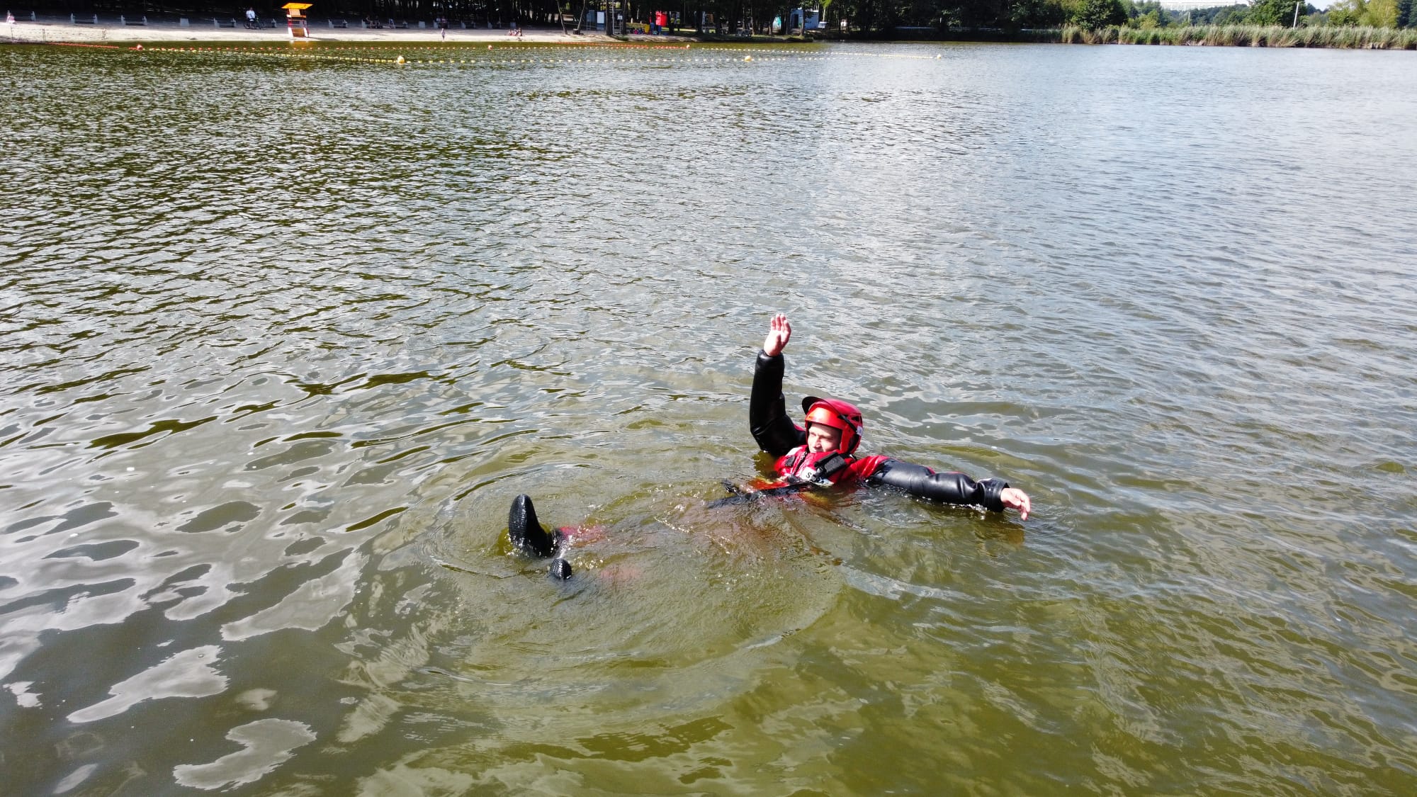 Ćwiczenia z ratownictwa wodnego na stawie Śmieszek