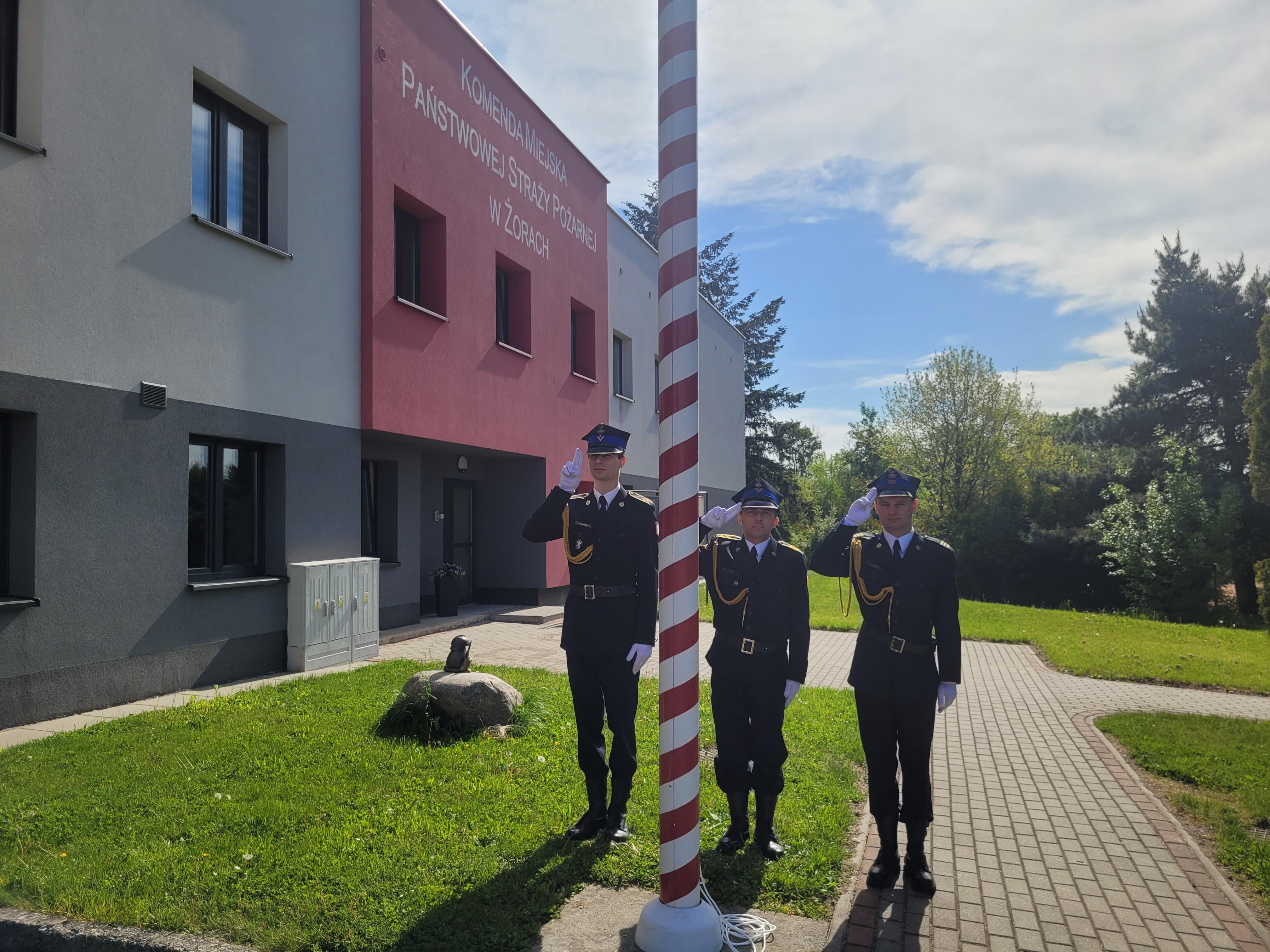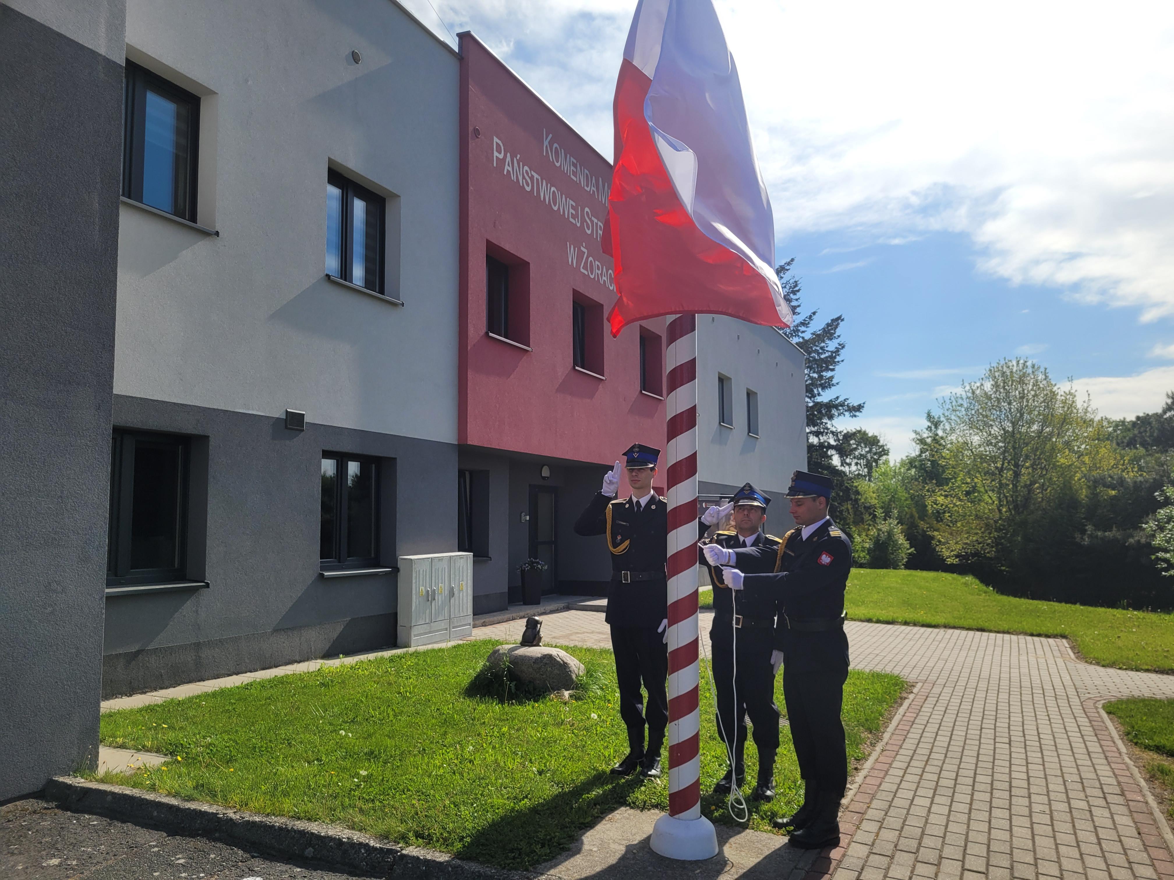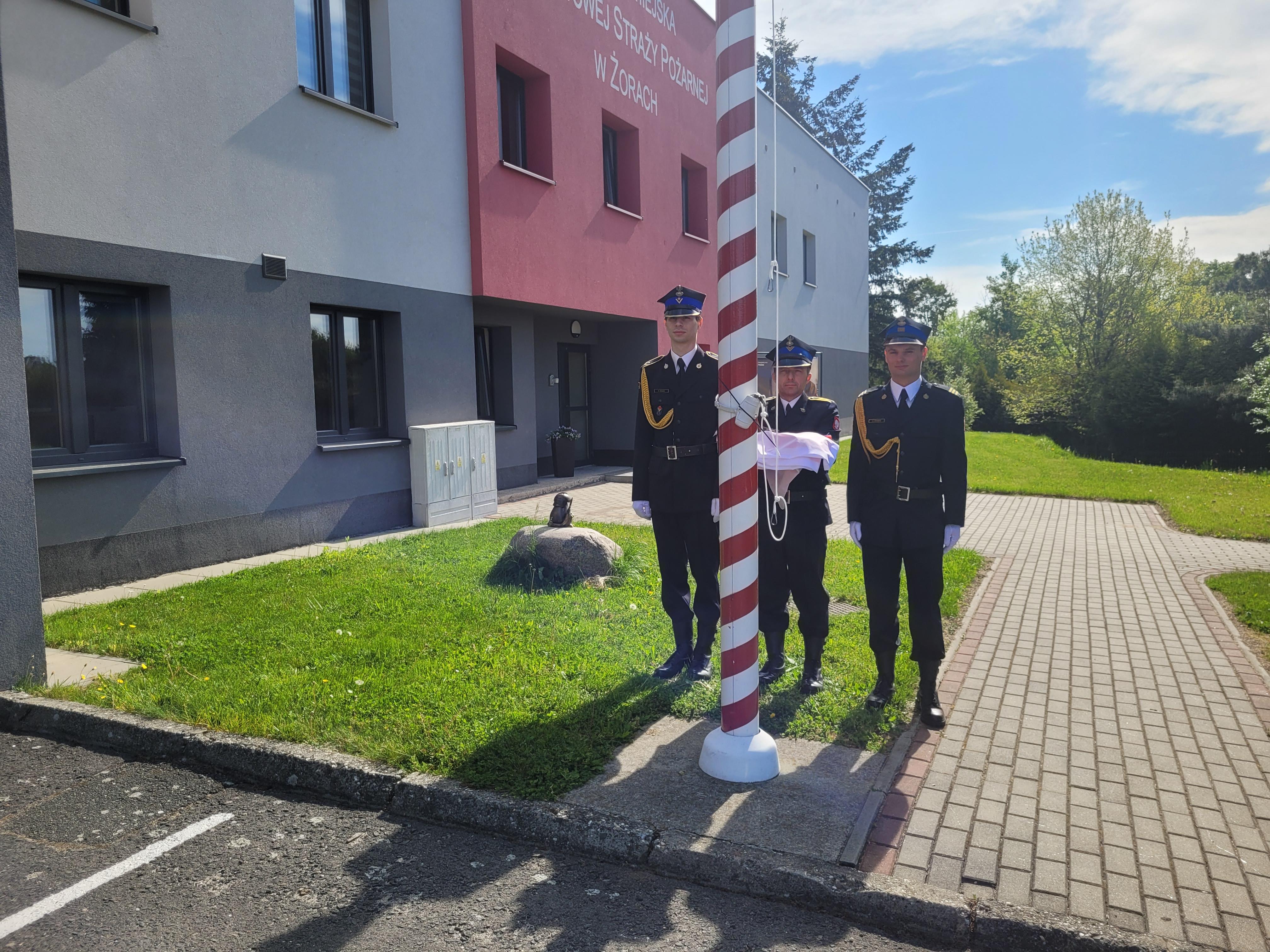W dniu 2 maja 2024 roku o godzinie 8.00 w Komendzie Miejskiej PSP w Żorach, miała miejsce uroczysta zmiana służby, której elementem było podniesienie flagi państwowej z okazji Dnia Flagi Rzeczpospolitej Polskiej.
