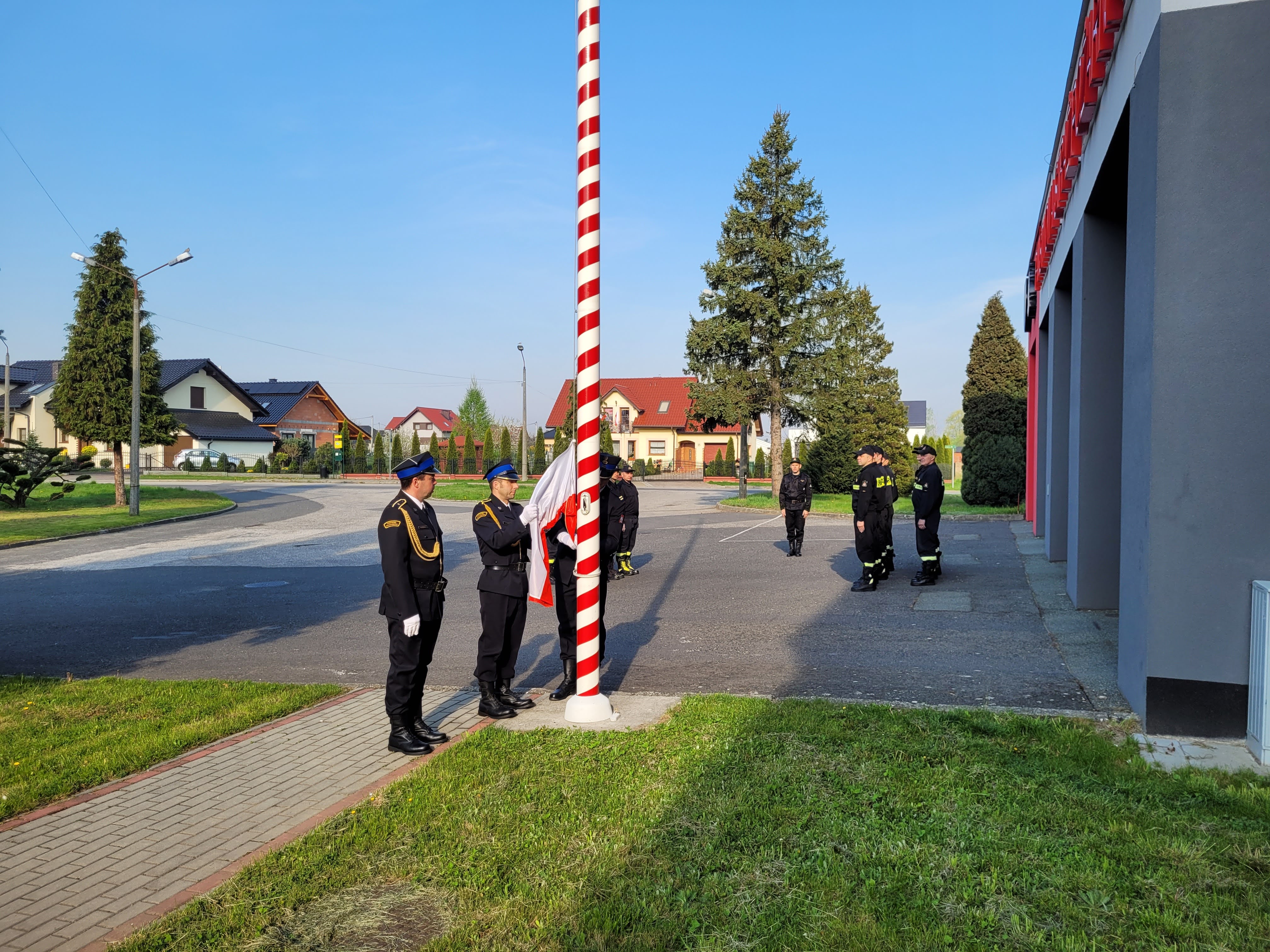 2 maja podczas zmiany służby strażacy z tutejszej Komendy włączyli się w dzisiejsze święto podnosząc na maszt Flagę Państwową.