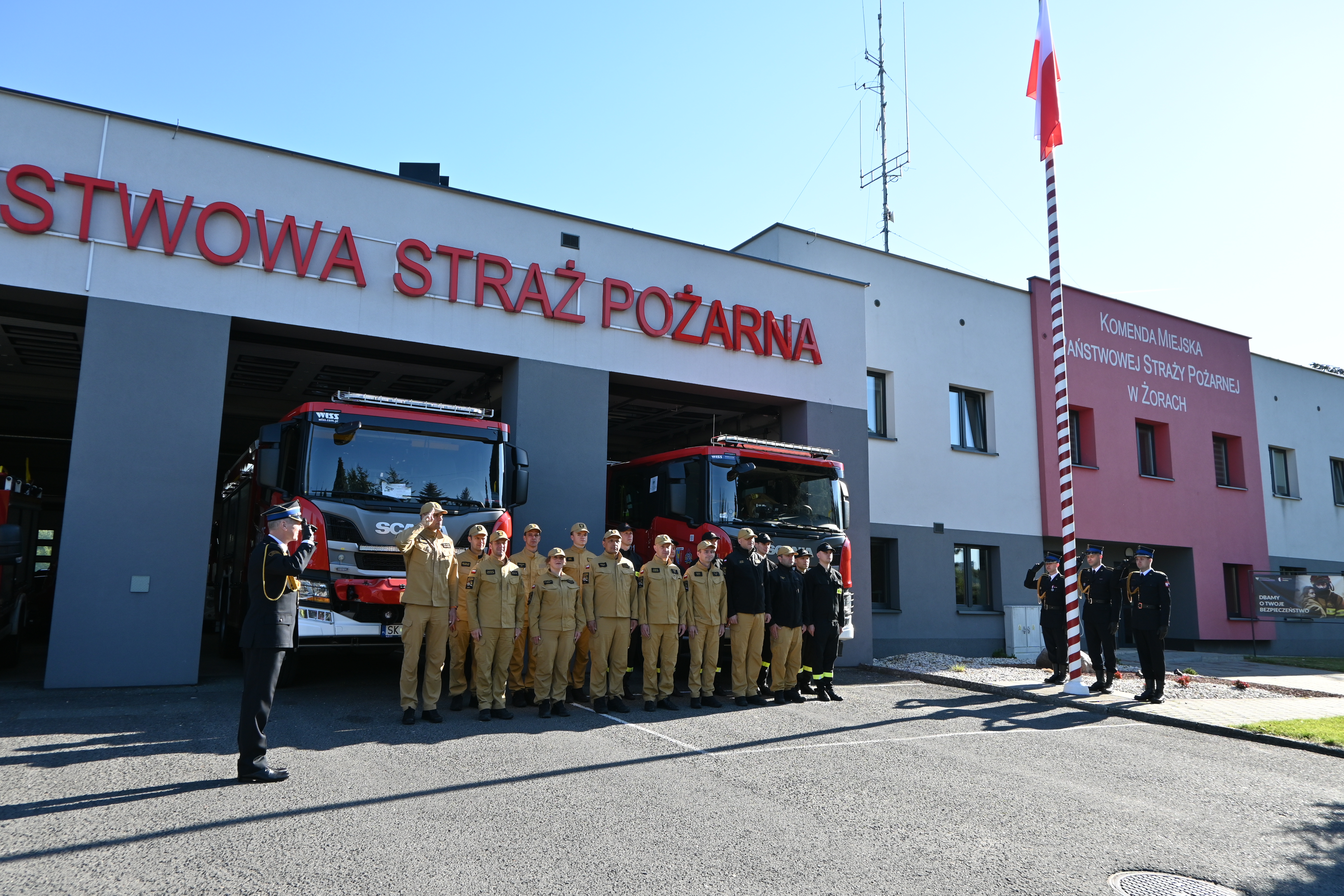 W dniu 2 maja 2025 roku, z okazji Dnia Flagi Rzeczypospolitej Polskiej, w Komendzie Miejskiej Państwowej Straży Pożarnej w Żorach odbyła się uroczysta zmiana służby z podniesieniem flagi państwowej na maszt. Wydarzenie to miało szczególne znaczenie, ponieważ 2 maja jest dniem, w którym Polacy oddają hołd narodowym barwom, a także przypominają sobie o tradycjach państwowych. W uroczystości uczestniczył Komendant Miejski Państwowej Straży Pożarnej w Żorach, mł. bryg. Krzysztof Ograbek, który osobiście przewodniczył ceremonii.