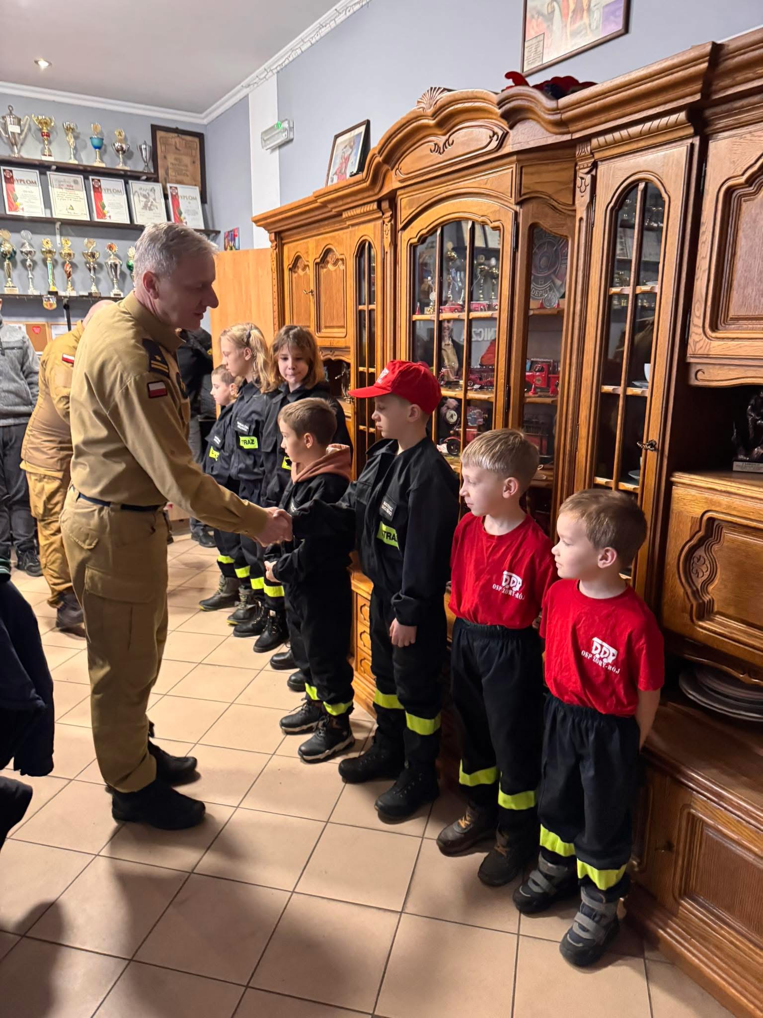 W sobotę Komendant Miejski mł. bryg. Krzysztof Ograbek wraz druhem Grzegorzem Sobikiem udali się również do Ochotniczej Straży Pożarnej w Roju, gdzie wręczyli nagrody oraz upominki członkom Młodzieżowej Drużyny Pożarniczej. Spotkanie było okazją do podkreślenia roli młodzieży w działalności strażackiej oraz podziękowania za ich aktywność i zaangażowanie.