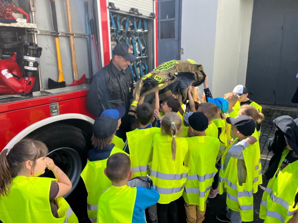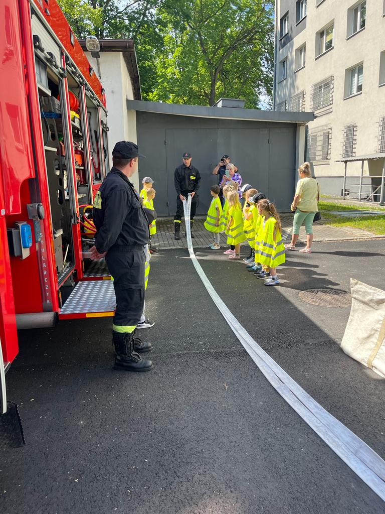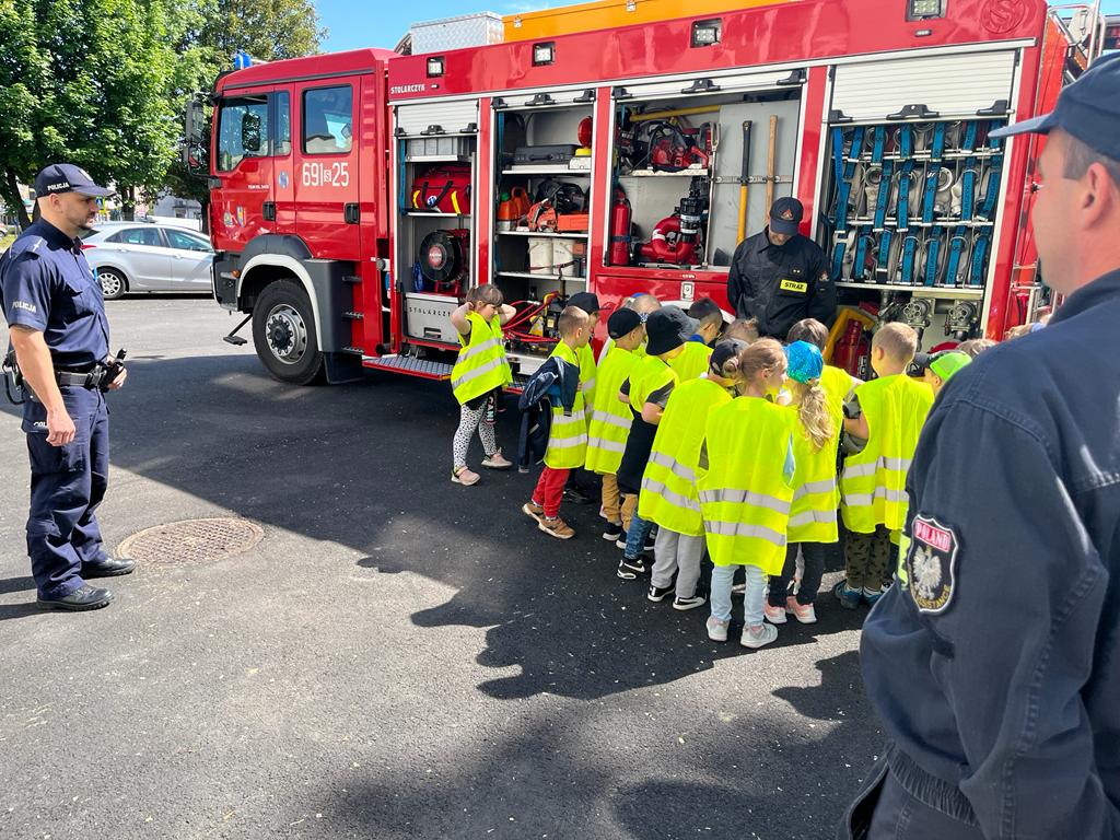 W dniu wczorajszym strażacy wraz z policjantami z żorskiej Komendy przeprowadzili pogadankę oraz pokazy sprzętu dla grupy przedszkolaków z Zespołu Szkolno - przedszkolnego nr 1 w Żorach. Najmłodsi dowiedzieli się jak ważna jest współpraca i bezpieczne zachowania. Dowiedzieli się również jak zgłosić zagrożenie na numer alarmowy 112.