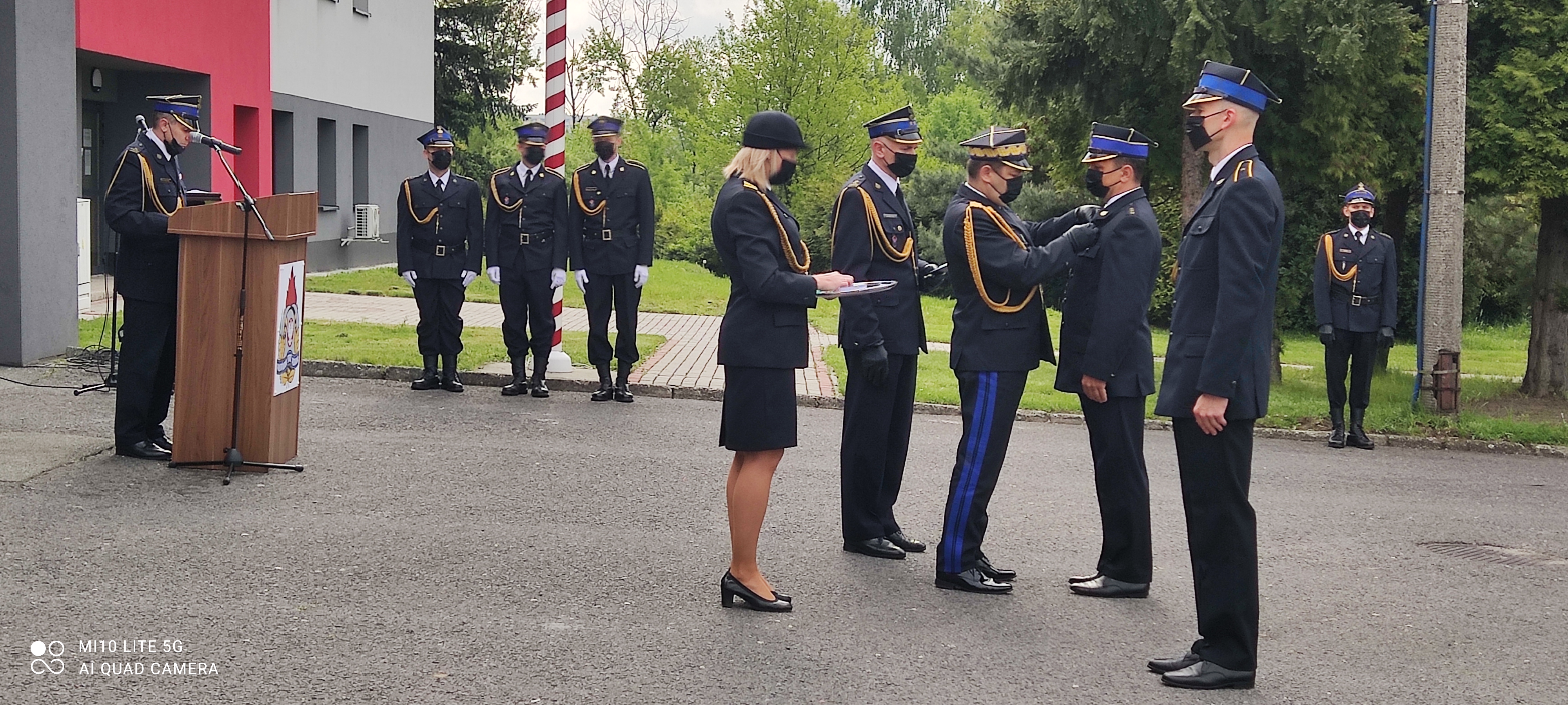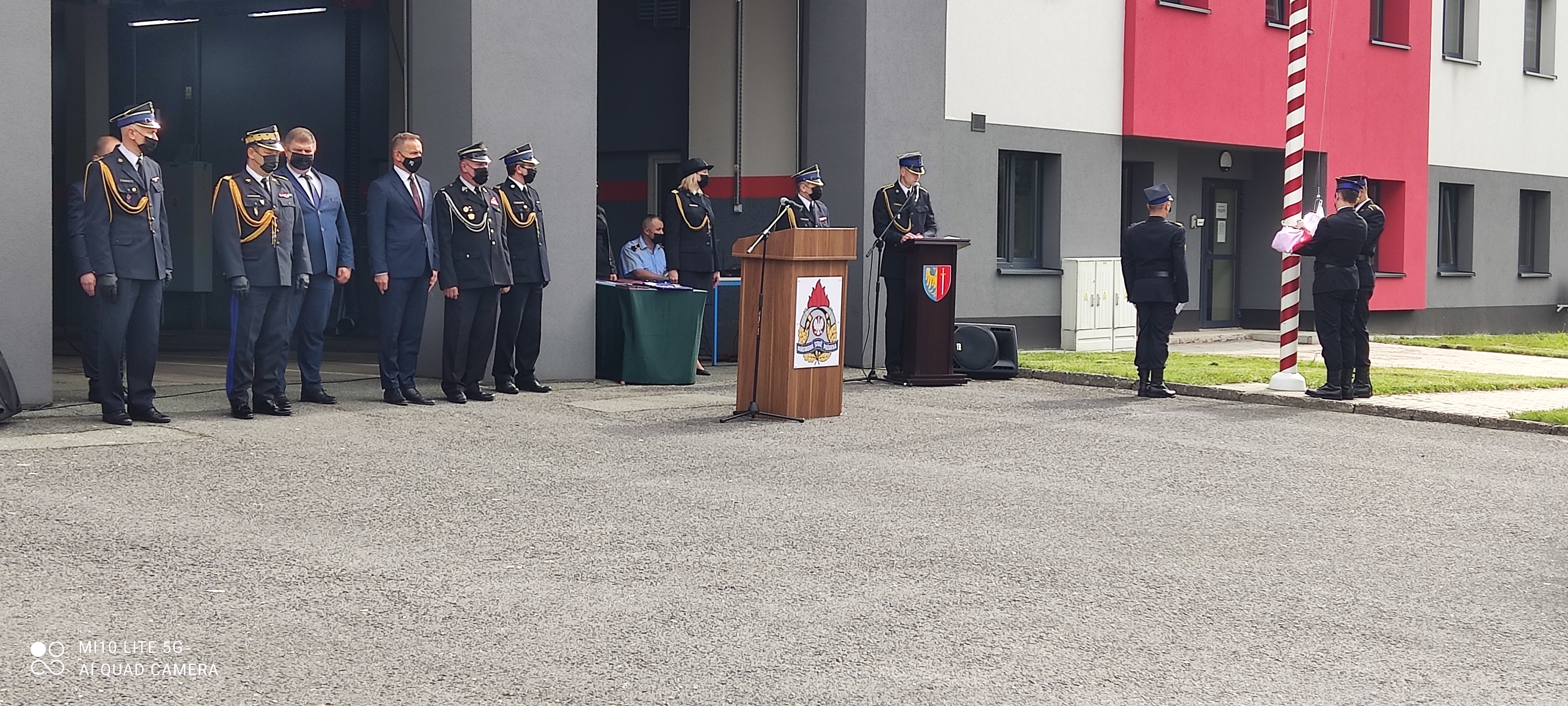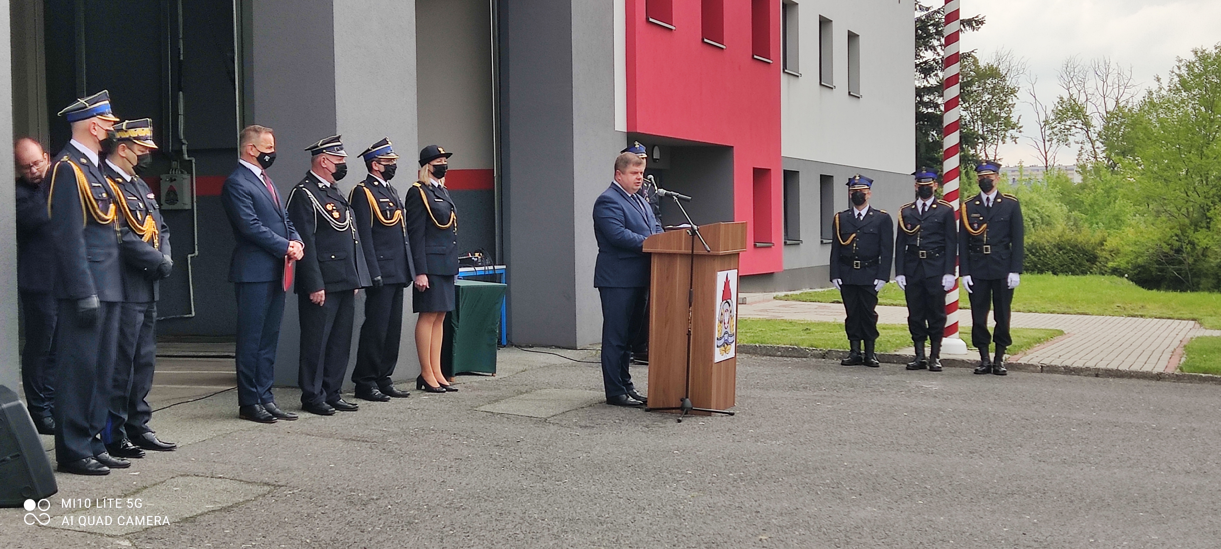 Uroczystość rozpoczęła się złożeniem meldunku przez st. kpt. Krzysztofa Kusia Śląskiemu Komendantowi Wojewódzkiemu nadbryg. Jackowi Kleszczewskiemu. Następnie minutą ciszy uczczono pamięć zmarłych strażaków oraz członków ich rodzin, szczególnie ofiar koronawirusa.