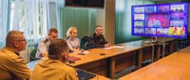 Kadra dowódcza Komendy Głównej PSP na odprawie służbowej na sali konferencyjnej.