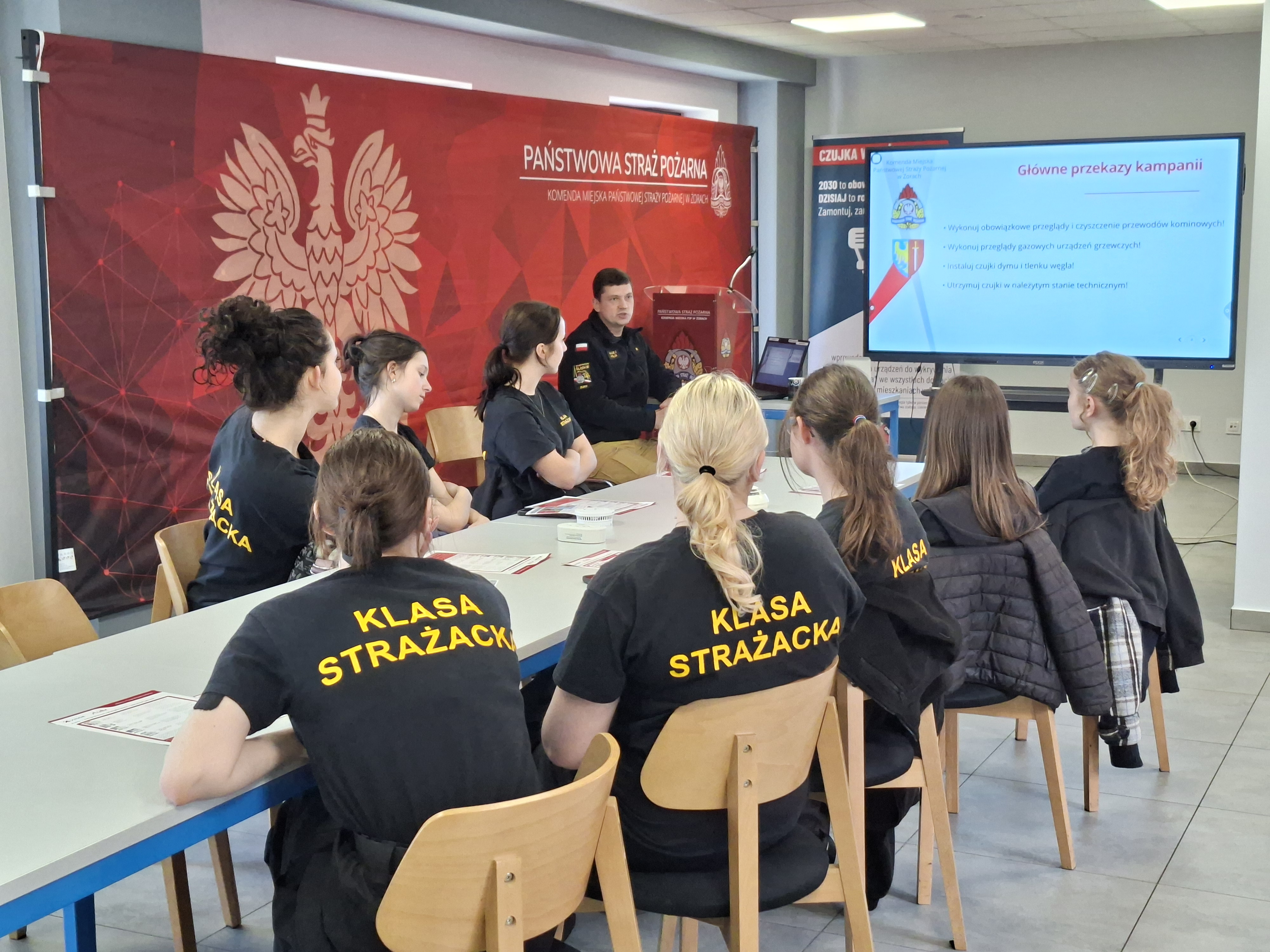 W dniu 23.03.2026 r. uczniowie drugiej i trzeciej klasy mundurowej żorskiego III Liceum Ogólnokształcącego im. Zbigniewa Herberta odwiedzili tutejszą komendę. Strażacy pełniący w tym dniu służbę przygotowali dla nich zajęcia w trakcie których dowiedzieli się jak wygląda służba w tutejszej jednostce. Poznali stanowisko kierowania Komendanta Miejskiego, dowiedzieli się jak ważne jest by posiadać w domu czujkę dymu i czadu, a także jak prawidłowo ją zamontować i eksploatować. W dalszej części zajęć uczniowie poznali również sprzęt jakim dysponują żorscy mundurowi, a także mogli praktycznie przećwiczyć użycie gaśnicy.