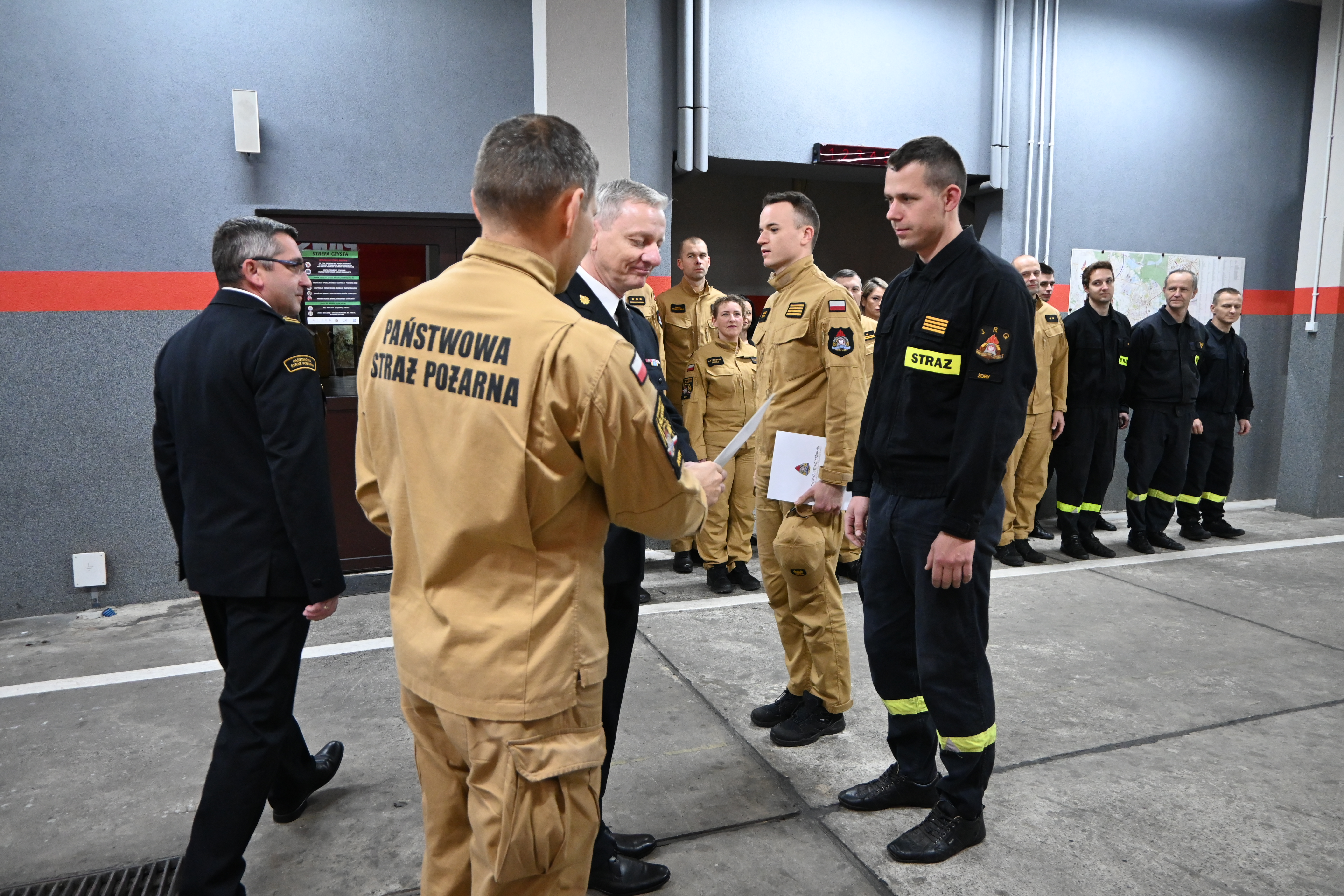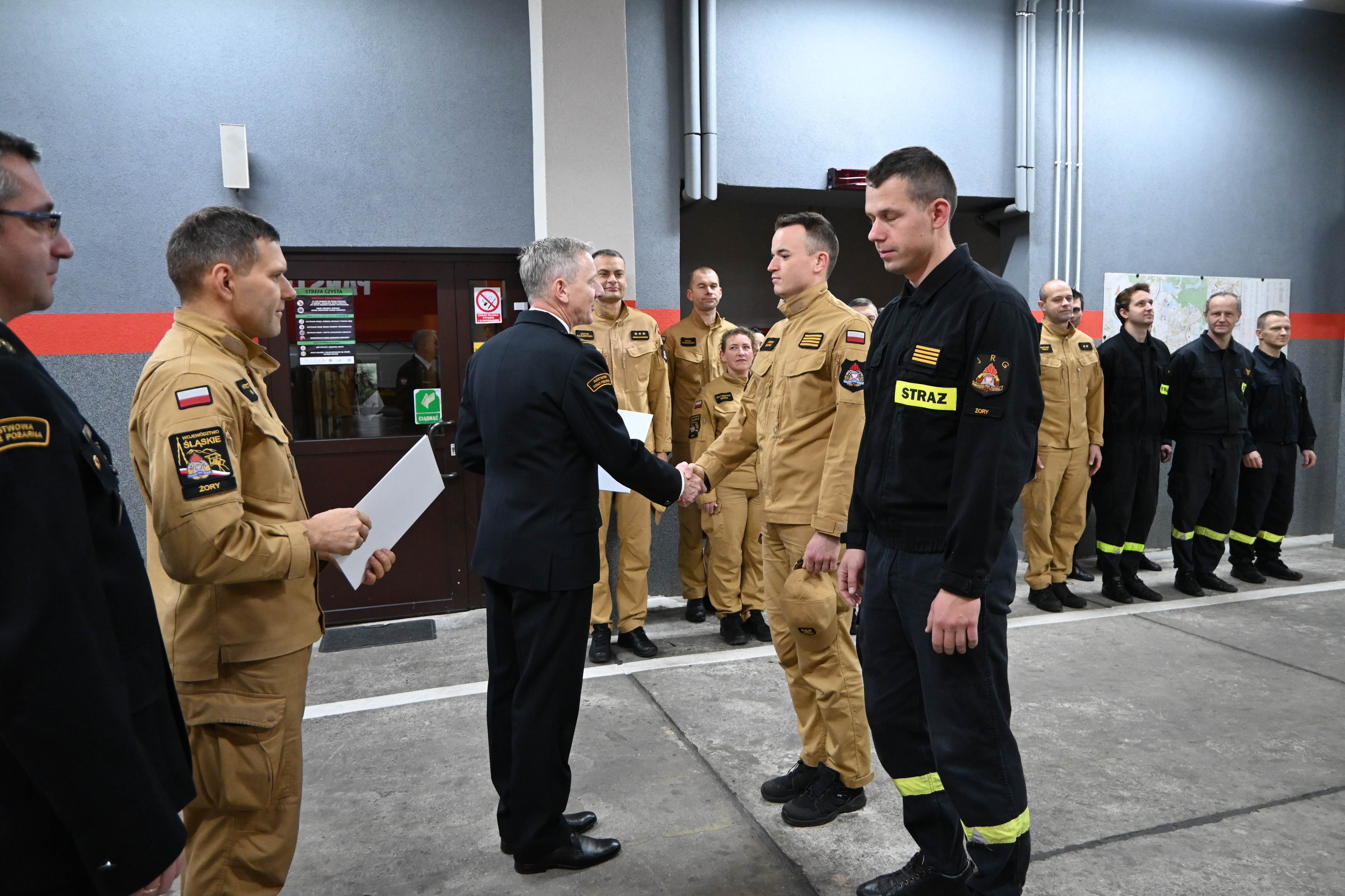 W dniu 19.11.2024 roku w tutejszej Komendzie odbyła się uroczysta zbiórka z okazji obchodów Święta Niepodległości. Podczas zbiórki Komendant Miejski PSP w Żorach wręczył awanse na wyższe stopnie służbowe. Do stopnia mł. ogniomistrza awansowali st. sekcyjny Mateusz Lala oraz st. sekcyjny Dawid Słupik.