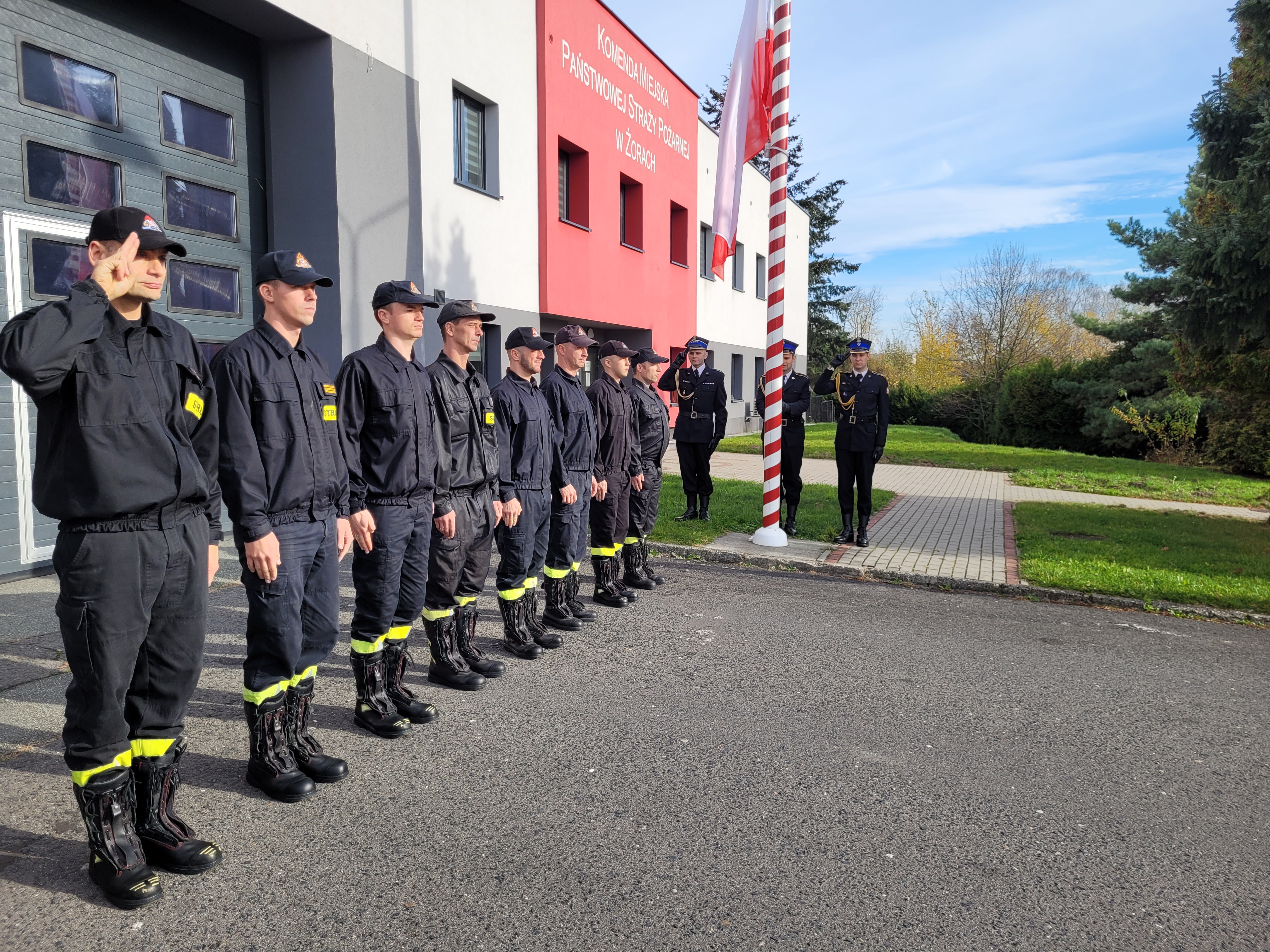 Z okazji obchodów Narodowego Święta Niepodległości przed budynkiem Komendy Miejskiej Państwowej Straży Pożarnej w Żorach strażacy z Jednostki Ratowniczo-Gaśniczej w Żorach wzięli udział w zbiórce, w trakcie której dokonano uroczystego podniesienia flagi państwowej oraz w ramach ogólnopolskiej akcji "Niepodległa do Hymnu" odśpiewano hymn państwowy. W ten sposób strażacy powiatu żorskiego upamiętnili 104 rocznicę odzyskania przez Polskę niepodległości.