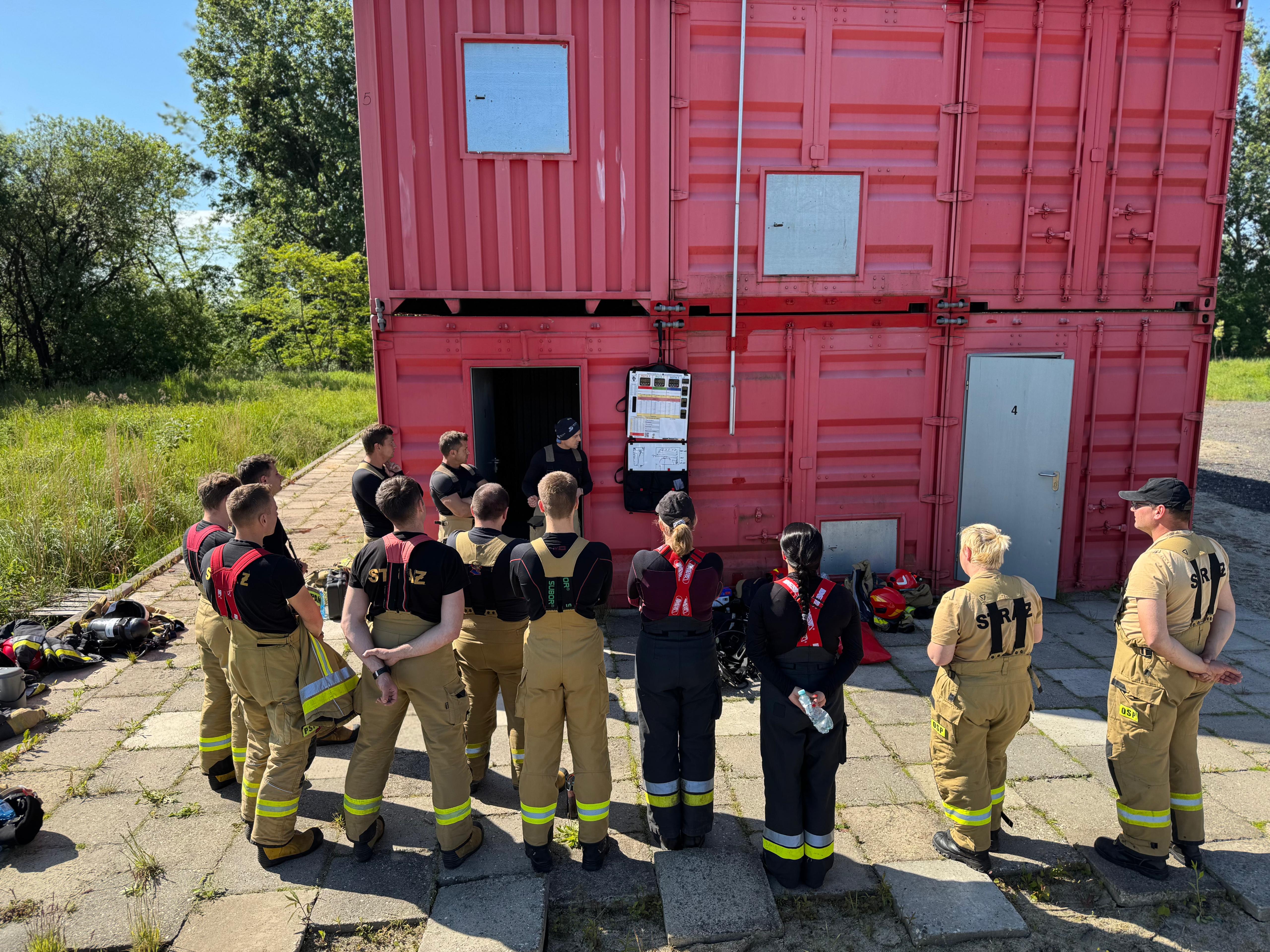 W dniach 22.03 – 05.04.2025 r. w siedzibie Komendy oraz 21-26.05.2025 r. na poligonie Komendy Miejskiej PSP w Jastrzębiu Zdroju odbyły się warsztaty z zakresu gaszenia pożarów wewnętrznych. Uczestnikami szkolenia byli funkcjonariusze tutejszej Komendy oraz strażacy z jednostek Ochotniczych Straży Pożarnych Miasta Żory. Szkolenie przeprowadzone zostało w trenarzerze ogniowym, a swym zakresem obejmowało aktywne natarcie na pożar, poruszanie się w rocie oraz obserwację pożaru przy wykorzystaniu kamer termowizyjnych.