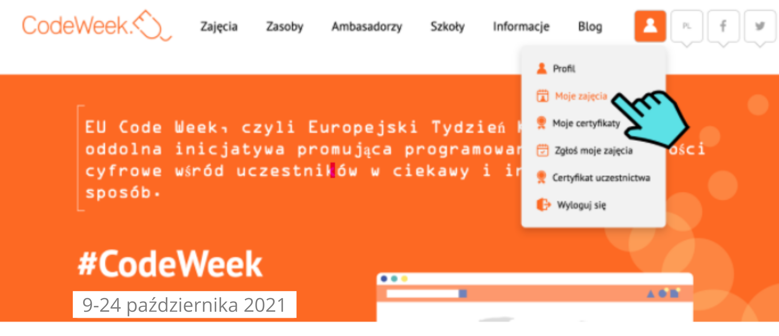 Wszystko zaczyna się od zalogowania na stronie codeweek.eu. Instrukcję, jak to zrobić znajdziesz tu: https://www.gov.pl/web/koduj/jak-dodac-wydarzenie.
