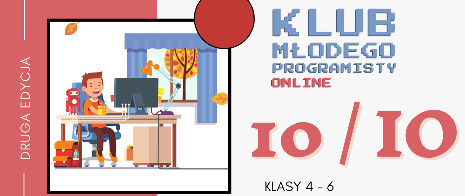 Jesień z Klubem Młodego Programisty online – zapis cyklu 10 spotkań nauki podstaw programowania dla klas 1-6 szkół podstawowych.